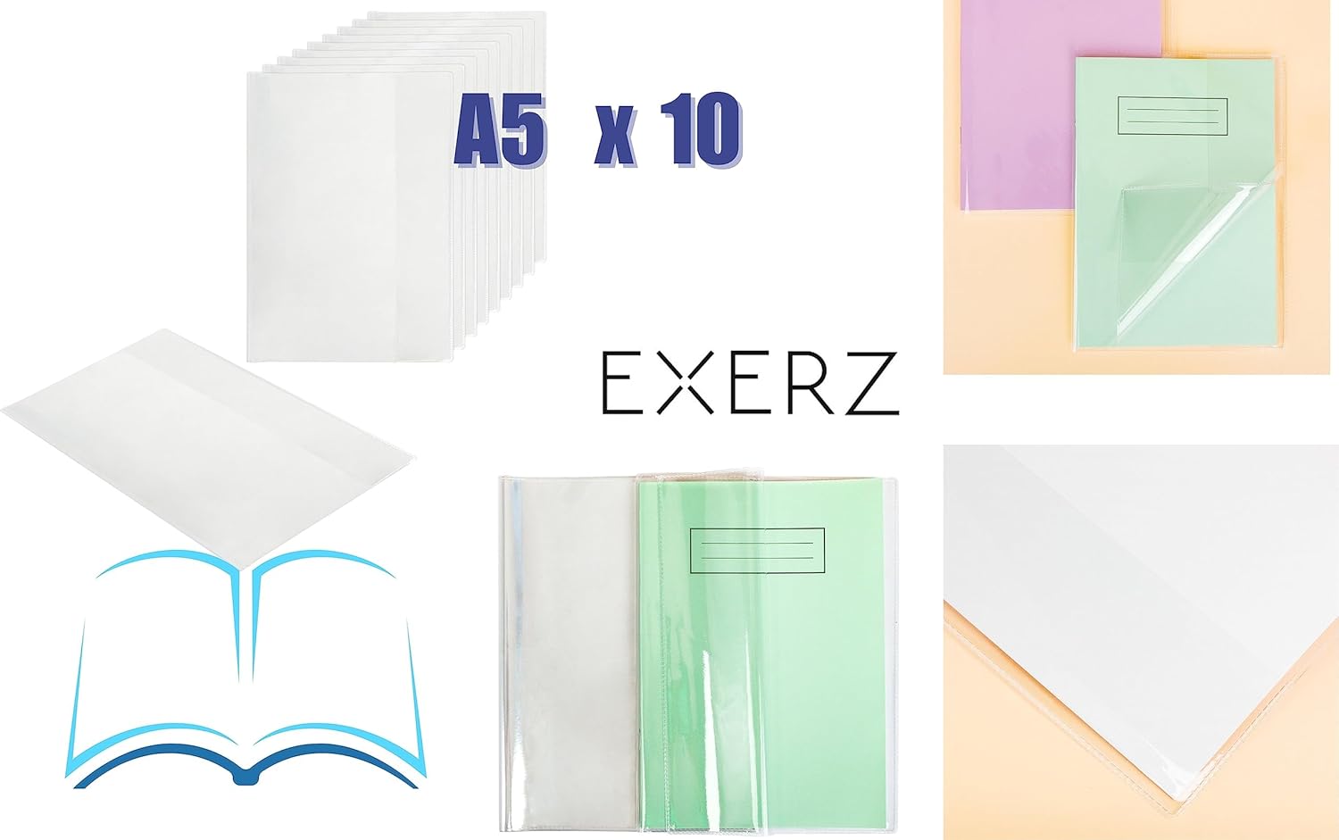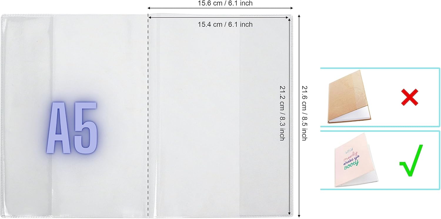Exerz Le copertine trasparenti per libri sono progettate per proteggere libri e quaderni, pulite e semplici, mantengono i tuoi quaderni puliti in tutte le condizioni atmosferiche. Sono resistenti agli spruzzi, facili da pulire, non adesivi, riutilizzabili per libri e opuscoli di formato A5 standard. Facile da usare: basta infilare la copertina sul quaderno per una protezione ordinata. Personalizzabile: la nostra copertina trasparente rende facile vedere e trovare il libro che stai cercando. È inoltre possibile utilizzare vari adesivi o pennarelli permanenti per scrivere su questa copertina trasparente, se necessario. Materiale e misure: PVC senza ftalati trasparente (trasparente), spessore 0,14 mm (140 micron), formato A5 standard – per libri fino a 14,9 x 21 cm. Ideale per scuola, opuscoli compiti, ufficio, università, college e accademie.