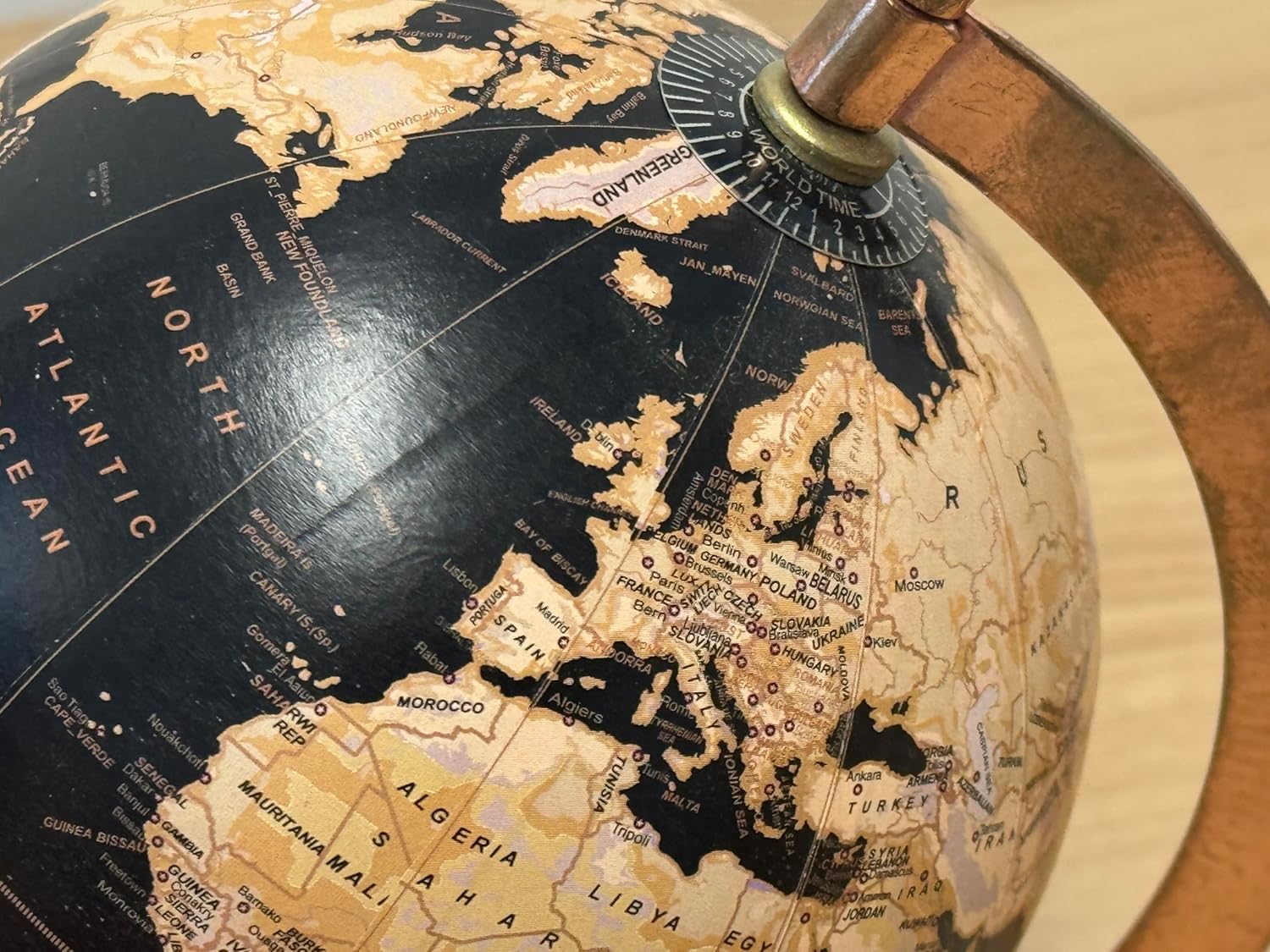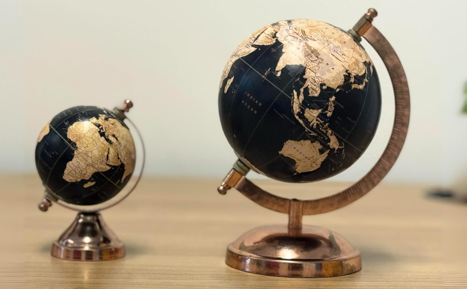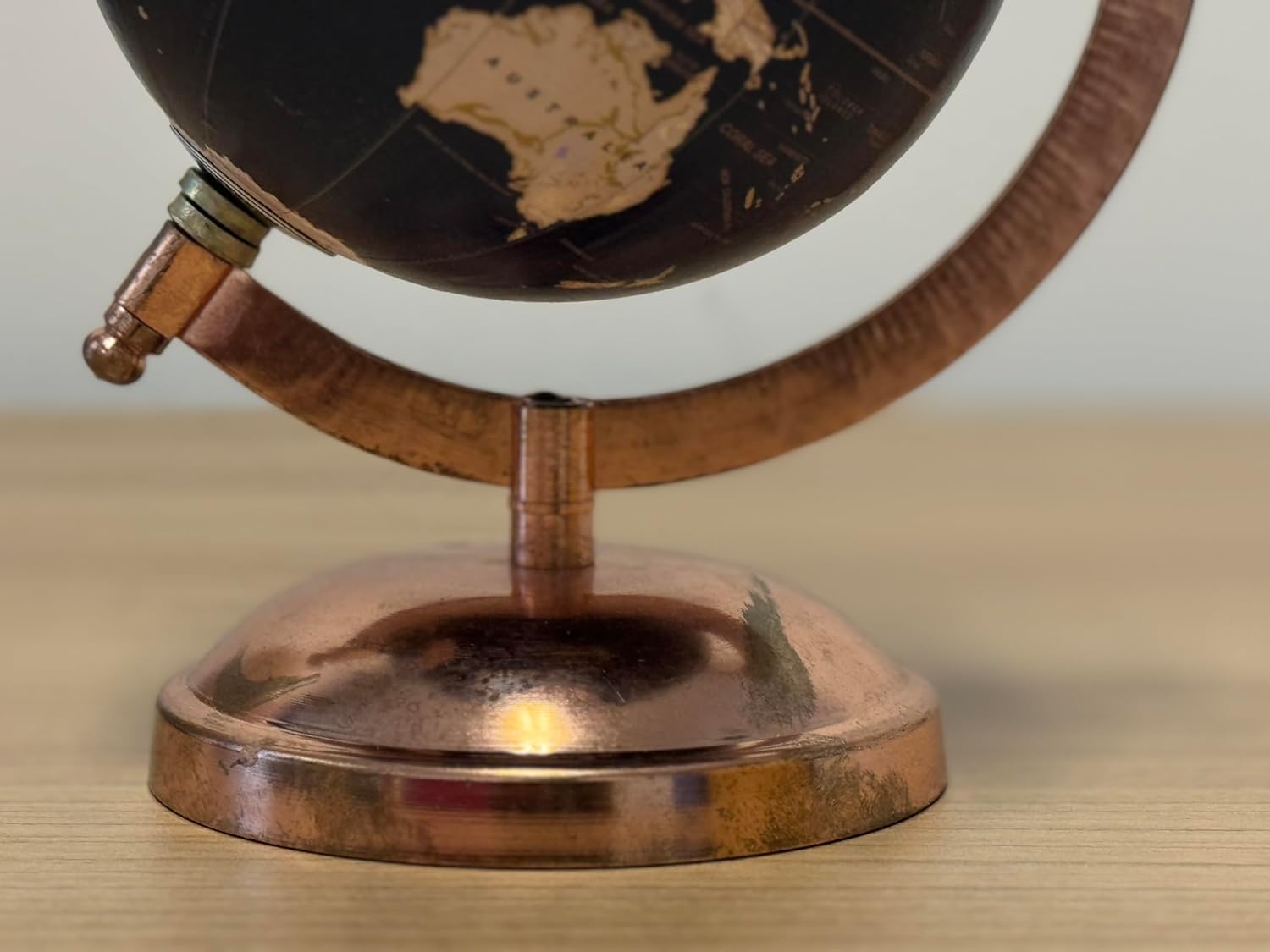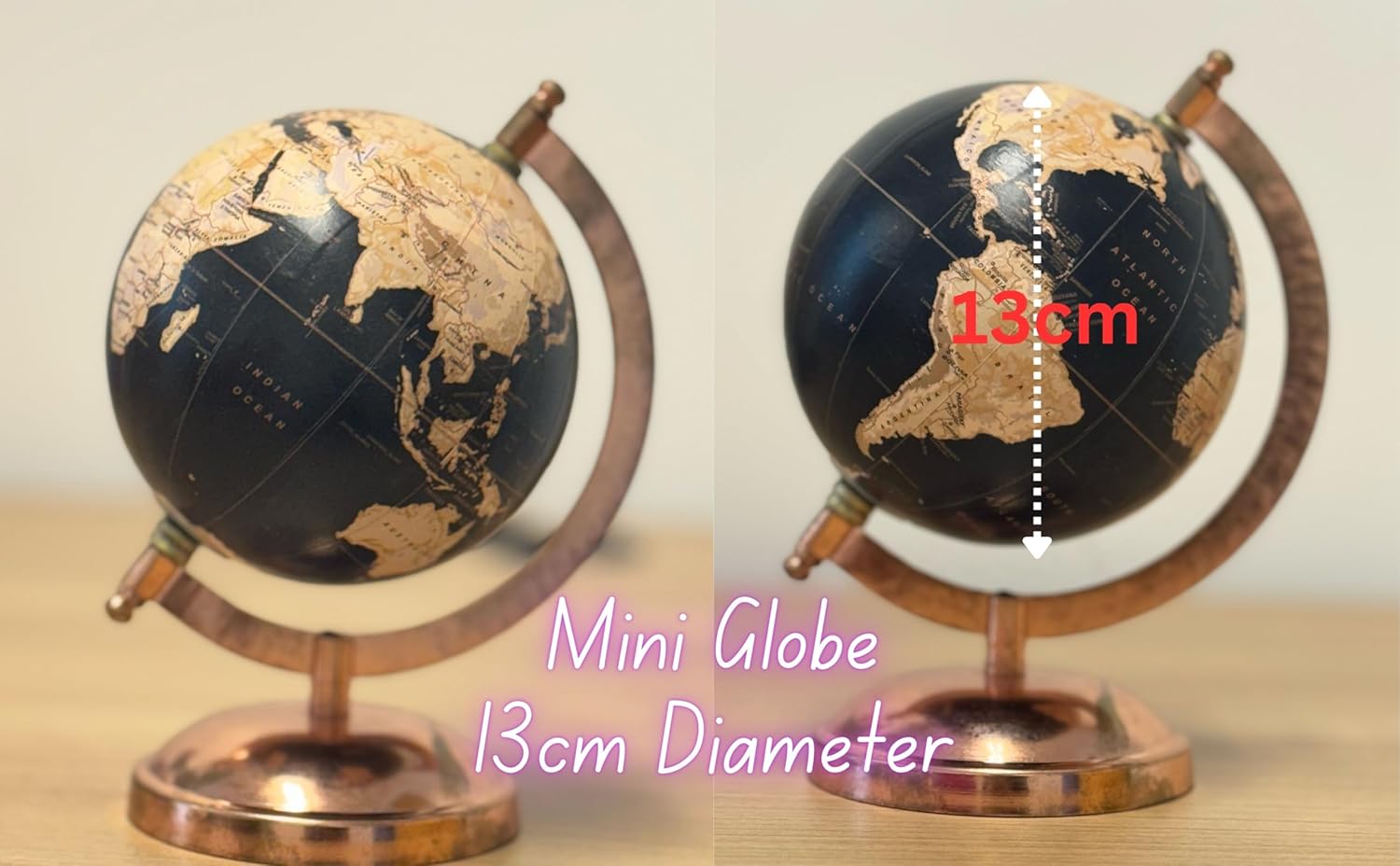 Globo artigianale EXERZ con base in bronzo. Diametro: 13 cm, sfera geografica facile da leggere Divertente ed educativo: incoraggia i bambini curiosi a esplorare il mondo della scienza Globo dall'aspetto antico con base in legno, perfetto per la decorazione di casa e ufficio (personaggi vintage) Non adatto a bambini di età inferiore a tre anni, adatto a bambini di età superiore a 3 anni