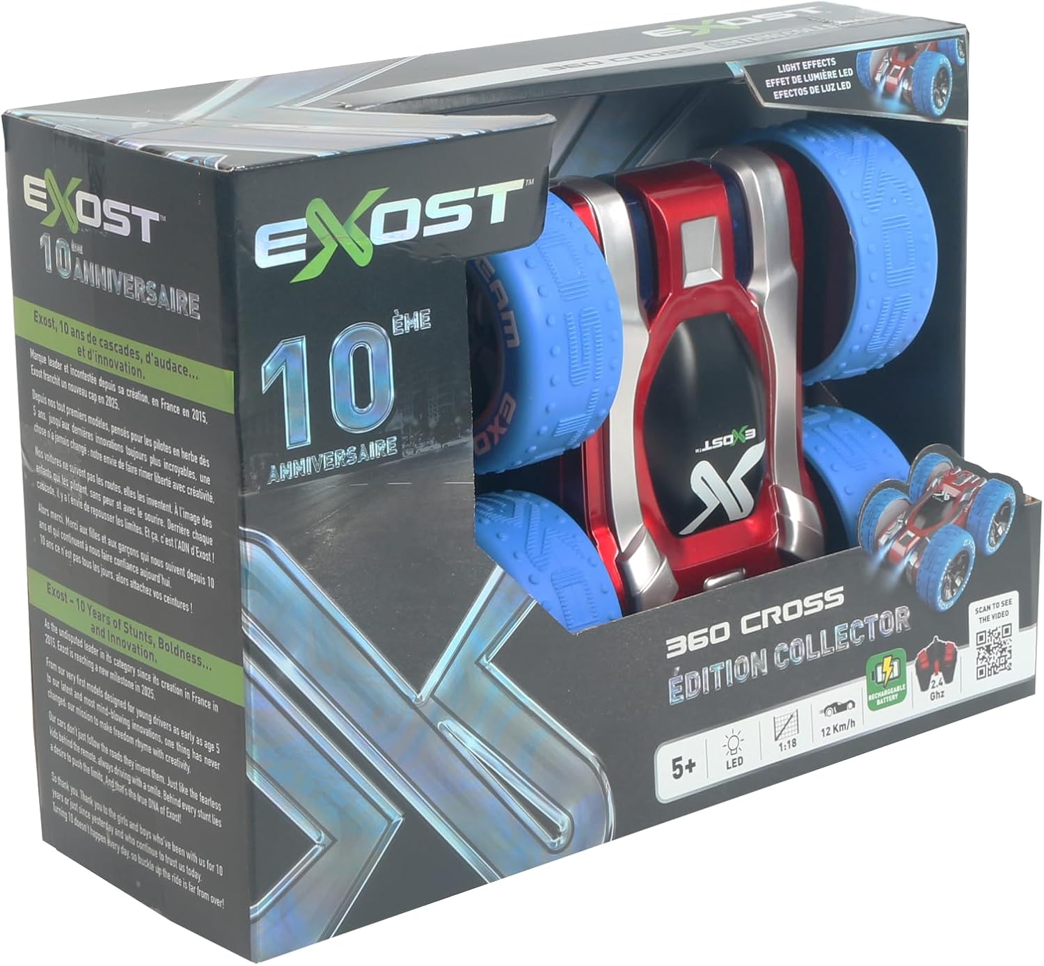 Auto telecomandata per acrobazie a 360° – Riedizione della leggendaria 360 Cross, capace di eseguire spettacolari figure acrobatiche. Robusto per tutti i terreni – Progettato per eccellere su erba, ghiaia, terreno duro e piccoli ostacoli. Carrozzeria antiurto – Resistente agli urti per un utilizzo intensivo e duraturo. Tecnologia a 2,4 GHz – Portata fino a 25 metri, perfetta per giocare con gli altri senza interferenze. Facile ricarica USB – Batteria inclusa + cavo USB. Telecomando alimentato da 2 batterie AA (non incluse).