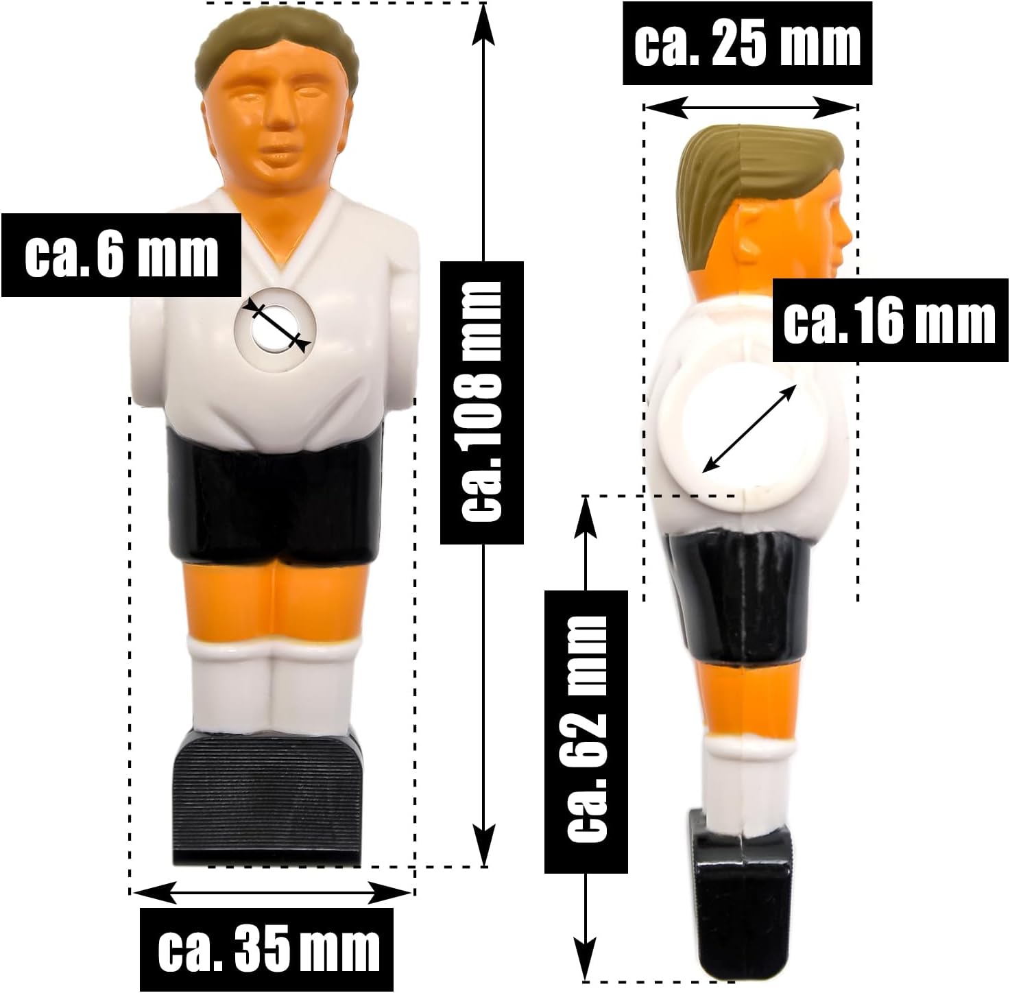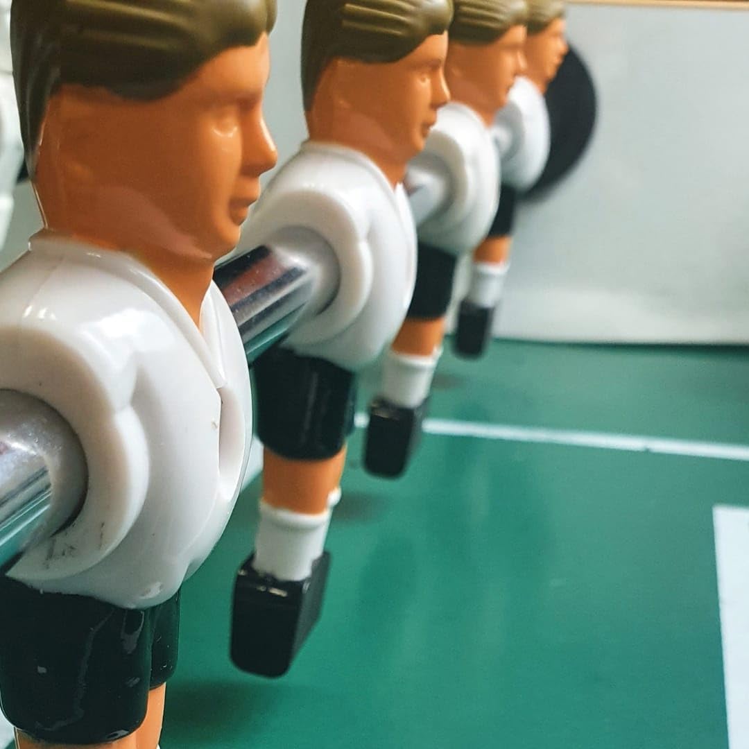 11 FIGURE DI CALCIO nella MAGLIA DELLA GERMANIA - 11 figure di calcio balilla di alta qualità per tiri precisi e il massimo divertimento. Con verniciatura bicolore: per derby emozionanti come nei grandi club. SET PER ASTE DA CALCIO DA 16 MM - Questo farà sembrare nuovo il tuo calcio balilla. Le figure giocattolo sono adatte per pali da calcio cavi e solidi; ogni figura è di ca. Dimensioni 10,8 x 3,5 x 2,5 cm. RESISTENTE AGLI URTI E ALLA ROTTURA - Extra stabile in plastica dura - ogni figura di calcio è bilanciata. Per una precisione di palla ottimale: tutti i giocatori con una superficie di attacco della palla strutturata nella zona dei piedi. ADATTO A OGNI GIOCO - Con il loro design ergonomico, le figure garantiscono una sensazione diretta e controllata per la palla in ogni situazione. Per palline da biliardino da 36 mm - ca. 6,5 cm dalla metà del palo al piede. SENZA MATERIALE DI FISSAGGIO - I giocatori sono fissati all'asta con una vite e un dado autobloccante, quindi la vite non può allentarsi. Viti e dado non inclusi.