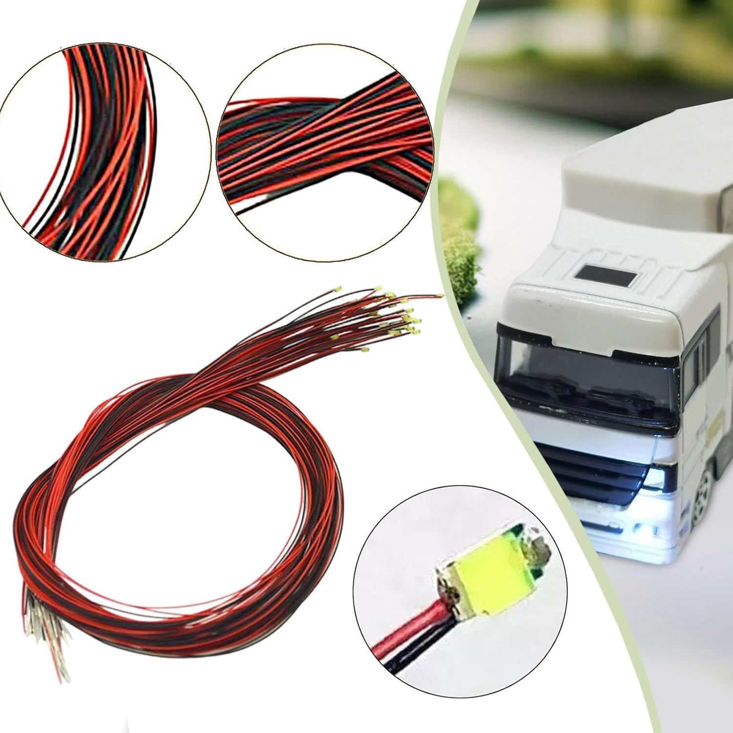 * 【Migliora i tuoi progetti creativi】: Questi cavi LED sono ideali per lavori artigianali, set di animazione, oggetti di scena per fotografie in miniatura e un'ampia gamma di micro scene artistiche. Ogni confezione include 20 pezzi con filo lungo 40 cm da 1,25 mm. * 【Accessori per modellini di treni】: soluzione di sostituzione ideale per luci di modellini di treni vecchie o danneggiate; basta sostituire le vecchie unità per aggiornare il display * 【Materiale di qualità】: costruito per durare con materiali metallici ad alte prestazioni e PVC, dotato di efficienti LED SMD 0805 per un utilizzo affidabile e a lungo termine * 【Applicazione versatile】: la luce SMD 0805 precablata è ideale per l'illuminazione fai da te in modelli di treni/ferrovie, diorami architettonici, tavoli di sabbia immobiliari e in miniatura * 【LED precablati】: il design compatto e leggero rende queste luci LED precablate facili da installare e comode per tutti i tuoi progetti di modellismo