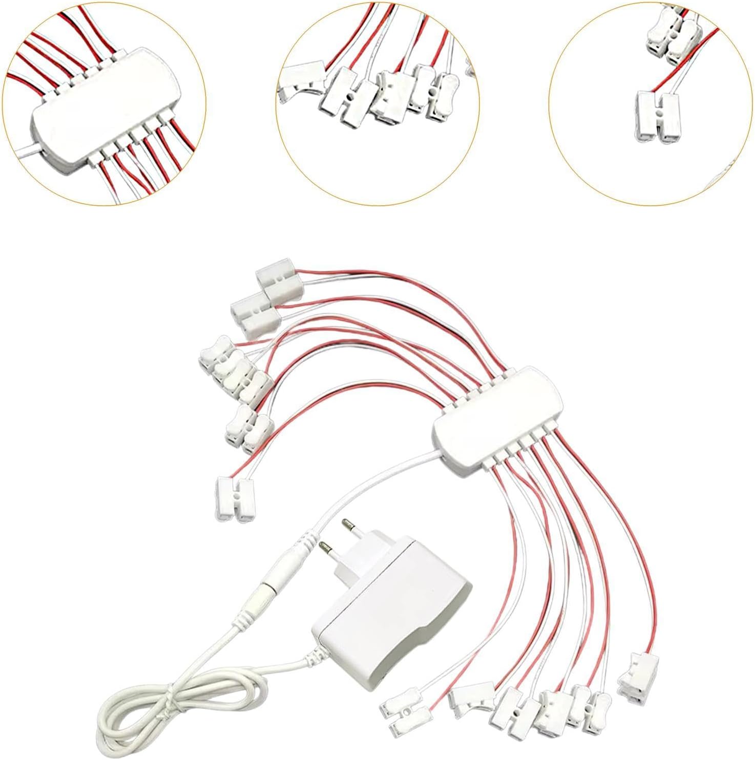 * Design pratico: basta collegare le porte splitter, senza bisogno di attrezzi aggiuntivi, questo modello di alimentatore per lampioni in miniatura è facile da realizzare fai da te. * Robusto e affidabile: alimentatore da 12 V 2 A (opzionale: 6 porte o 12 porte) per mini lampioni fai da te, ideale per creare lampioni realistici e illuminare edifici per plastici di treni, tavoli di sabbia architettonici e case delle bambole * Compatto e portatile: alimentatore per luci in miniatura, design leggero per un posizionamento flessibile in spazi ristretti come display in miniatura o progetti fai da te * Ampia applicazione: il kit di cablaggio per l'illuminazione dei modelli di treni è ideale per lampioni stradali in miniatura, luci in miniatura, plastici di treni, ferrovie in miniatura, diorami architettonici o illuminazione di scene * Nota: progettato specificamente per luci di modelli in miniatura, assicurarsi che la tensione corrisponda alle lampadine per evitare bruciature o prestazioni ridotte