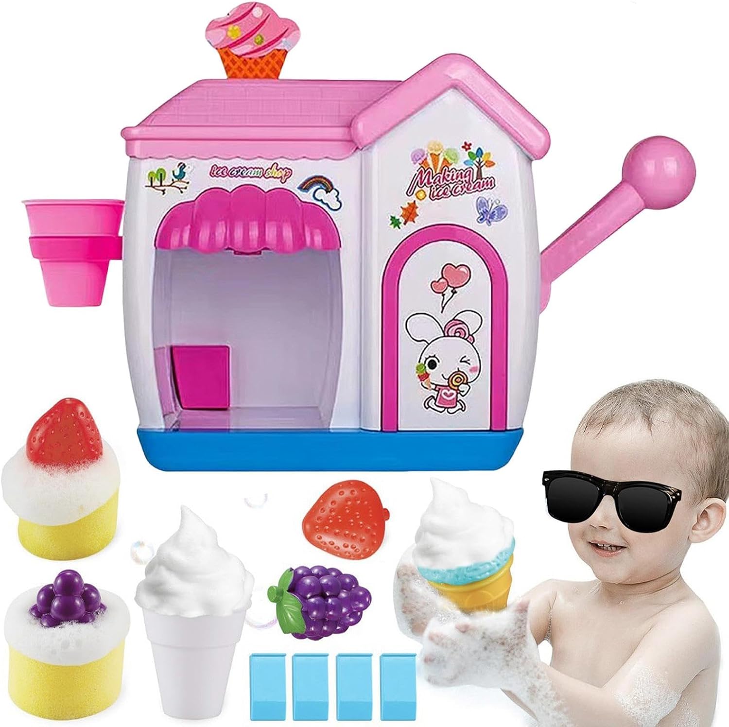 * 【Set completo incluso】: Il pacchetto include 1 macchina per le bolle di ghiaccio e 9 accessori aggiuntivi * 【Facile da giocare】: Basta premere la maniglia per creare bolle senza sforzo. Questo offre un'esperienza semplice ma emozionante che i bambini adoreranno. * 【Materiale】: questo giocattolo da bagno per la produzione di schiuma di gelato è realizzato in materiale PP, durevole e ha una lunga durata. * 【Divertimento】: il giocattolo da vasca in schiuma di gelato a forma di cono gelato promette ore di divertimento. È pensato per tenere occupati i bambini durante il bagno o le feste a tema. * 【Compatto】: giocattolo a bolle portatile e compatto, facile da riporre e consente di accedervi comodamente