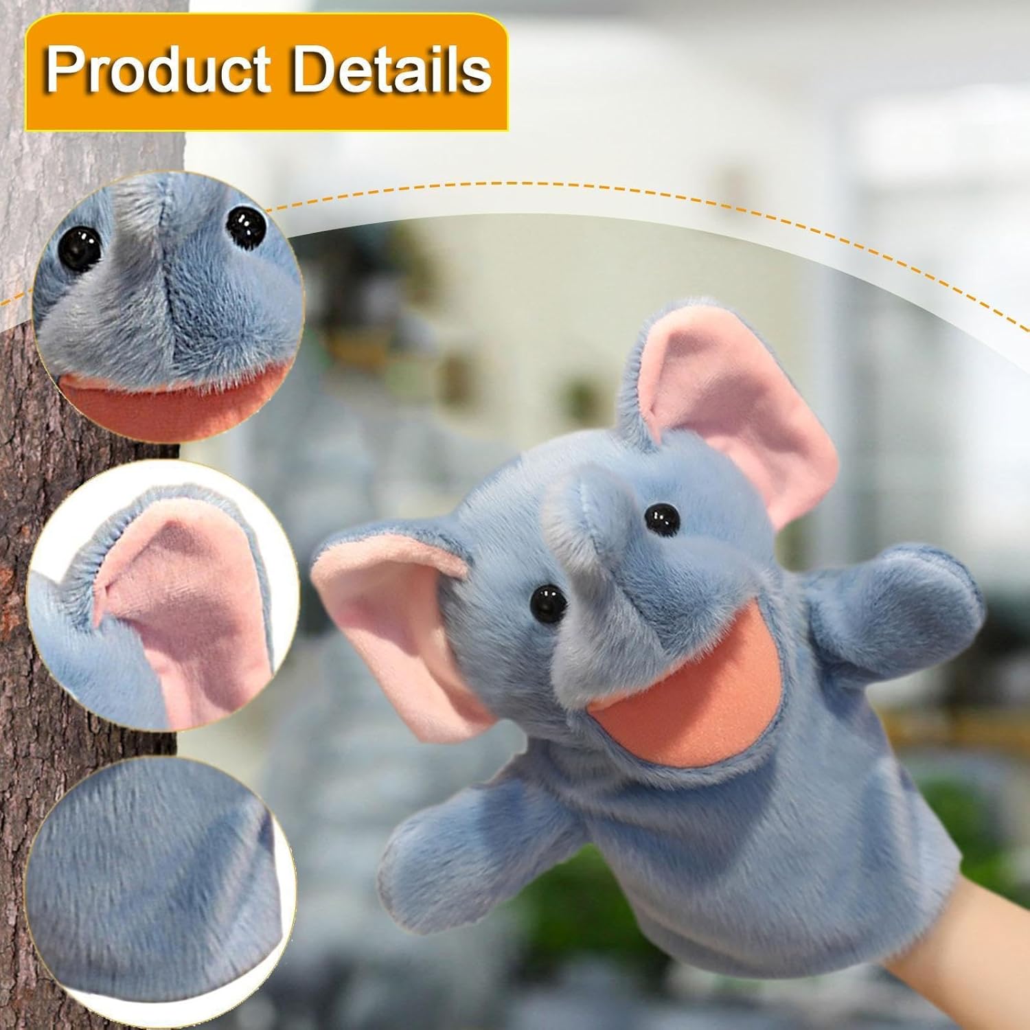 F Fityle Peluche a Forma di Animale, con Testa e Guanti, Gioco di Ruolo, scherzi, Pupazzi Morbidi per raccontare storie, Peluche a Forma di Animale per, Elefante