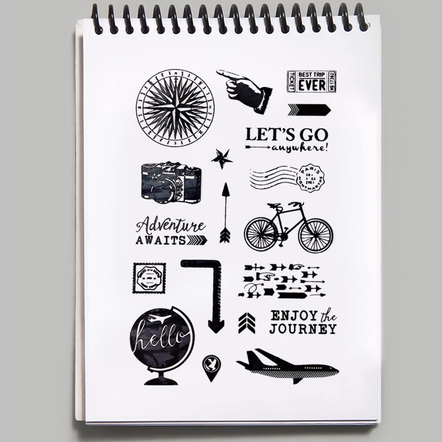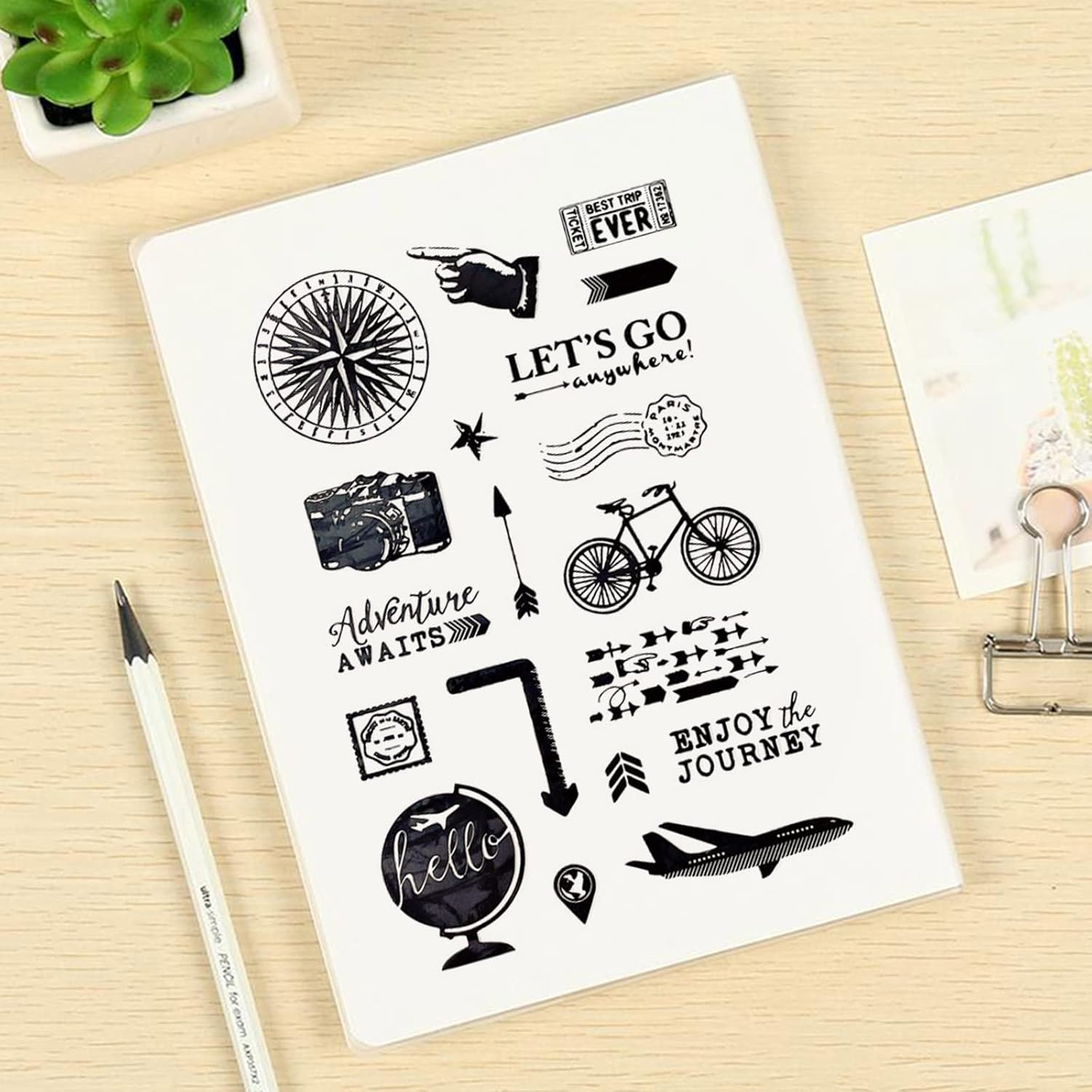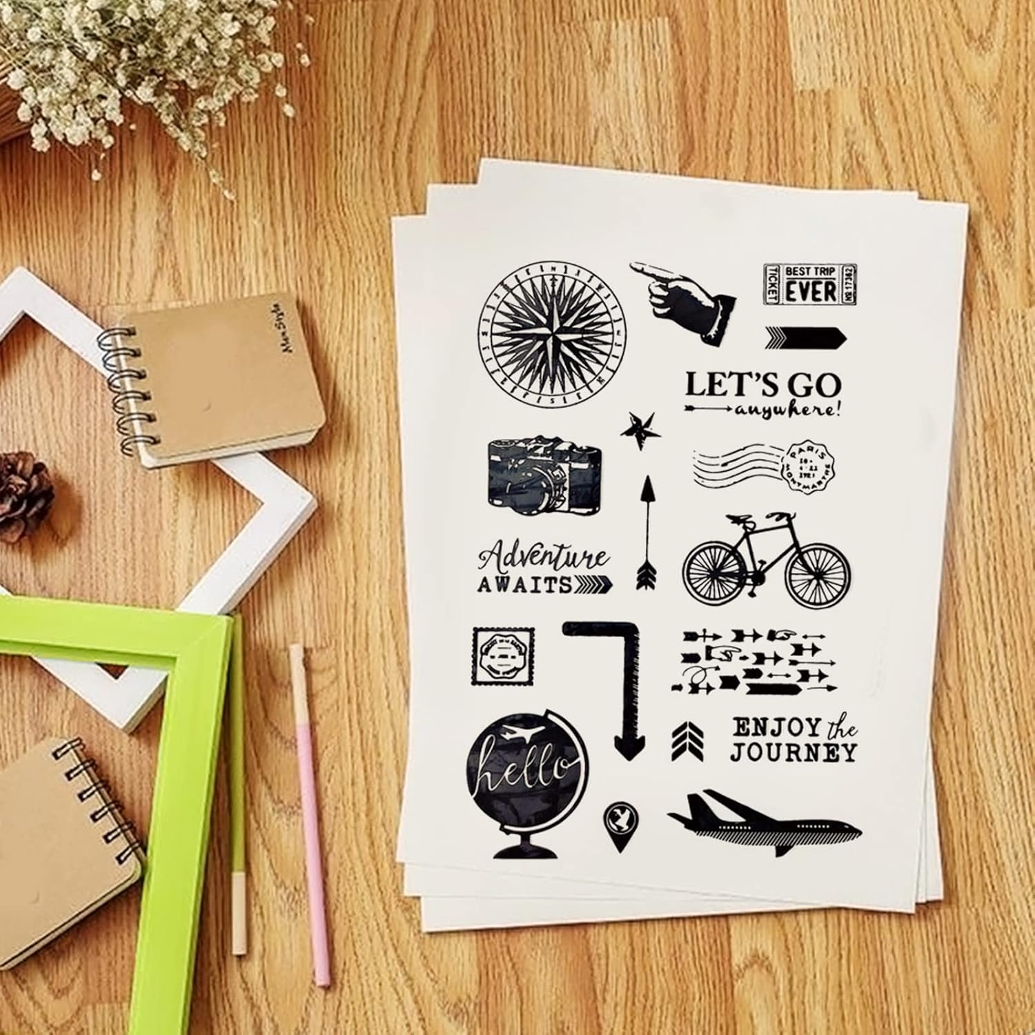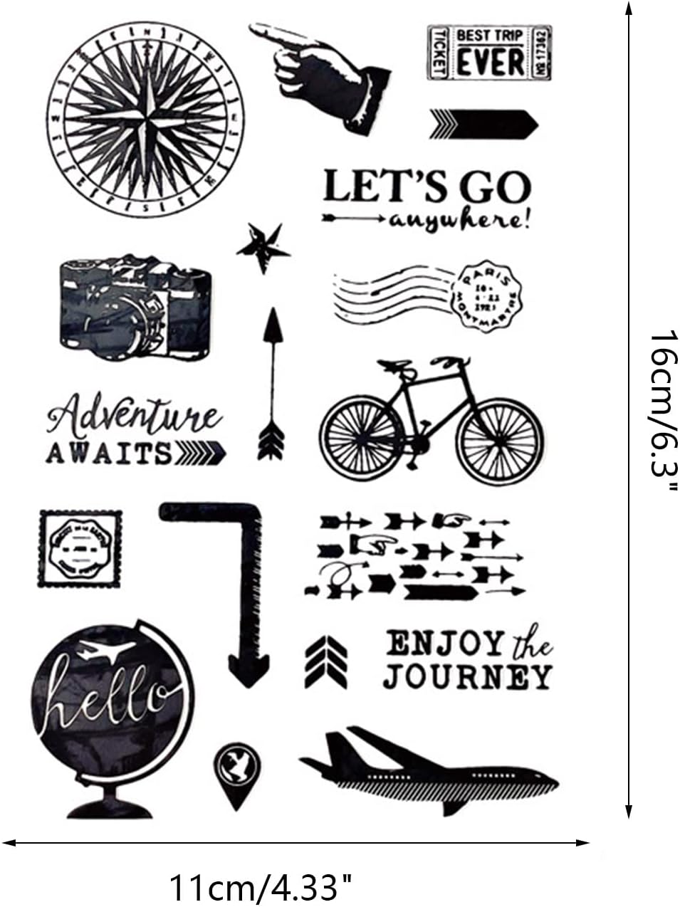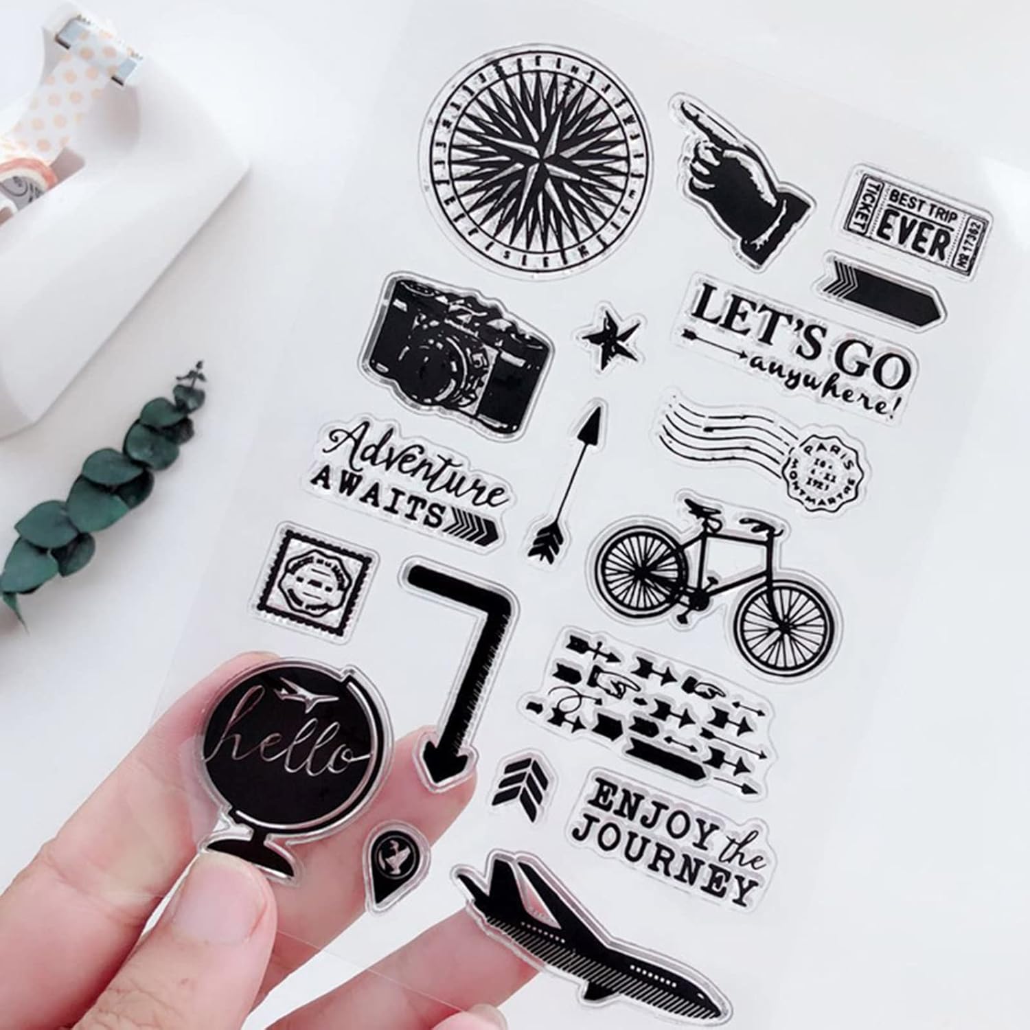 Stamper chiari qualità. Materiale in silicone qualità, sicuro, non tossico, anti-break, facile da applicare, riutilizzabile. Colore trasparente con bordo liscio, comodo per i bambini da colorare, goffratura artigianale, dipinto d'arte, timbrai fai-da-te Timbro scrapbooking chiaro. Questi francobolli trasparenti scrapbooking sono dotati tema viaggio progettato, perfetto per decorare tuo diario, pianificatore, diario, album fotografici, buste lettere, invito per feste, biglietti auguri per le vacanze, ecc Forniture favore del partito. Ottimo per la festa compleanno per bambini, Pasqua, Ringraziamento, Natale, Giornata dei bambini, Festa della mamma, Baby-Shower, Anniversary, Wedding, School Art Projects, Acasi per figlio asilo Attività fai-da-te, ecc Creazione carte fai -da -te. Molto adatto per scrapbooking fai -da -te, journaling, album fotografico, busta lettere, carta auguri per le vacanze, carta regalo, invito per feste, ecc Facile da usare. Basta aggiungere un po inchiostro timbro o inchiostro acquerello, vedrai che l'effetto sorprendente appare all'istante. Perfetto aggiungendo decorazioni uniche per le tue artigianato d'arte, invito per feste, album fotografico, riviste, diario, scrapbook, calendario, ecc