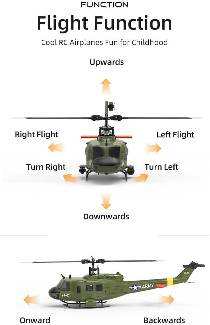 ✦ 【Design del modello in scala ad alto dettaglio】Questo modello in scala 1:34 presenta un design aeronautico realistico con dettagli autentici e illuminazione operativa. La costruzione flybarless con sistema di motore a doppio asse fornisce caratteristiche di volo autentiche adatte per l'esposizione e l'uso operativo da parte degli appassionati di aviazione. ◆ 【Sistema di alimentazione brushless avanzato】Dotato di motori brushless principali da 1200 KV e 5500 KV, questo elicottero offre prestazioni efficienti ad alta coppia con funzionamento a basso rumore. Le eliche aerodinamiche in nylon e fibra di carbonio garantiscono un'erogazione di potenza costante e durata durante le sessioni di volo. ■ 【Stabilizzazione intelligente del volo】Il giroscopio integrato a 6 assi con posizionamento ottico del flusso e mantenimento dell'altitudine barometrica mantiene il volo stabile e il volo stabile. Questo sistema fornisce una stabilizzazione affidabile per i piloti che praticano in vari ambienti interni ed esterni. ● 【Componenti di controllo di precisione】Dotato di servo ad ingranaggi in metallo che offrono una coppia elevata e una risposta rapida per ingressi di controllo esatti. Il sistema remoto a 2,4 GHz mantiene un controllo costante su 120 metri, supportando un'esecuzione precisa delle manovre anche in condizioni di vento moderato. Convenienza pronta per il volo: questo pacchetto completo RTF (Ready-to-Fly) non richiede assemblaggio e include tutto il necessario per il funzionamento immediato. Il sistema è progettato per un facile funzionamento con comandi intuitivi adatti allo sviluppo delle abilità pilota.
