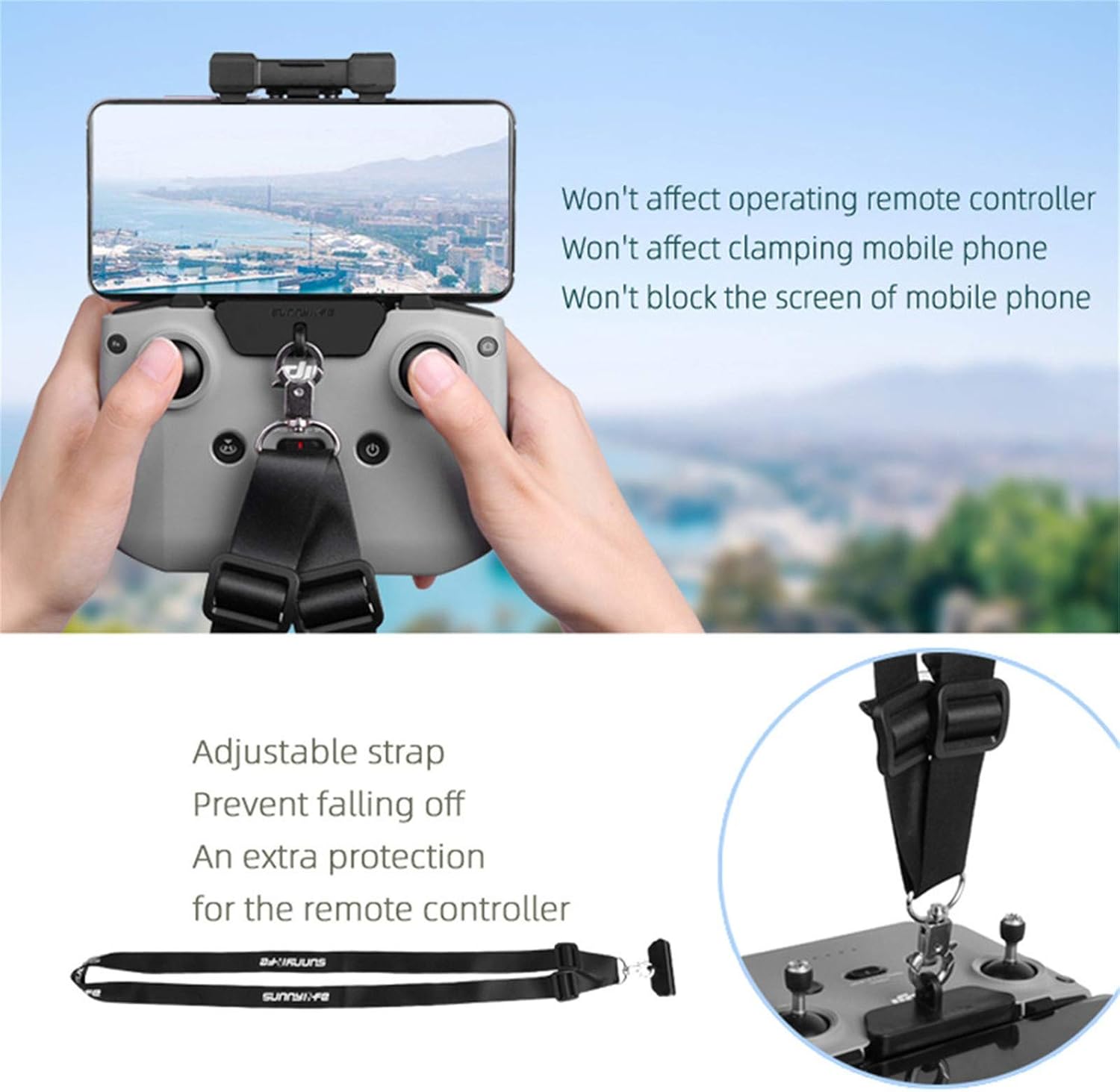 Cordino largo e morbido: Lunghezza: cinturino regolabile per diverse altezze Quantità: 1 pezzo 4. Cinturino da collo allargato, per il massimo comfort 3. Compatibile con Mavic Mini 2/Mavic Air 2