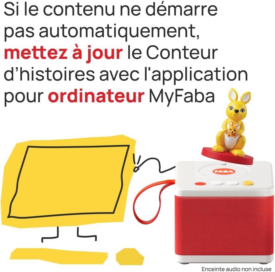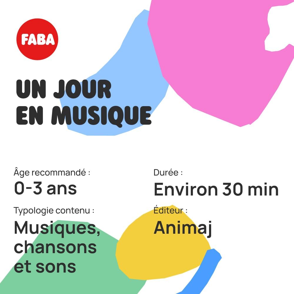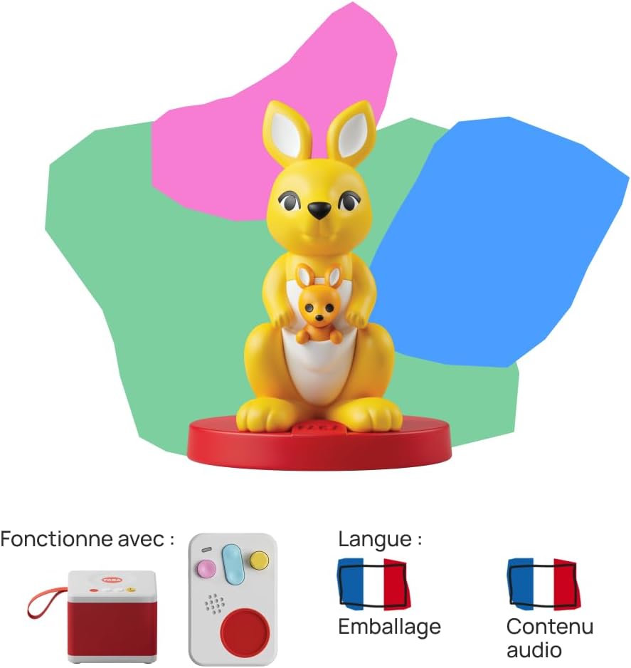 Personaggio sonoro da posizionare su FABA Storyteller o su FABA+, che permette ai bambini di ascoltare in autonomia storie, canzoni e filastrocche. UNA GIORNATA CON LA MUSICA: Una selezione di 12 canzoni che raccontano la giornata tipo di un bambino, dal risveglio al mattino allo scendere la sera. Il Bondi Kangaroo comprende melodie invitanti per iniziare la giornata con un sorriso, canzoni allegre per accompagnare i giochi e le belle scoperte della vita quotidiana e musica rilassante per i momenti di tranquillità. Per una routine quotidiana dove il divertimento regna sovrano! Compatibilità: Compatibile con i due narratori FABA. Il narratore non è incluso. Per ascoltare i contenuti audio aggiorna FABA Storyteller con MyFaba Computer App, se hai FABA+ connettiti al WiFi. Età consigliata: 0-3 anni. Abilità sviluppate: creatività, apprendimento. STIMOLA IL LINGUAGGIO: Uno studio dell'Università di Trieste ha mostrato un miglioramento nei risultati dei test di vocabolario per bambini in età prescolare che ascoltavano contenuti audio con il FABA Storyteller per circa un'ora a settimana. Durata: ca. 30 minuti, editore: Animaj