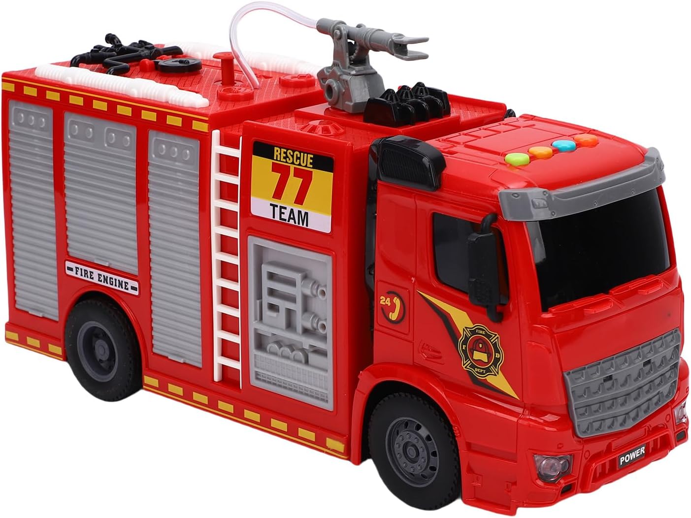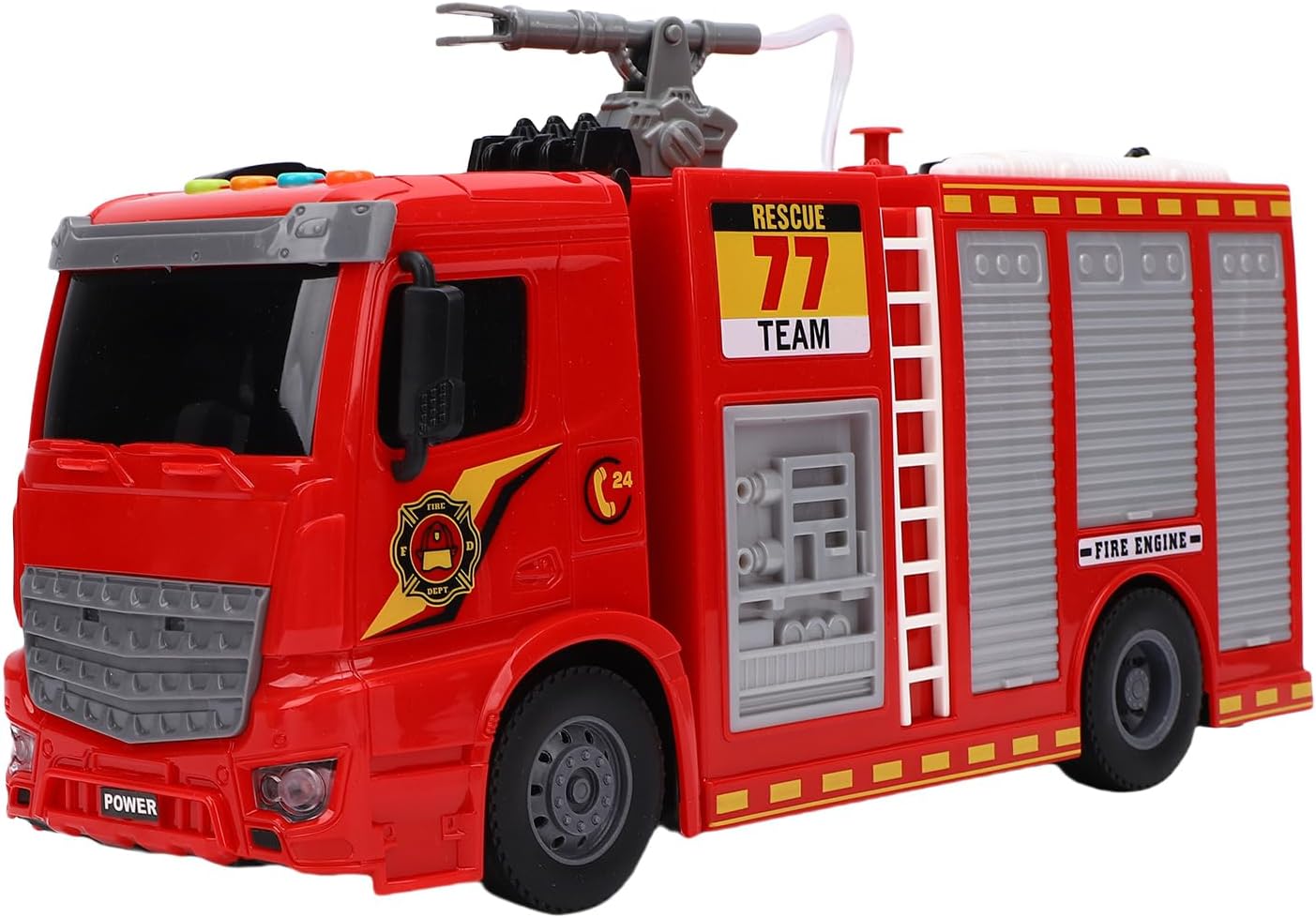 [DESIGN REALISTICO DEL CAMION DEI POMPIERI] - Stimola l'immaginazione dei bambini con dettagli realistici [SPRAY D'ACQUA INTERATTIVO]: migliora le avventure di gioco di ruolo con un gioco d'acqua funzionale [LUCI E SUONI ATTRAENTI]: cattura l'attenzione con luci LED luminose e musica allegra [GIOCATTOLO DIVERTENTE DEL REGISTRO DEL FUOCO]: incoraggia il gioco fantasioso e l'apprendimento pratico delle missioni di salvataggio. [PULSANTI FACILI DA CONTROLLARE]: funzionamento semplice per i più piccoli da manovrare e divertirsi