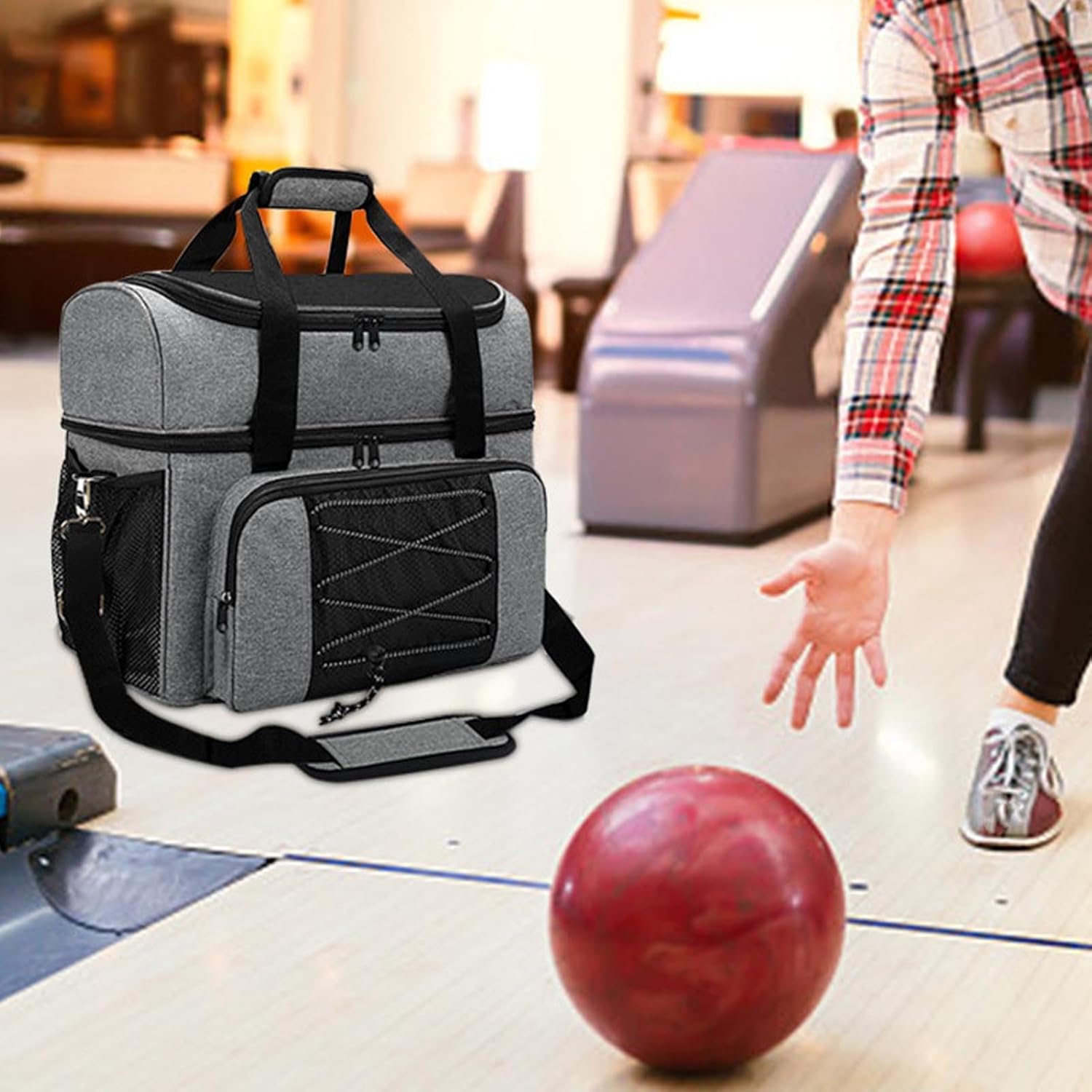 [Comodo scomparto per scarpe] Dispone di scomparto per scarpe sulla parte superiore facile organizzazione, mantenendo le scarpe separate dalle palle. [UTILIZZO VERSATILE] Adatto a principianti e giocatori avanzati, sia per i giochi quotidiani che per le gare di bowling. [FACILE DA ORGANIZZARE] Con scomparti interni per riporre gli accessori, assicura che tutto abbia il suo posto e sia facilmente accessibile durante il gioco. [MATERIALE PROTETTIVO] Il materiale in tela impermeabile e antipolvere protegge palloni e scarpe e mantiene le loro condizioni per un uso a lungo termine. [PACCHETTO COMPLETO] Viene fornito con 1 borsa per palline da bowling e 3 accessori, per soddisfare tutte le tue esigenze di bowling in un unico comodo set.