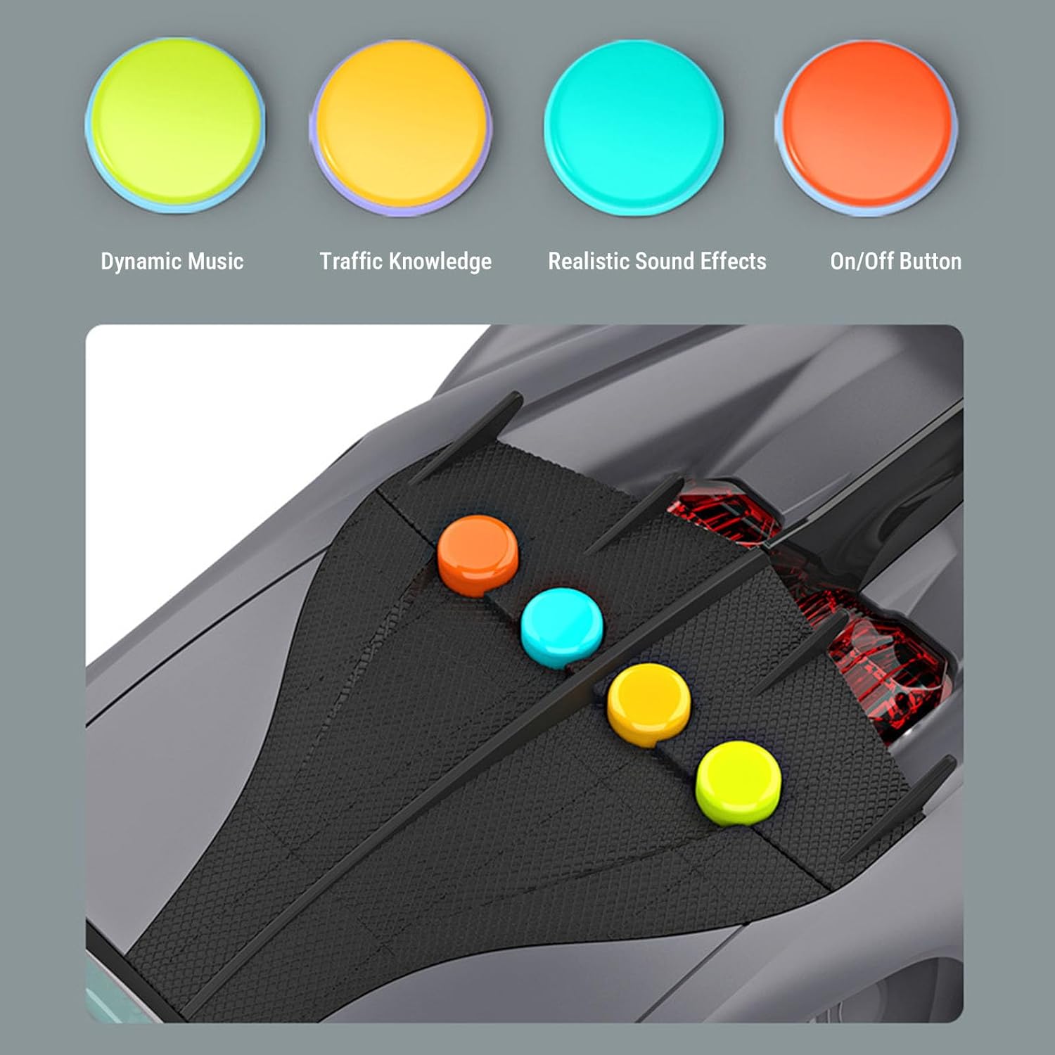 [AUTO DA CORSA AUTENTICA] Una replica dettagliata con stile e artigianalità autentici ispira gioco fantasioso e creatività. [Smooth Inertial Ride] Guida dolcemente con una leggera spinta per un'esperienza di guida realistica che ispira eccitazione. [GIOCO INTERATTIVO] 4 pulsanti attivano luci vibranti e musica giocosa, migliorando il coinvolgimento e creando un ambiente di gioco dinamico [ELEMENTI EDUCATIVI] Basato sulla sicurezza stradale, combina divertimento e apprendimento essenziale per le giovani menti [INTRATTENIMENTO INFINITO] Richiede 3 batterie AAA (non incluse) per ore di intrattenimento e sviluppo di abilità