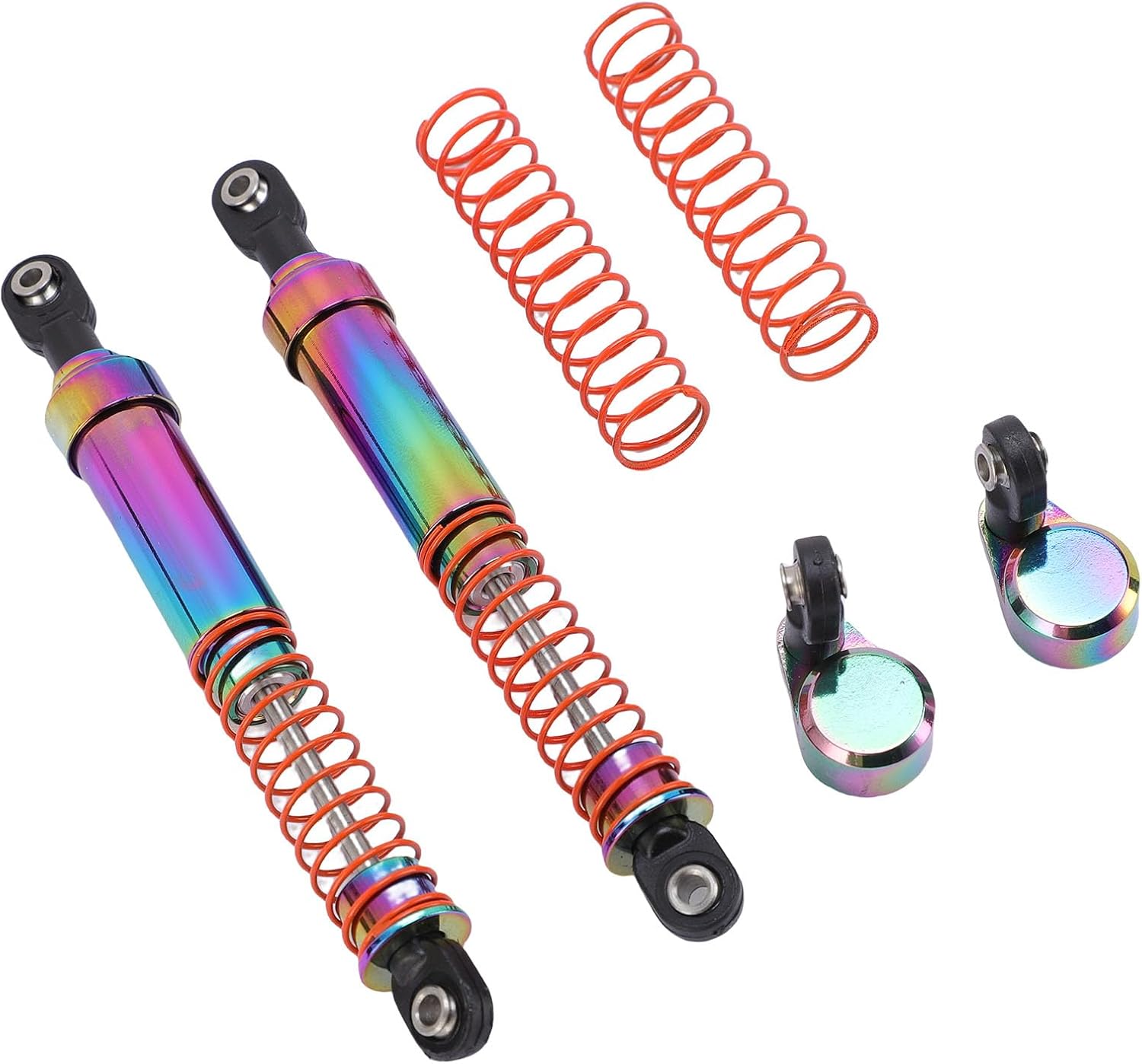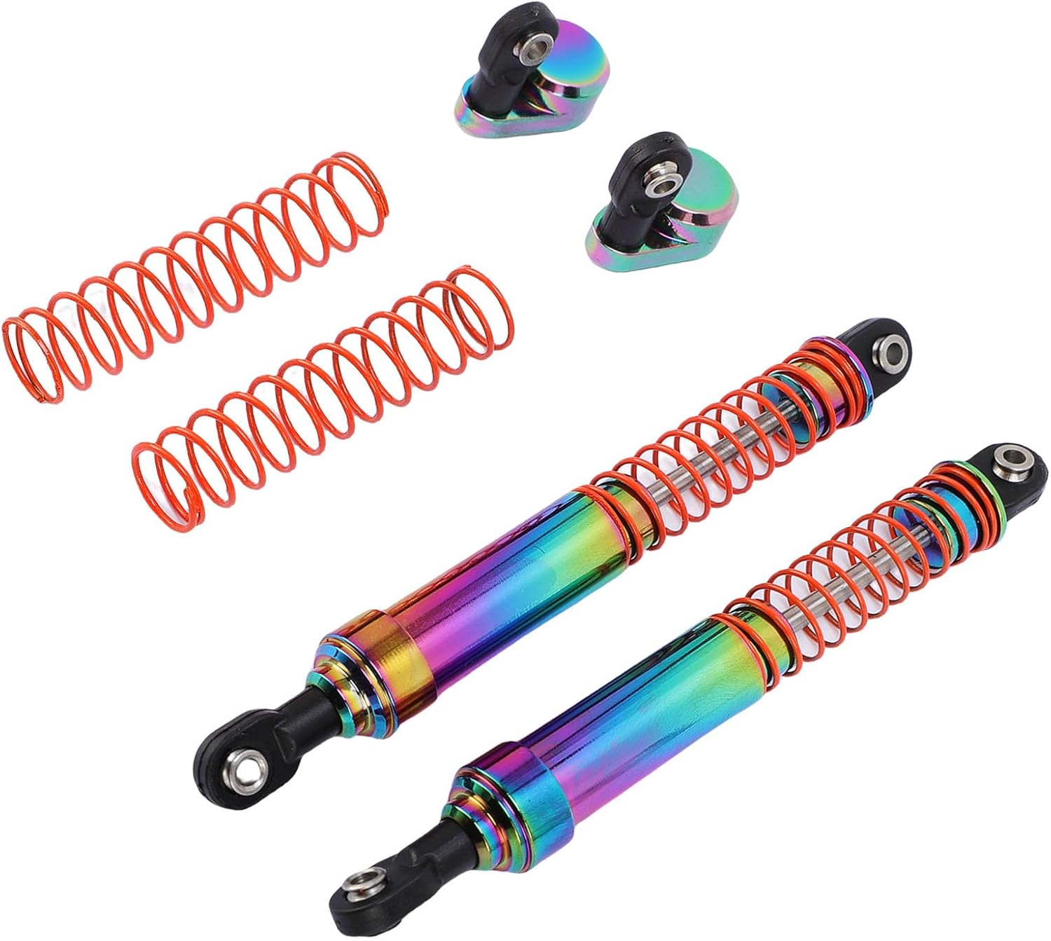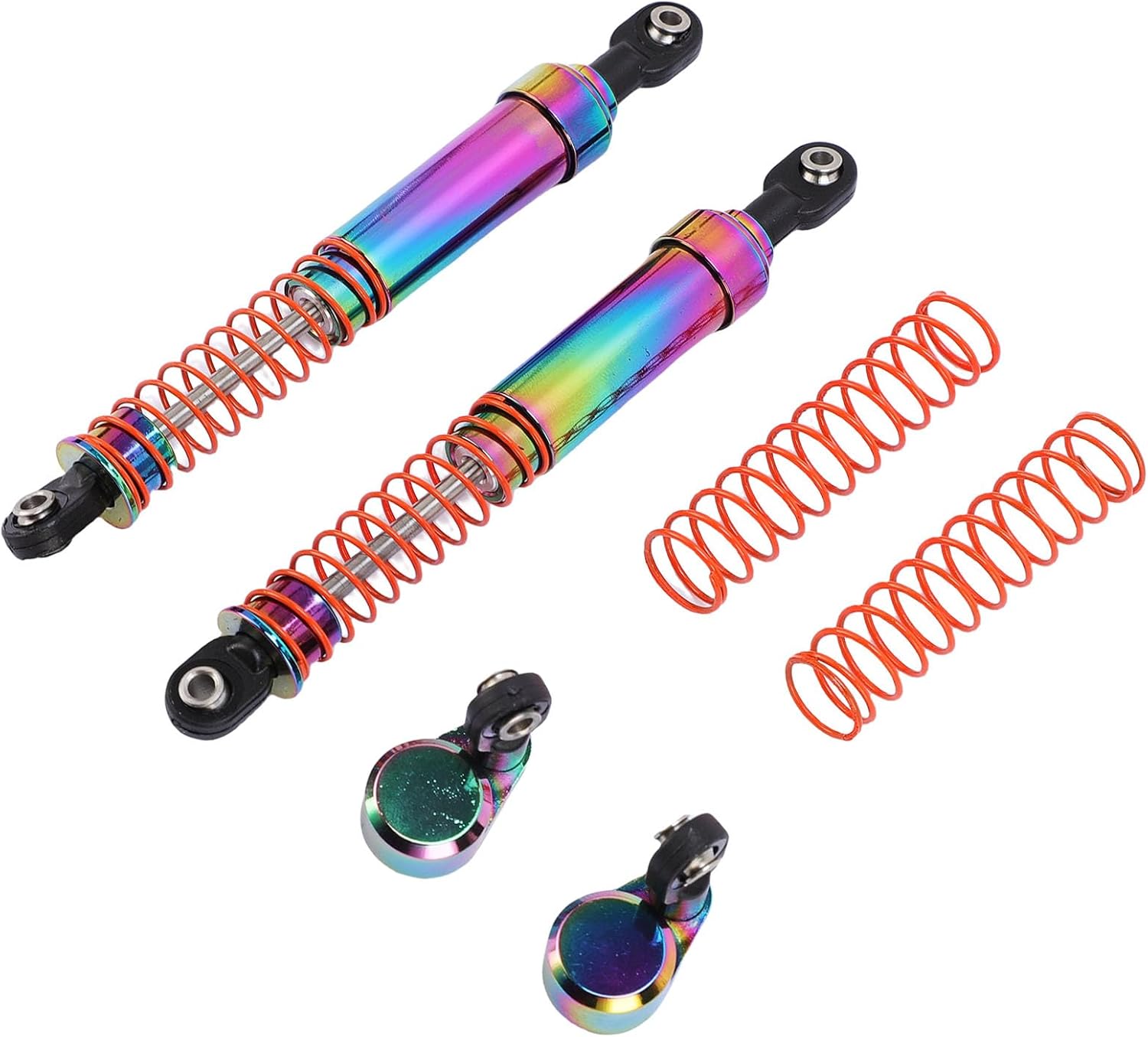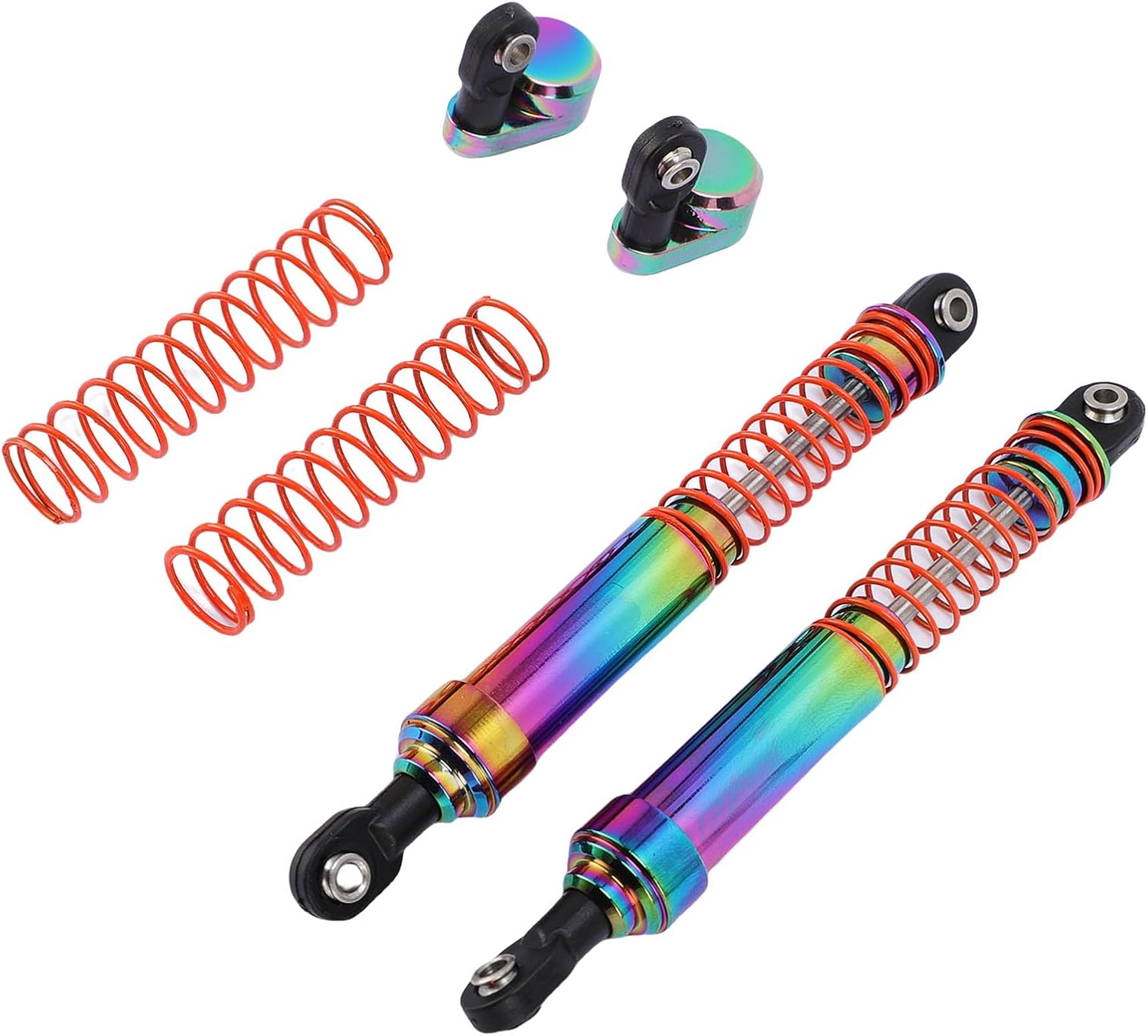 [PRESTAZIONI MIGLIORATE] Migliora la manovrabilità e la stabilità della tua auto RC con i nostri ammortizzatori idraulici. Assorbono gli urti provenienti da terreni irregolari, migliorando le prestazioni in salita e fuoristrada. [MATERIALE DUREVOLE] Questi ammortizzatori sono realizzati in lega di alluminio e sono leggeri e robusti. Forniscono un'eccezionale resistenza alla compressione e all'erosione per migliorare le prestazioni del veicolo. [DURATA OTTIMIZZATA] Il design del cilindro più grande aumenta la capacità dell'olio, migliora la dissipazione del calore e prolunga la durata. Goditi prestazioni affidabili e durature in tutte le tue avventure RC. [FINITURA STRAORDINARIA] I nostri ammortizzatori presentano una finitura elettrolitica lucida e un cappuccio sfalsato unico per un design visivamente accattivante. Fai risaltare il tuo modello RC con un look colorato e vivace. [INSTALLAZIONE VERSATILE] Con tappi offset regolabili, questi ammortizzatori sono compatibili con vari modelli e layout di sospensione. Goditi una facile installazione per gli appassionati che cercano entrambi