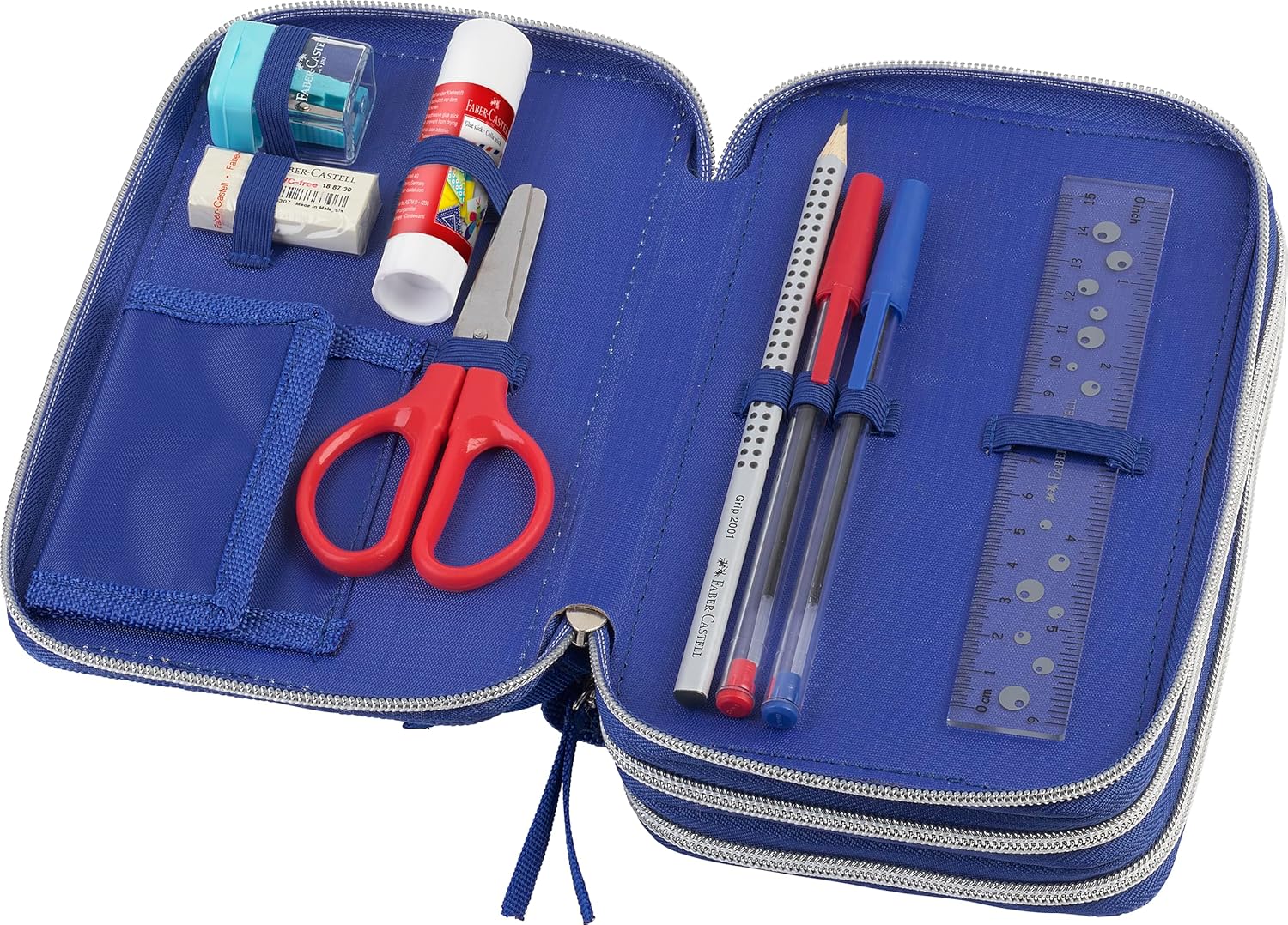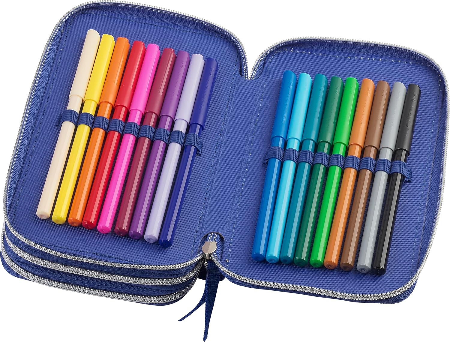 Il triplo astuccio design dinosauro è suddiviso in 3 sezioni e include diversi prodotti Ideale per la scuola o a casa Contiene 18 matite colorate 18 pennarelli Matita grafite Grip graduazione HB Forbici scolastiche