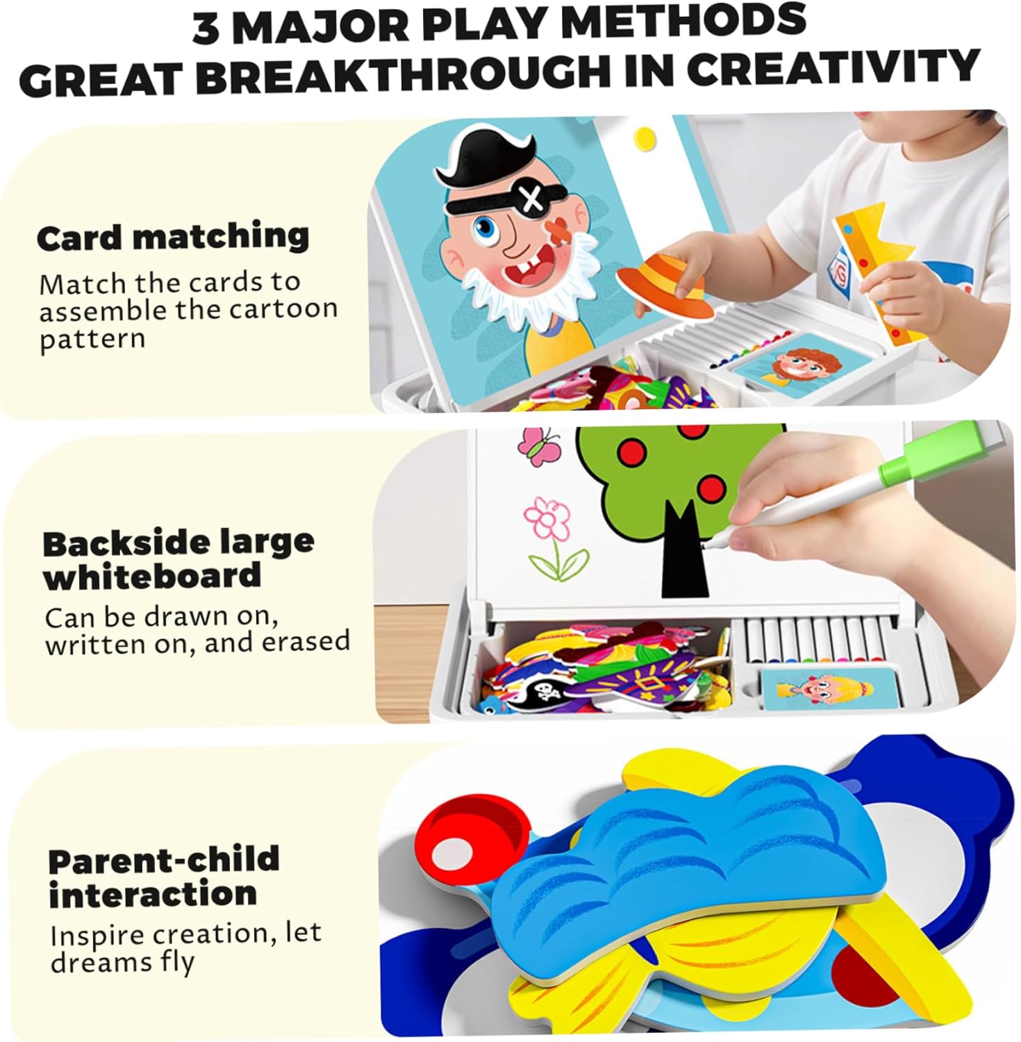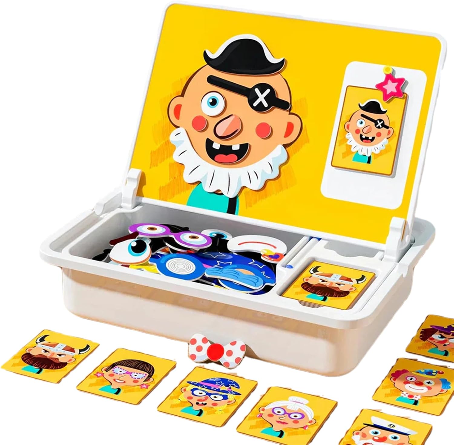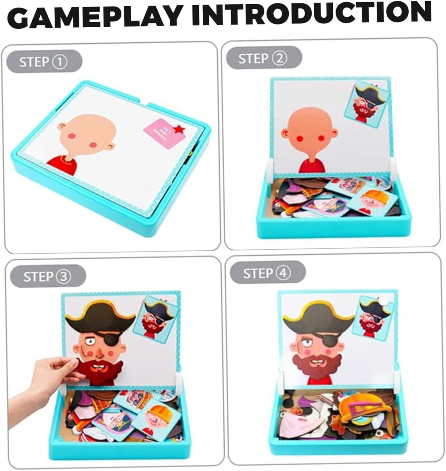 Portatile e leggero: compatto e facile da trasportare, perfetto per l'apprendimento in movimento e per intrattenere i bambini durante i viaggi o i momenti tranquilli Materiali: realizzati con pezzi magnetici atossici e cartone robusto, garantiscono un utilizzo sicuro e duraturo per i bambini in età prescolare attivi Divertimento educativo: questo libro Magnetic Faces combina attività di risoluzione di puzzle e pittura, incoraggiando lo sviluppo cognitivo e la creatività dei bambini attraverso un gioco coinvolgente e interattivo Design fronte-retro: presenta un design fronte-retro che offre sia puzzle di abbinamento dei volti che dipinti creativi, massimizzando la varietà del tempo di gioco e il valore educativo Sviluppo delle abilità: promuove le capacità motorie, la coordinazione occhio-mano e il riconoscimento facciale precoce, rendendolo un giocattolo di apprendimento magnetico ideale per l'istruzione prescolare