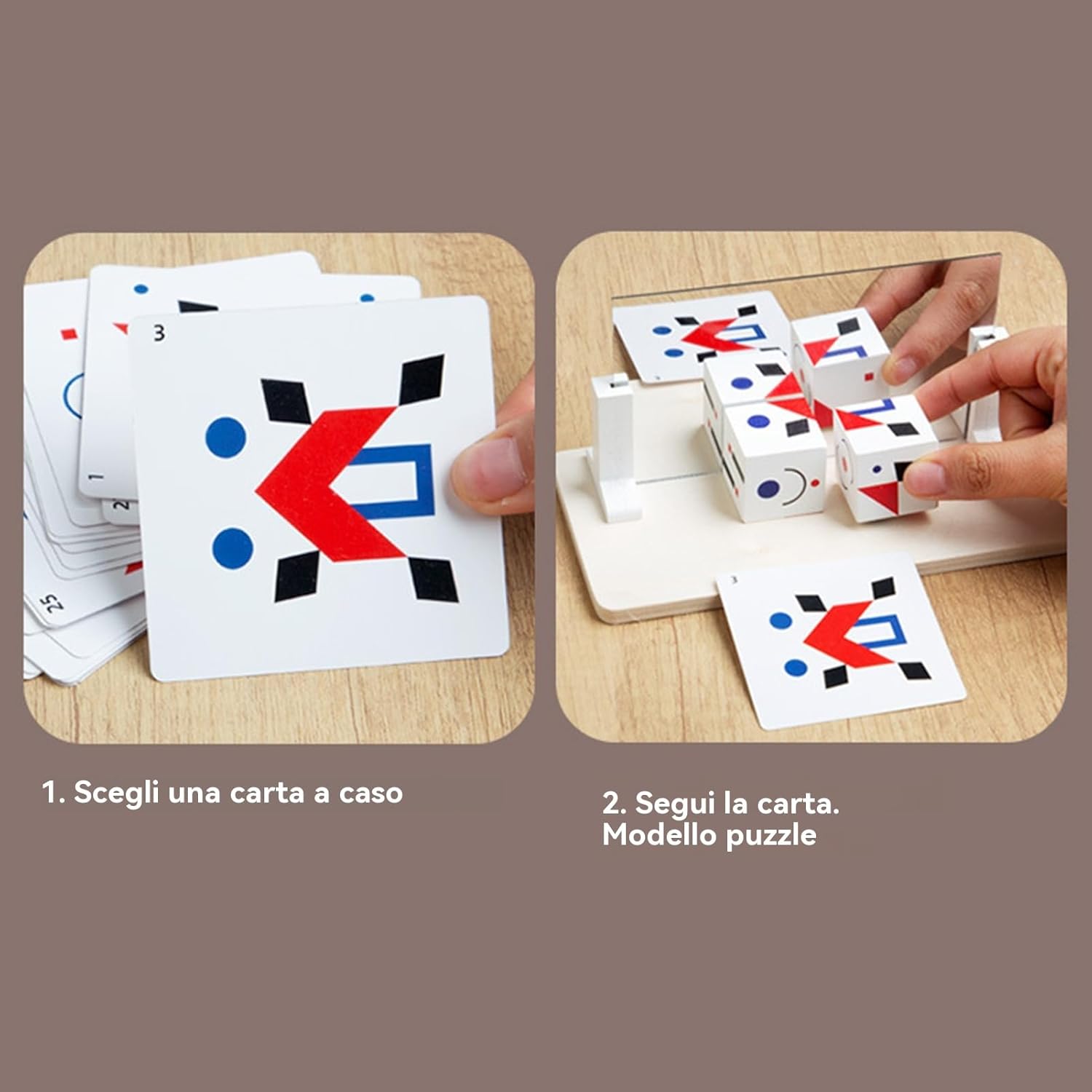 Formazione per l'apprendimento precoce: incoraggia la costruzione della concentrazione e la gestione della precisione attraverso attività progettate per migliorare il coordinamento visivo nel comando incorporando esercizi di simmetria 'immagine speculare Li Sviluppo precoce: incoraggia i momenti di apprendimento gioioso attraverso un interattivo per il gioco degli specchi, creando opportunità per una collaborazione significativa genitore-figlio e mescolando l'educazione in ogni momento giocoso in modo naturale Divertimento aperto: offre perfette opportunità creative con un gioco a doppia modalità e pezzi di legno con cura con cura per attirare giovani menti e ispirare l'immaginazione Foster Creative Thinking: incoraggia la risoluzione del puzzle geometrico per migliorare la consapevolezza spaziale 3D, consentendo l'apprendimento giocoso attraverso le sfide del modello e la creazione di forma fantasiosa per un'esperienza cognitiva interattiva