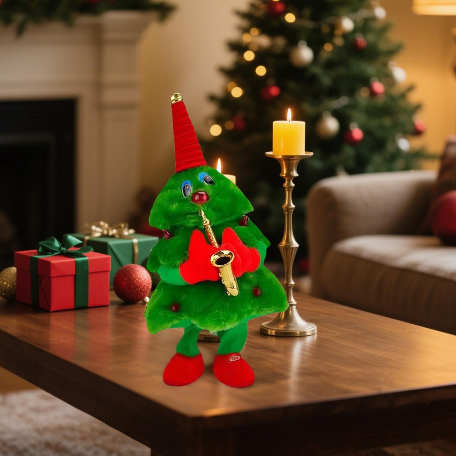 Intrattenimento Natalizio: Creazione di un'ambiente festoso immersivo con ornamenti luminosi oscillanti e spettacoli di luce-sonoro dinamici, arricchendo decorazioni per feste e raduni familiari attraverso la sincronizzazione di suoni gioiosi e movimenti ritmici che stimolano il buonumore. Selezione Regalo Meravigliosa: Funziona come regalo decorativo che trasmette calore, migliorando l'atmosfera natalizia mentre cattura la curiosità di chi guarda, offrendo alle famiglie un modo delizioso per legare e celebrare la stagione in modo significativo Spensieratezza Natalizia Immediata:L'interfaccia intuitiva con pulsante touch-sensitive assicura un funzionamento rapido e semplice, permettendo agli utenti di concentrarsi sulle tradizioni festive senza preoccupazioni e di diffondere gioia istantanea in qualsiasi ambiente festivo Addobbo Natalizio Vivace: Caratterizzato da un design in peluche natalizio, l'albero di Natale cantante incorpora un centrotavola stagionale giocoso e una combinazione di colori festivi rosso-verde, agendo come un decorativo punto focale visivo che migliora lo spirito delle feste e ravviva ogni radstagionale con il suo fascino, adatto per celebrazioni in famiglia. Gamma di Utilizzi: Grazie alla capacità di migliorare qualsiasi ambiente, questo albero di Natale cantante può essere posizionato senza sforzo su tavoli, mensole o altri punti, portando spirito natalizio gioioso sia in casa che nei negozi, mantenendo un elegante tocco stagionale senza occupare spazio eccessivo