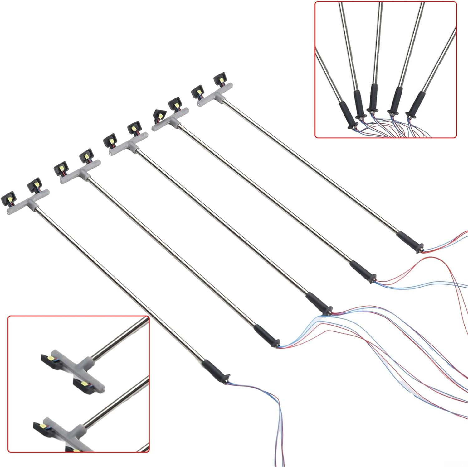 Luci da cortile in miniatura: queste 5 luci a LED sono progettate per layout in scala OO/00 (1:76), portando un'illuminazione realistica al tuo mondo in miniatura. Ogni luce è alta circa 12 cm ed emette una luce bianca brillante, creando un'atmosfera autentica per il tuo paesaggio di modellini di treno o layout stradali. [Sistema di cablaggio completo]: ogni luce di inondazione è completamente equipaggiata con cablaggio interno e LED che possono essere facilmente collegati a un alimentatore da 3 V (non incluso). Per prestazioni ottimali, si prega di notare che queste luci non dispongono di resistenze integrate, utilizzare un'adeguata alimentazione da 3 V o aggiungere resistenze se necessario. Struttura di alta qualità: realizzate con materiali di lunga durata, sicuri e rispettosi dell'ambiente, queste luci da giardino sono costruite per resistere ai rigori delle configurazioni ferroviarie modellini mantenendo il loro aspetto e funzionalità per le tue scene dettagliate. [Applicazione versatile]: queste luci a LED doppie servono come accessori eccellenti per paesaggi di modellini, layout stradali, mini decorazioni da giardino e progetti di paesaggi. Aggiungono interesse visivo e funzionalità realistiche a qualsiasi mondo in miniatura creato. Facile installazione: basta collegare queste luci a una fonte di alimentazione da 3 V adatta (ricordarsi di non superare questa tensione) e posizionarle in tutto il cortile ferroviario o sulla scena stradale per ottenere un'illuminazione dall'aspetto professionale che migliora il realismo generale del tuo layout.