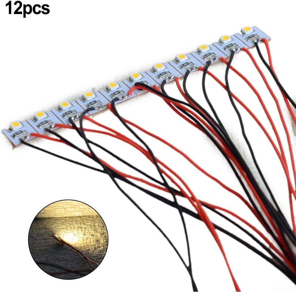 [Praticità precablata]: queste 12 luci a LED SMD bianche calde sono pre-cablate, risparmiando tempo e fatica nell'installazione. Ogni luce è dotata di un filo da 200 mm, che consente un posizionamento flessibile e un facile collegamento alla fonte di alimentazione da 12 V CC. Soluzione di illuminazione versatile: perfetta per modellismo ferroviario, case delle bambole e vari progetti in scala OO. Queste luci in miniatura sono eccellenti per creare un'illuminazione interna realistica in edifici, carrozze ferroviarie o qualsiasi scena su piccola scala che richiede un'illuminazione calda e invitante. [Prestazioni a basso consumo energetico]: funzionano a soli 20 mA per luce, questi LED forniscono un'illuminazione bianca calda e luminosa consumando energia minima. Il consumo di energia aiuta a mantenere freschi i modelli durante un uso prolungato. [Compatto e adattabile]: con una dimensione del chip di 10 mm x 10 mm, queste luci a LED sono adatte per il montaggio in spazi ristretti. Il loro ingombro ridotto li rende ideali per progetti di illuminazione dettagliati in cui lo spazio è limitato. Illuminazione di lunga durata: questi LED sono progettati per un uso prolungato, fornendo una luce bianca calda e costante nel tempo. Sono una scelta affidabile per progetti di illuminazione a lungo termine, assicurando che le tue creazioni rimangano splendidamente illuminate per gli anni a venire.