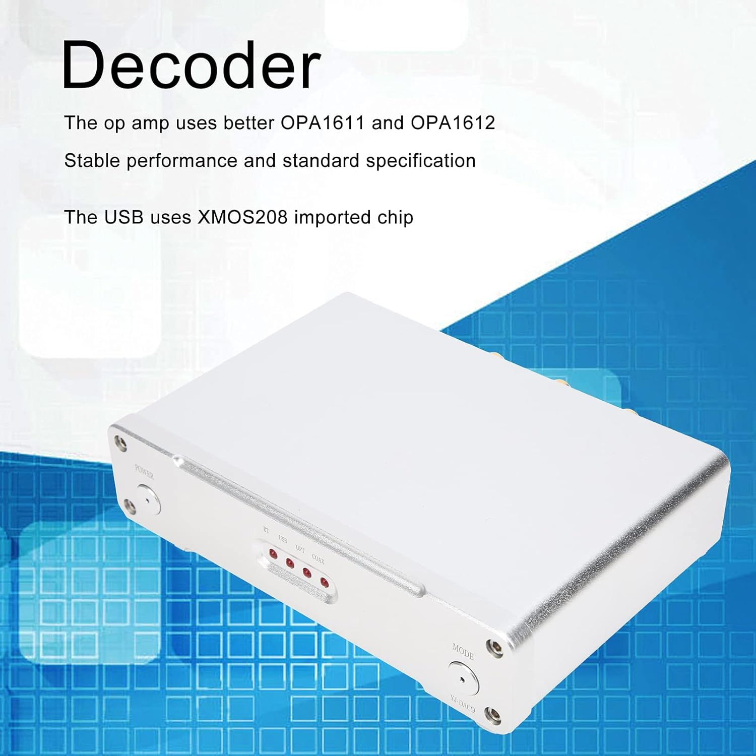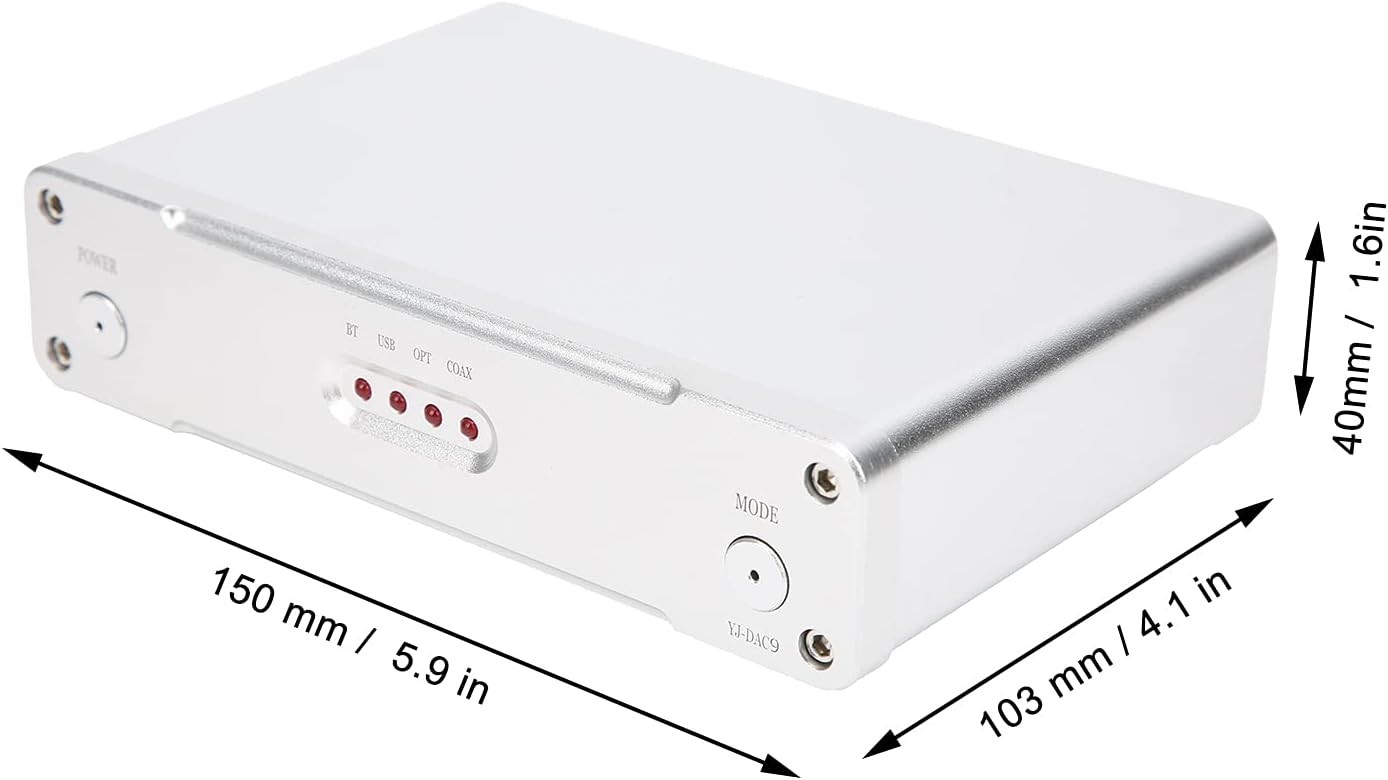 [Input versatile] Il decodificatore equipaggiato con antenna supporta ingressi coassiali, ottici, USB e per la flessibilità. [Durevole] dotato di chip USB per durata e stabilità. [Connessione stabile] Il prodotto presenta QCC3008 con supporto APTX per la connettività stabile. [Componenti di alta qualità] realizzati con processi di precisione e componenti elettronici di alta qualità durata duratura. [Premium Performance] utilizza amplificatori OP OPA1611 e OPA1612 per prestazioni superiori e specifiche standard.