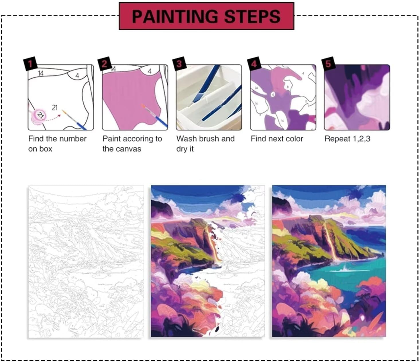 💙 Dipingere con i numeri per adulti: Il kit DIY Paint by Numbers for Adults aiuterà le persone a promuovere il rapporto tra famiglie, amici, marito e moglie, quando si dipinge insieme. La pittura a olio digitale consente di completare facilmente un dipinto a olio e di godere del divertimento della creazione e del gioco. 💙Materiali di alta qualità: Adotta colori acrilici di alta qualità, sicuri e rispettosi dell'ambiente, pieni di colore, luminosi, con un forte potere coprente, senza preoccuparsi che la vernice possa danneggiare il corpo. Il pennello utilizza materiale di nylon ad alta elasticità, in modo che il processo di pittura sia più fluido. 💙Facile da dipingere: basta abbinare i numeri della vernice e le figure sulla tela per riempire la vernice. Dipingi in base ai numeri dei colori, finisci uno per uno. La pittura per numeri è adatta a tutti i livelli di abilità, sia che siate adulti, bambini o principianti. Riempi il colore in base ai numeri, non hai bisogno di alcuna abilità pittorica. 💙DIY Digital Oil Painting Divertimento: non solo può creare opportunità di stretta comunicazione e contatto tra genitori e figli, ma i colori ricchi aiutano anche a coltivare la concentrazione, la creatività e le capacità di coordinamento dei bambini, ma anche ad alleviare lo stress degli adulti, per le persone di mezza età e gli anziani, aiuta a coltivare il corpo e la mente, completando un dipinto può dare un senso di realizzazione e di fiducia in se stessi. 💙 Decorazione e regali d'arte per la casa:La pittura a olio digitale è un'arte fai-da-te molto popolare, adatta per decorare la casa e l'ufficio (sala da pranzo, soggiorno, camera da letto, ufficio, caffetteria, ecc. Sia che si tratti di tenerlo per sé o di regalarlo ad altri, ha un significato e un valore molto speciale.