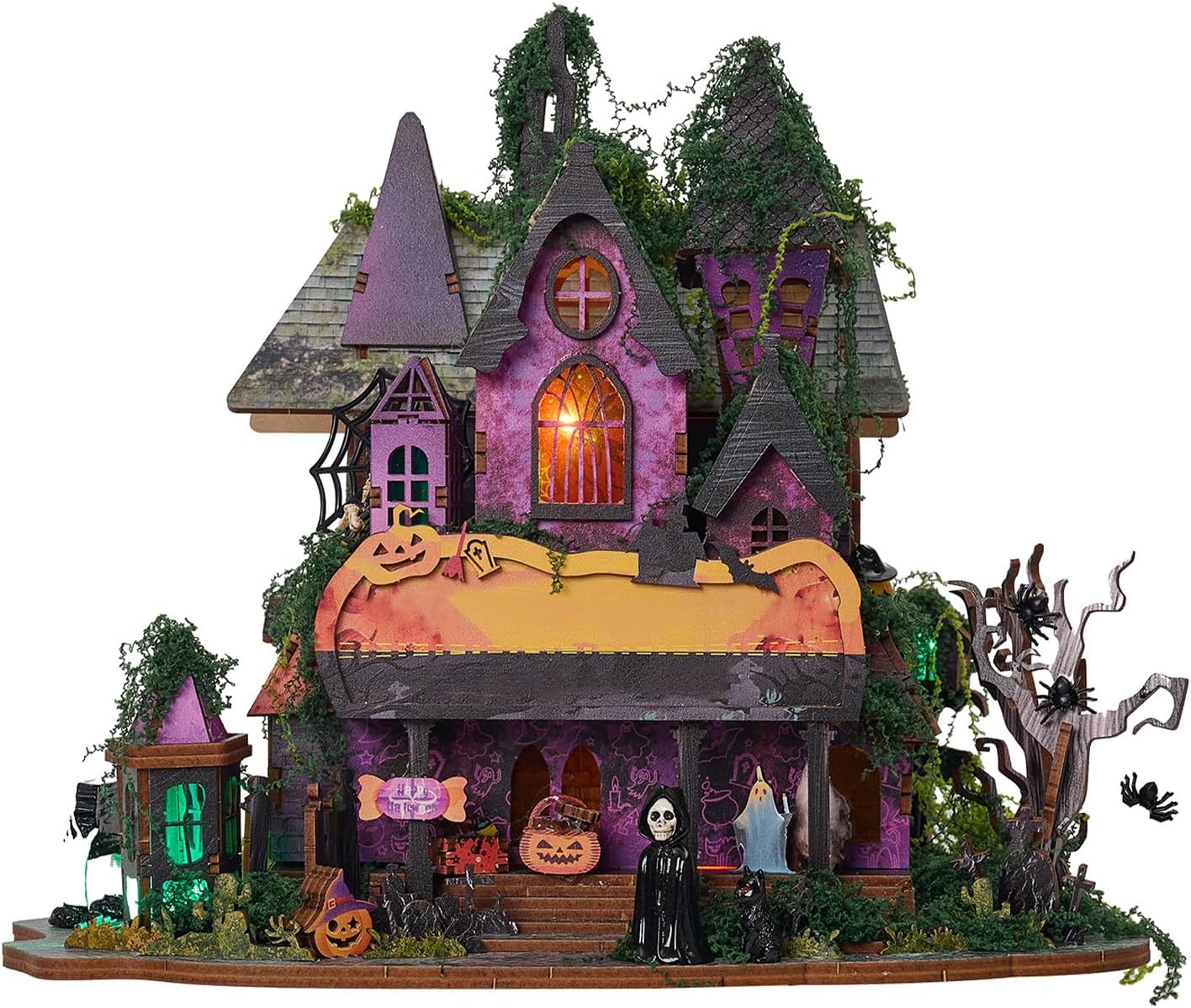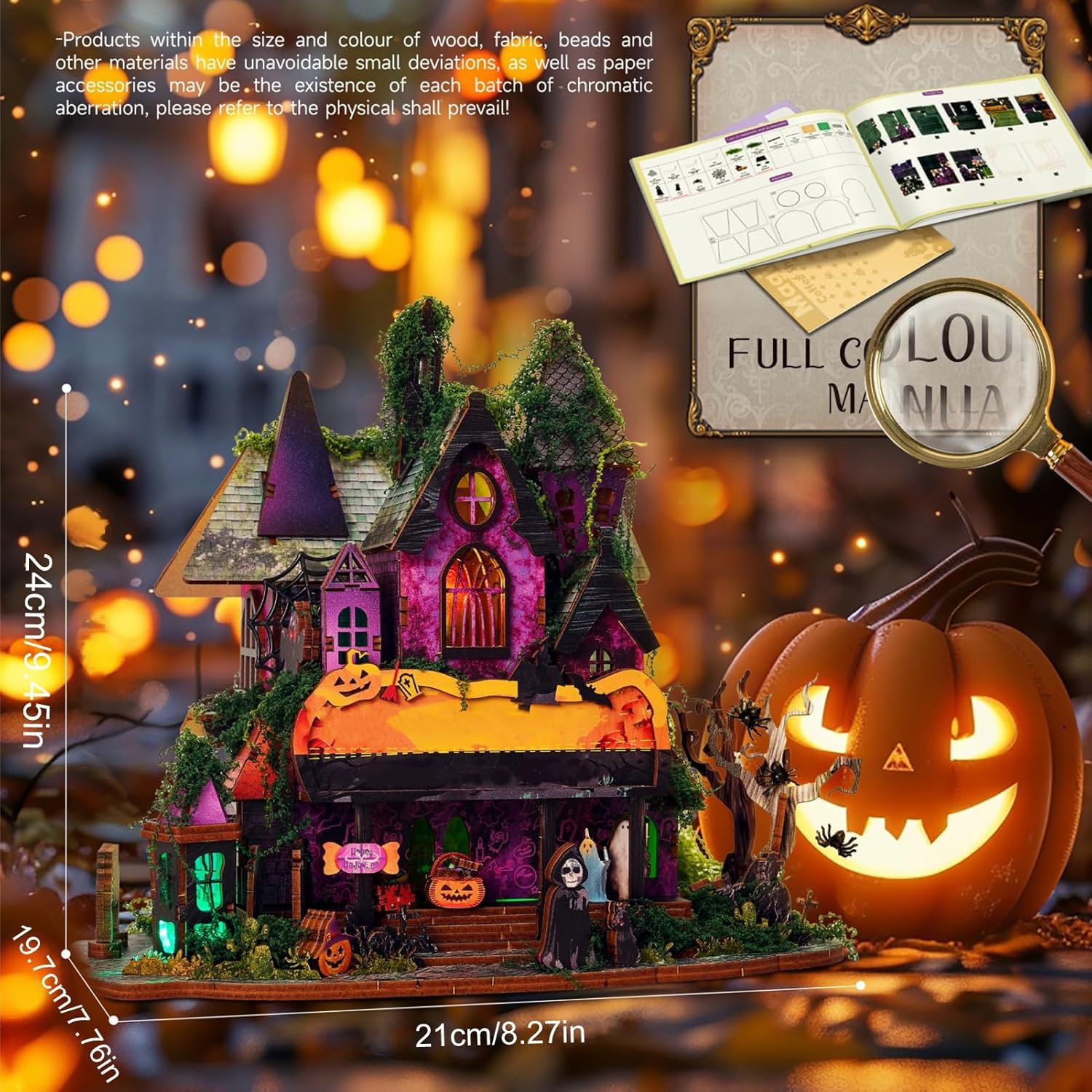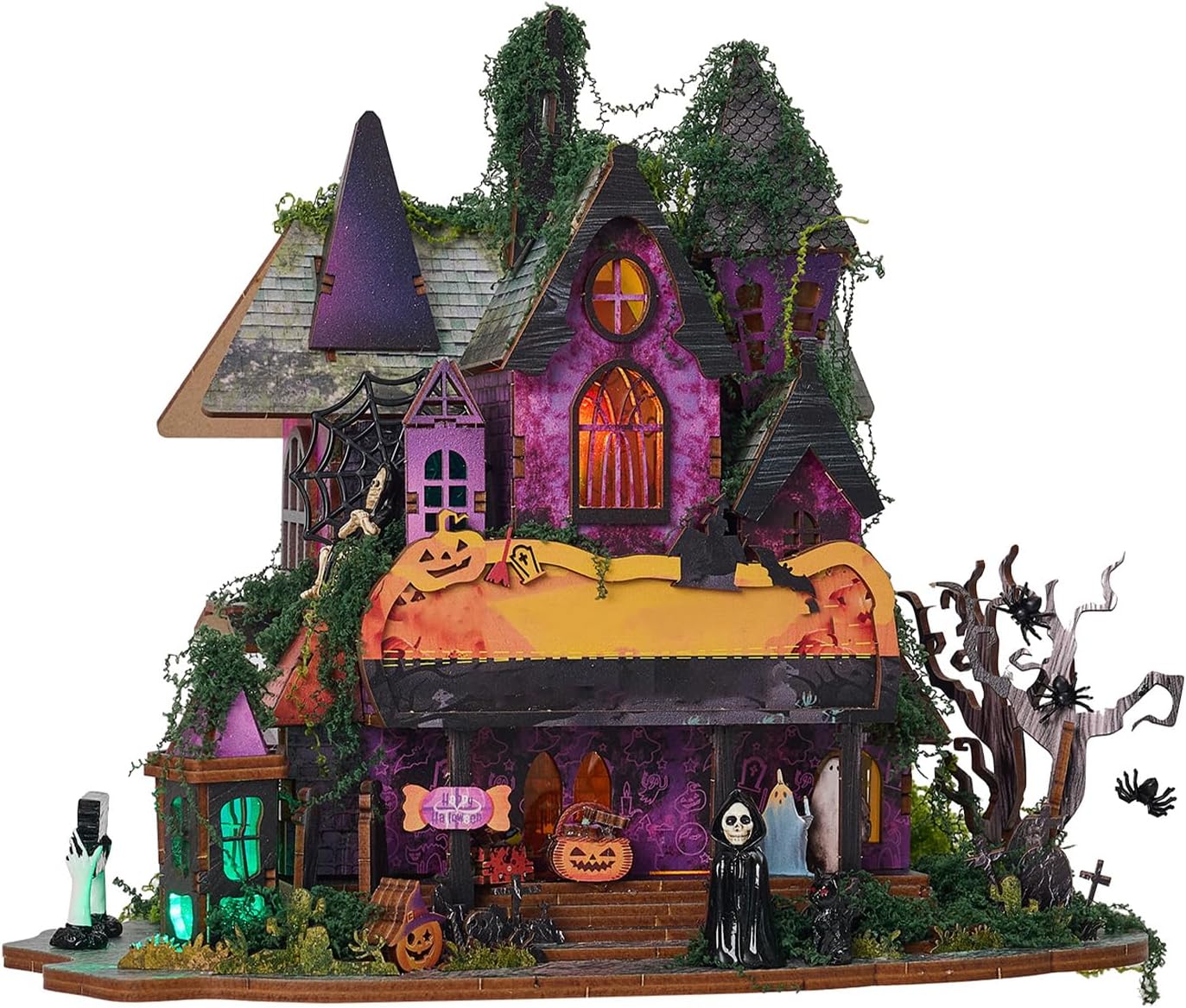 [DESIGN GOTICO ESCLUSIVO] Abbraccia lo spirito delle vacanze con un'esclusiva cabina del castello a due piani adornata con intricati rampicanti e ragnatele, che danno un tono misterioso alla casa. [RICCHE DECORAZIONI SPETTRALI] Dai vita alla scena della "festa dei fantasmi" con decorazioni dettagliate di fantasmi e ragnatele, aggiungendo fascino narrativo al modello. [LUCI LED MULTICOLORE] Crea un look affascinante con luci LED integrate e un interruttore touch per modificare gli effetti, per migliorare il fascino del castello di notte. [DESIGN FACILE DA ASSEMBLARE] Goditi un assemblaggio senza problemi con una quantità minima di colla necessaria, rendendolo adatto ai principianti del fai-da-te per scoprire la gioia della creazione. [DIMENSIONE COMPATTA PER L'ESPOSIZIONE] Esponi questo castello puzzle 3D sulla tua scrivania o in una finestra, fungendo sia da sorprendente decorazione natalizia che da modello da collezione.