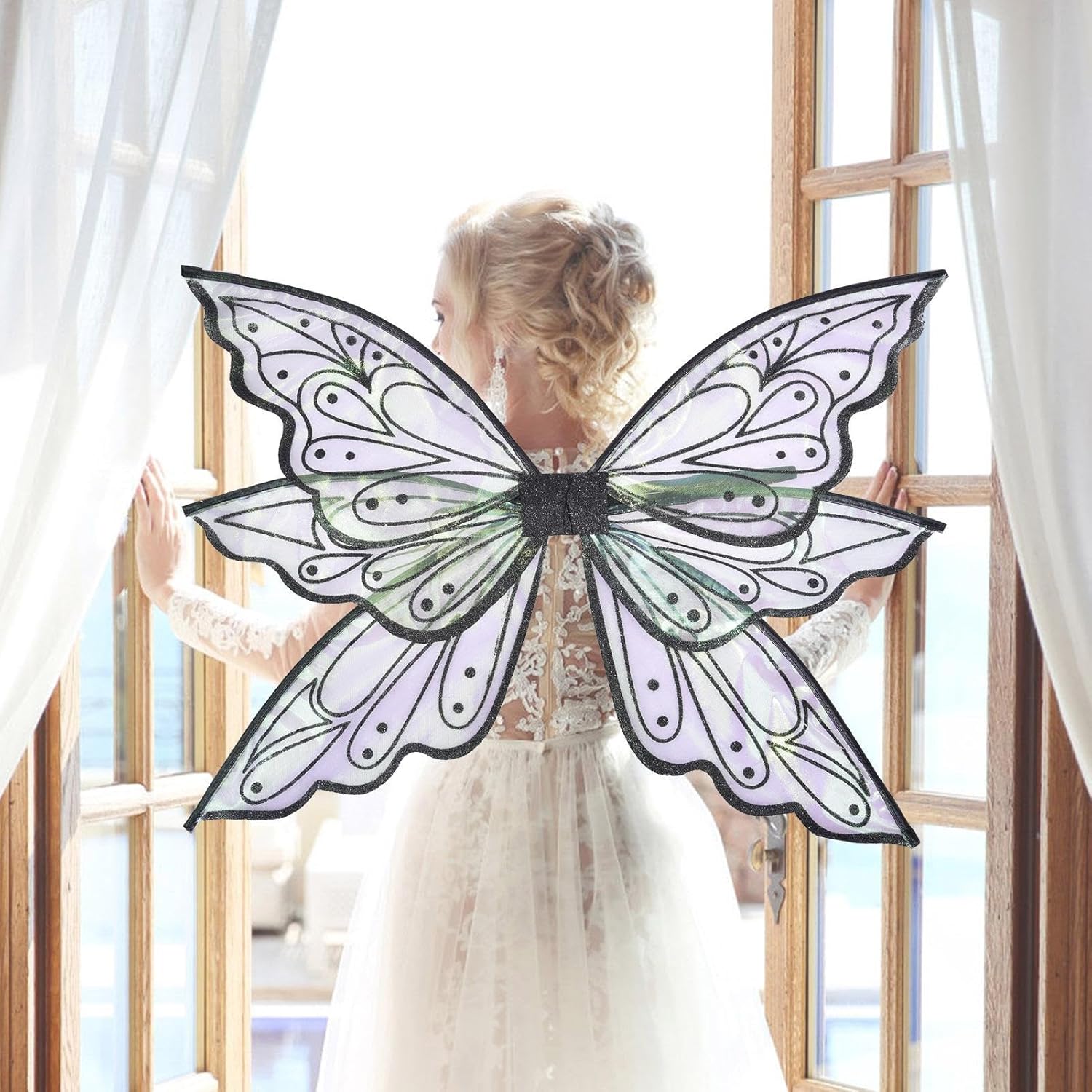 Materiali di alta qualità: realizzato in filato di alta qualità, Fairy Wing è leggero e comodo da indossare e co ntains un profilo bordo rigido antiruggine che non è facile da deformare o rompere. Adatto per la maggior parte degli adulti e dei bambini: adatto per adulti e bambini, Fairy Wi ngs misura circa 60 cm x 50 cm quando sono aperti e attaccati con due cinture elastiche, che non sono facili da cadere. Quando non in uso, può essere piegato al centro dell'ala per una facile conservazione. Grande effetto sfumato: le ali di Halloween ti permettono di diventare la più bella fata delle farfalle, hanno un effetto adiente gr, diventeranno gradualmente splendidi colori sotto il riflesso della luce. Ampia gamma di applicazioni: le ali di fata da donna sono ideali per vestire, abbigliamento, dan cing, fingere o giocare, molto adatte per giochi di ruolo in feste di festa, costumi da spettacolo teatrale, oggetti di scena, feste di Natale, feste di compleanno e, vivaci e colorati. Regalo meraviglioso: ogni ragazza sogna di diventare una fata incess, Fairy Wing può trasformarti in una fata che balla nel mare di fiori e farti amare da innumerevoli piccoli partner, un ottimo regalo per un compleanno o Natale.