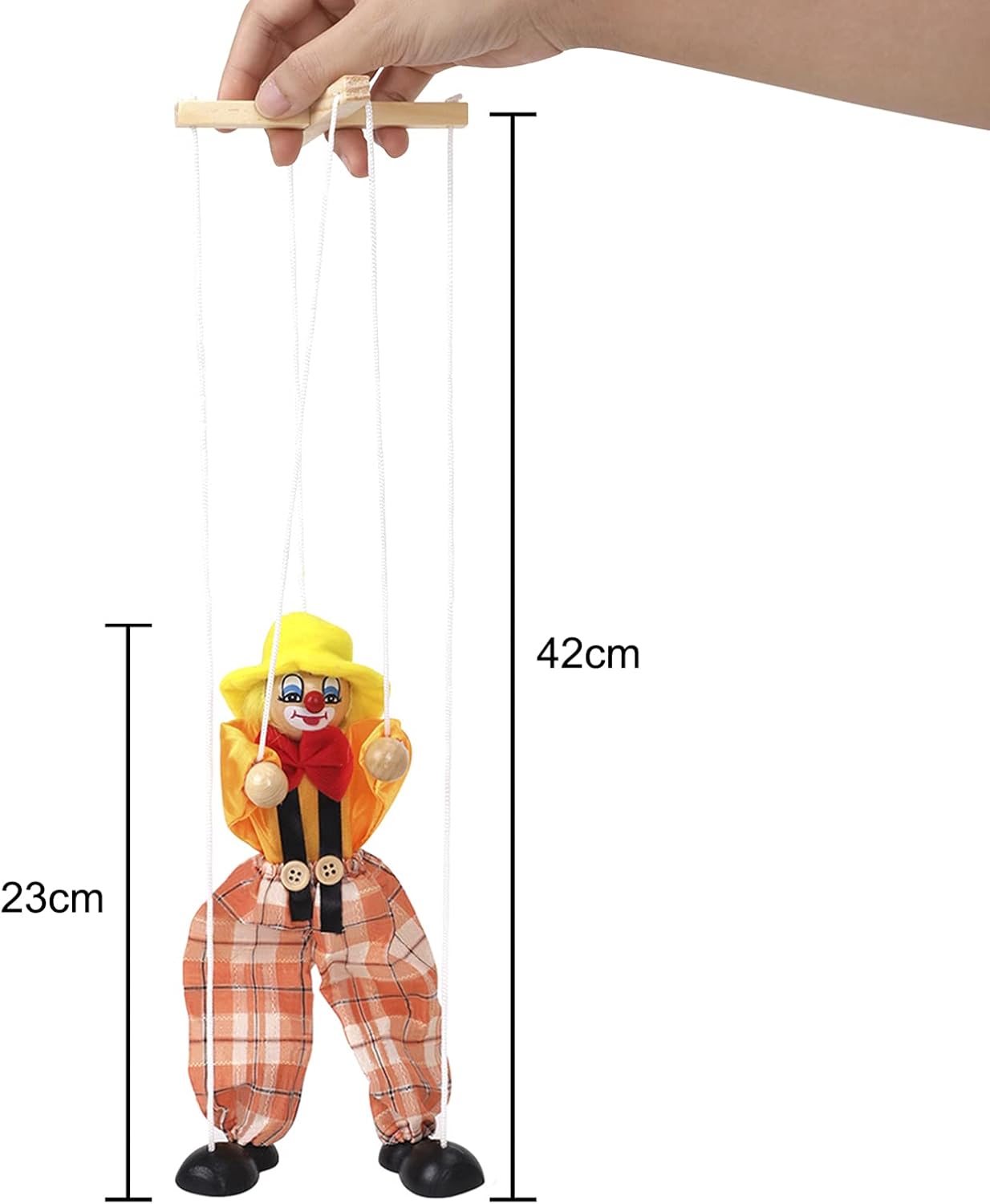 Materiale: questa bambola da clown è realizzata in legno e tessuto di alta qualità, riutilizzabili. Esecuzione squisita e lucidatura liscia, sensazione di mano morbida e confortevole. Dimensioni: altezza della bambola: 24 cm, lunghezza del cavo: 42,5 cm. Tirare il burattino con la parte superiore di controllo in legno e la corda non è tesa. Puoi regolare liberamente la lunghezza in base alle tue esigenze Design: classico clown a corpo intero, forma vivida ed espressioni facciali realistiche, abiti colorati con papillon e cappello dello stesso colore, molto apprezzati dai clienti Corda: gli arti della bambola da clown sono collegati al legno con corde e le articolazioni possono essere spostate. Tira la corda per controllare la marionetta e farla ballare. Bel pupazzo giocattolo per i tuoi bambini per sviluppare la destrezza delle loro dita, oppure puoi anche usarlo come un giocattolo interattivo per la famiglia, recitare un dramma o raccontare una storia per il tuo familiare, adoreranno sicuramente il tuo spettacolo
