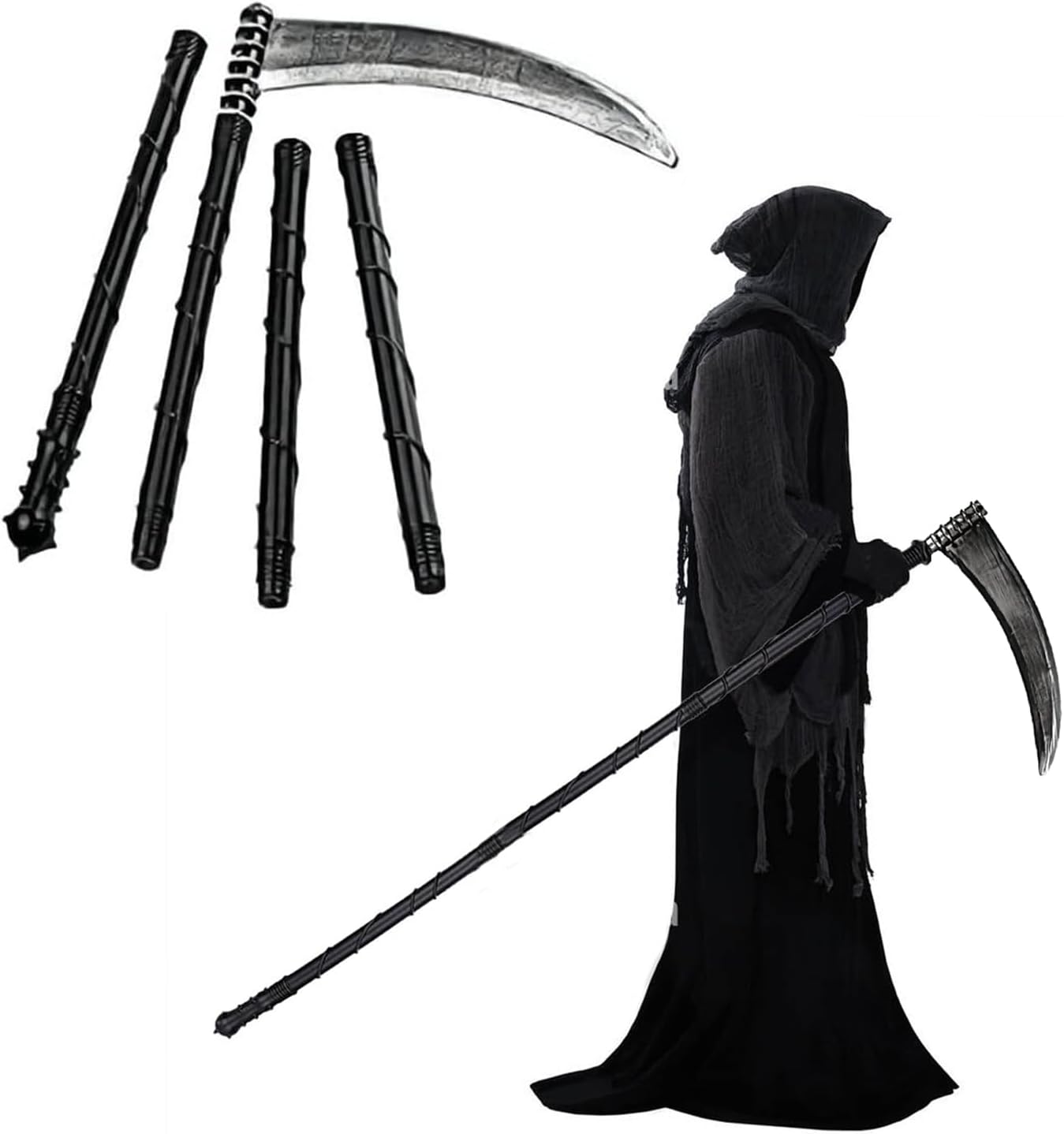 Falce Halloween 140 cm Lunga: Un imponente accessorio costume per mietitore, Grim Reaper o Angelo della Morte. Con un aspetto realistico, la Falce della Morte crea un autentico effetto spaventoso a ogni festa di Halloween Staccabile & Regolabile: La falce Halloween è composta da più parti e può essere facilmente assemblata o smontata. Comoda da trasportare, salvaspazio da riporre e regolabile in lunghezza per adattarsi a diverse esigenze Leggera & Sicura: Realizzata in plastica robusta, stabile ma allo stesso tempo leggera. La lama smussata rende la falce staccabile sicura per bambini e adulti – ideale per feste in maschera, cosplay e accessorio costume Grim Reaper Per Bambini & Adulti: Design unisex adatto a tutte le età. Perfetta come complemento ai set di costumi da mietitore o come Falce della Morte indipendente, è un vero richiamo visivo per fan di Halloween e cosplay Versatile & Decorativa: Un accessorio Halloween ideale per Carnevale, feste a tema, cosplay, teatro o come decorazione horror per interni ed esterni. Si abbina perfettamente a costumi da Grim Reaper, boia, gotico e altri costumi horror