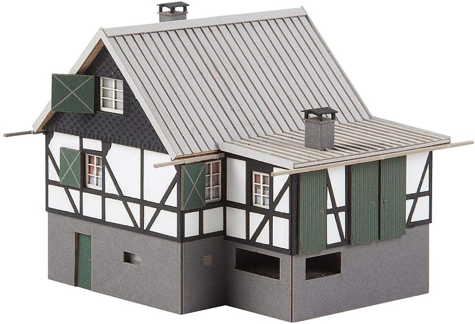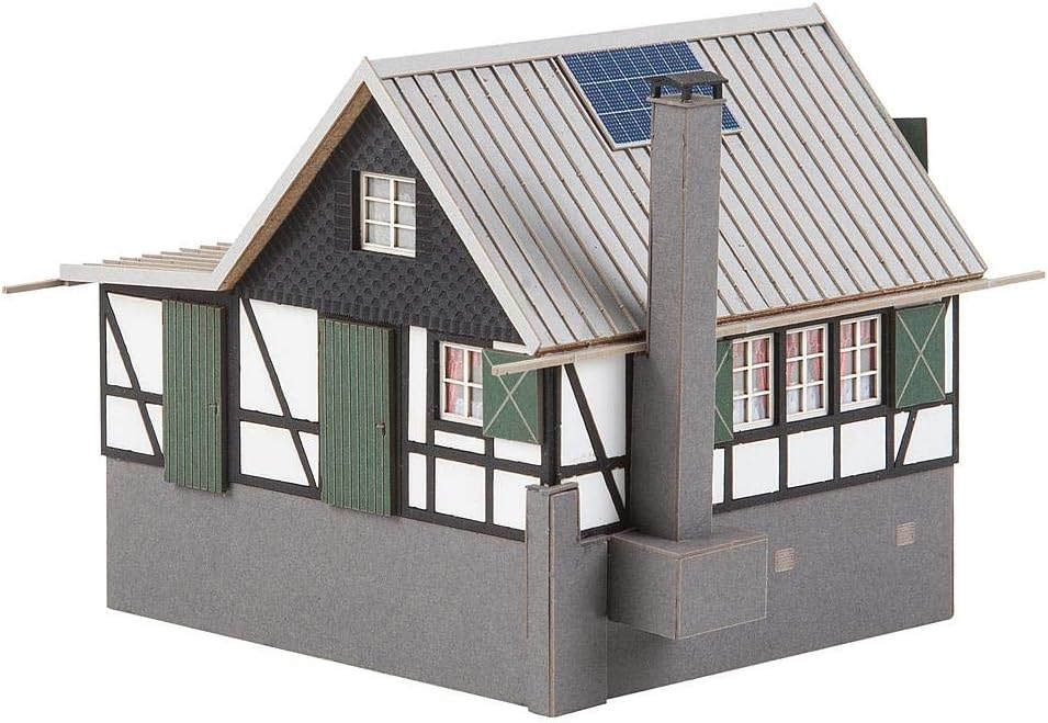 Scala H0, Scala: 1/87, Epocha: I, Gruppo articolo: accessori, decorazione Per la costruzione di sospensioni. Modello tagliato al laser di una casetta specializzata in struttura a cavalletto su un cantina murata secondo un modello originale nel paese vittoria. La base è suddivisa in due zone, oltre alla parte residenziale con persiane, camino esterno e piccolo impianto fotovoltaico, c'è anche una coltivazione riscaldabile. Le porte di ingresso si trovano su entrambi i piani. Questo kit contiene: 123 pezzi in 6 colori, pellicola per finestre, 1 maschera per tende e 1 manuale di istruzioni (lingua italiana non garantita). Utilizzate la colla per il fai da te "Faller Expert". Dimensioni: 95 x 104 x 76 mm. Espandibile da: 1 x 180660.