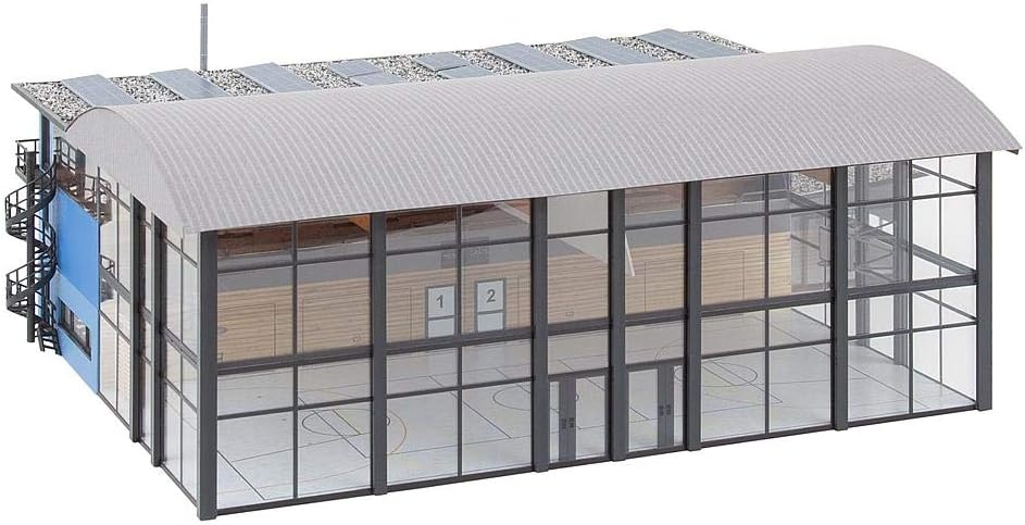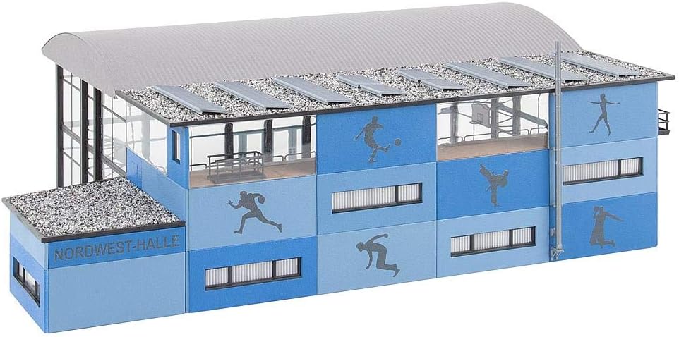Calibro: H0, scala: 1/87, epoca: V, categoria articolo: servizi pubblici Attraente palazzetto dello sport con una galleria degli spettatori che attraversa l'intera sala lungo il lato. Le facciate in vetro filigranato alto della superficie sportiva consentono una costruzione post scrocco. Le facciate del gazebo di ingresso laterale e la parte edibile con gli spogliatoi, i locali attrezzature e la tecnologia sono intonacate e stampate con figure di atleti che illu la funzione della costruzione. Dimensioni: 350 x 235 x 120 mm Espandibile da: 2 x 180653 I prodotti internazionali hanno termini diversi, sono venduti dall'estero e possono differire dai prodotti locali, comp il formato, le indicazioni e la lingua del prodotto, dell'etichettatura o delle istruzioni.
