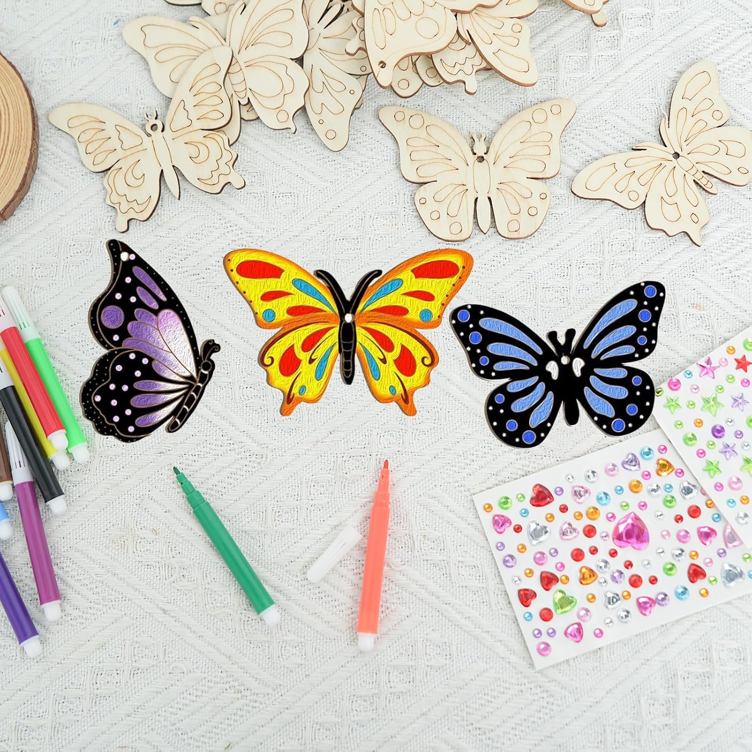 Contenuto della confezione: la confezione contiene 24 farfalle pannelli di legno grezzo, 8 stili, 3 pezzi per ogni stile, 1 scatola di pennarelli acquerellabili a 12 colori, 2 adesivi con strass e una corda di canapa lunga 2 m, la quantità è sufficiente per soddisfare le vostre esigenze di bricolage e decorazione Legno naturale: questa farfalla in pannelli legno è realizzata in legno di alta qualità, con una superficie liscia e senza sbavature, non ferisce la mano, è comoda, leggera, robusta e resistente. Ogni pezzo di legno a forma di farfalla ha due lati e può essere dipinto, tinto o decorato direttamente Facile da usare: queste farfalle in legno sono leggere e hanno una superficie liscia, che può essere utilizzata per la decorazione. Sono facili da dipingere e possono creare motivi luminosi e accattivanti. Gli adesivi possono anche essere fissati saldamente al legno verniciato e ogni farfalla ha dei piccoli fori. È possibile appenderla con la corda di canapa inclusa Fatto a mano: questa kit di bricolage in legno per bambini è perfetta per far provare ai bambini il divertimento della pittura e i pezzi di legno grezzo possono essere utilizzati per dipingere qualsiasi colore. Questo non solo coltiva l'immaginazione e la creatività dei bambini, ma li aiuta anche a creare opere uniche Ampia gamma di usi: queste decorazioni a forma di farfalla tavole modello in legno sono ampiamente utilizzate, adatte per lavori artigianali, decorazioni per la casa, feste, graffiti personalizzati, etichette regalo, creazione di biglietti, decorazioni natalizie, ecc