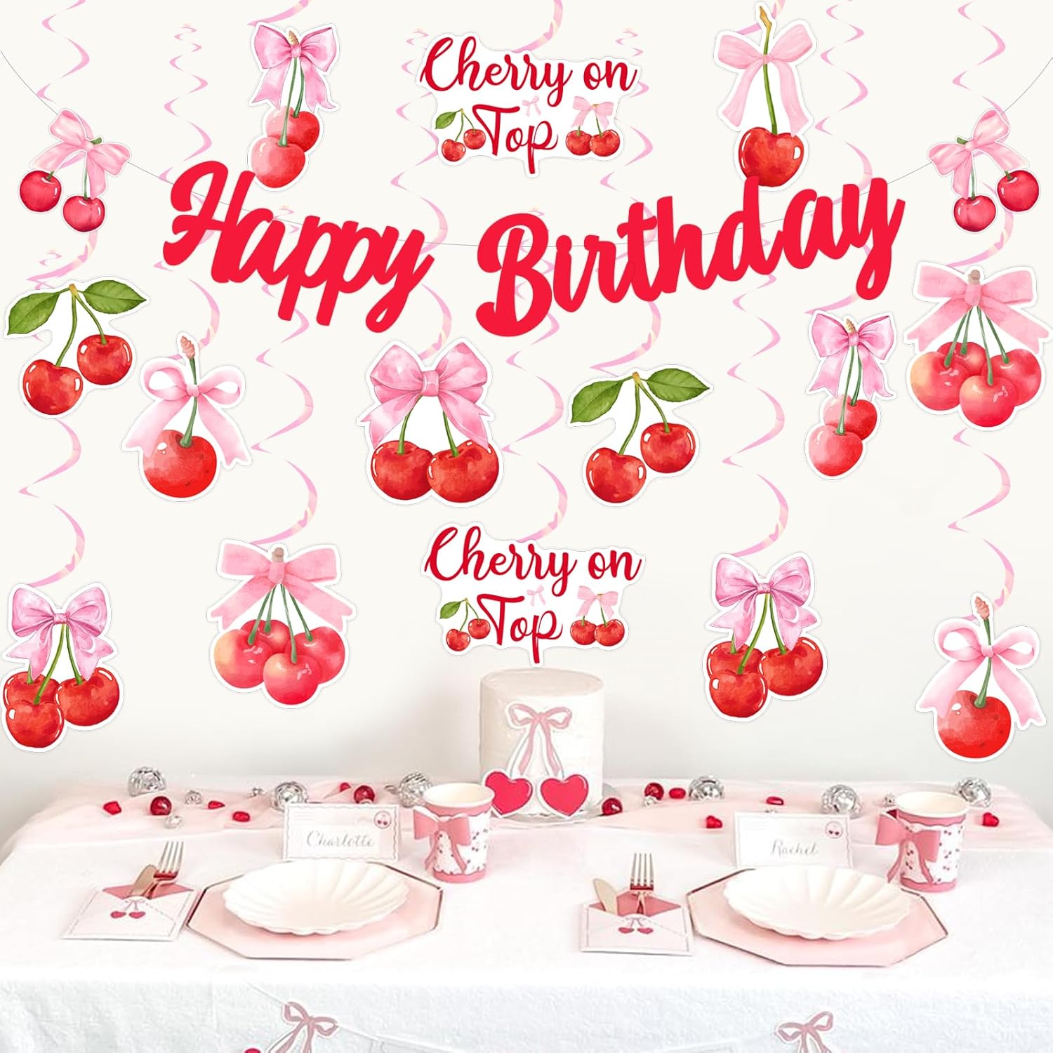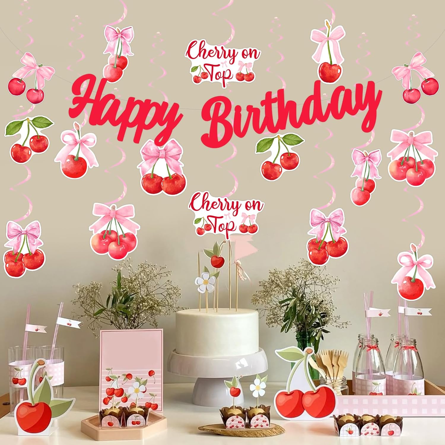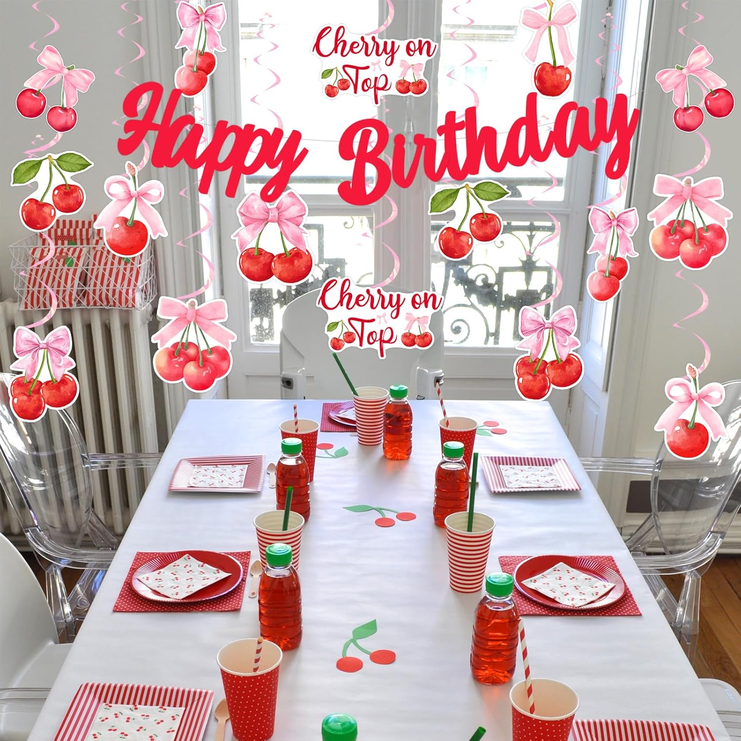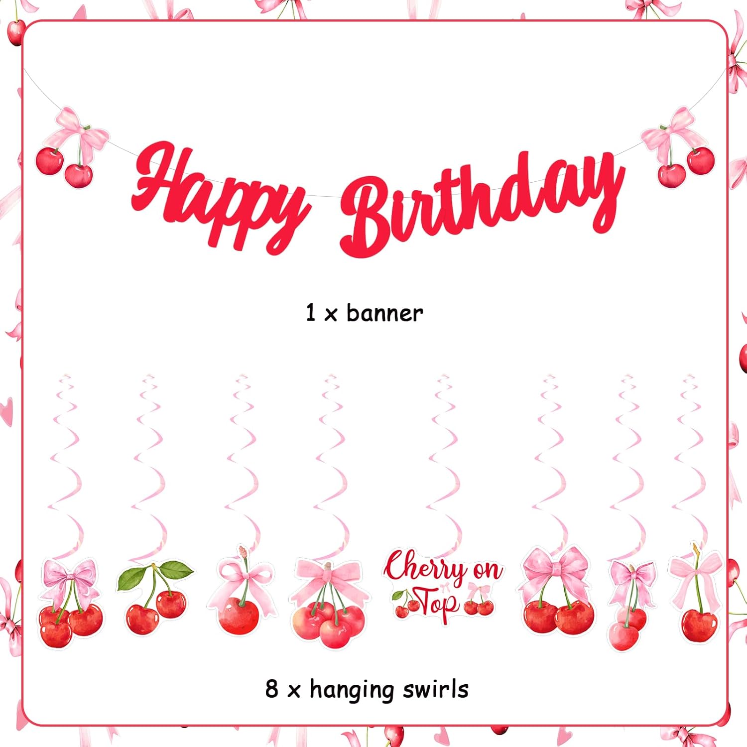 La confezione include: 1 striscione di buon compleanno, 8 spirali sospese e 8 spirali sospese. Design elegante: il nostro striscione da appendere con ciliegie e fiocchi è carino e bello, progettato con ciliegie e fiocchi. Il design unico e il colore chiaro rendono queste decorazioni più attraenti. Necessità fai da te: lo striscione Happy Birthday deve essere legato insieme nell'ordine delle lettere tramite aghi di plastica e corda. Ogni spirale sospesa ha un gancio di plastica nella parte superiore, comodo da appendere ovunque tu voglia. Basta tirare fuori i turbinii e appenderli, quindi otterrai queste decorazioni perfette. Materiali di qualità: questi biglietti e banner sono realizzati in cartoncino e stampati fronte-retro, sono robusti, riutilizzabili e belli da vedere. Queste spirali sospese sono realizzate in alluminio, lisce e lucenti, le adorerai sicuramente. Ampia applicazione: questi turbinii sospesi sono perfetti per i baby shower delle ragazze, le feste di compleanno e così via, sarebbero un ottimo sfondo per le foto delle feste.