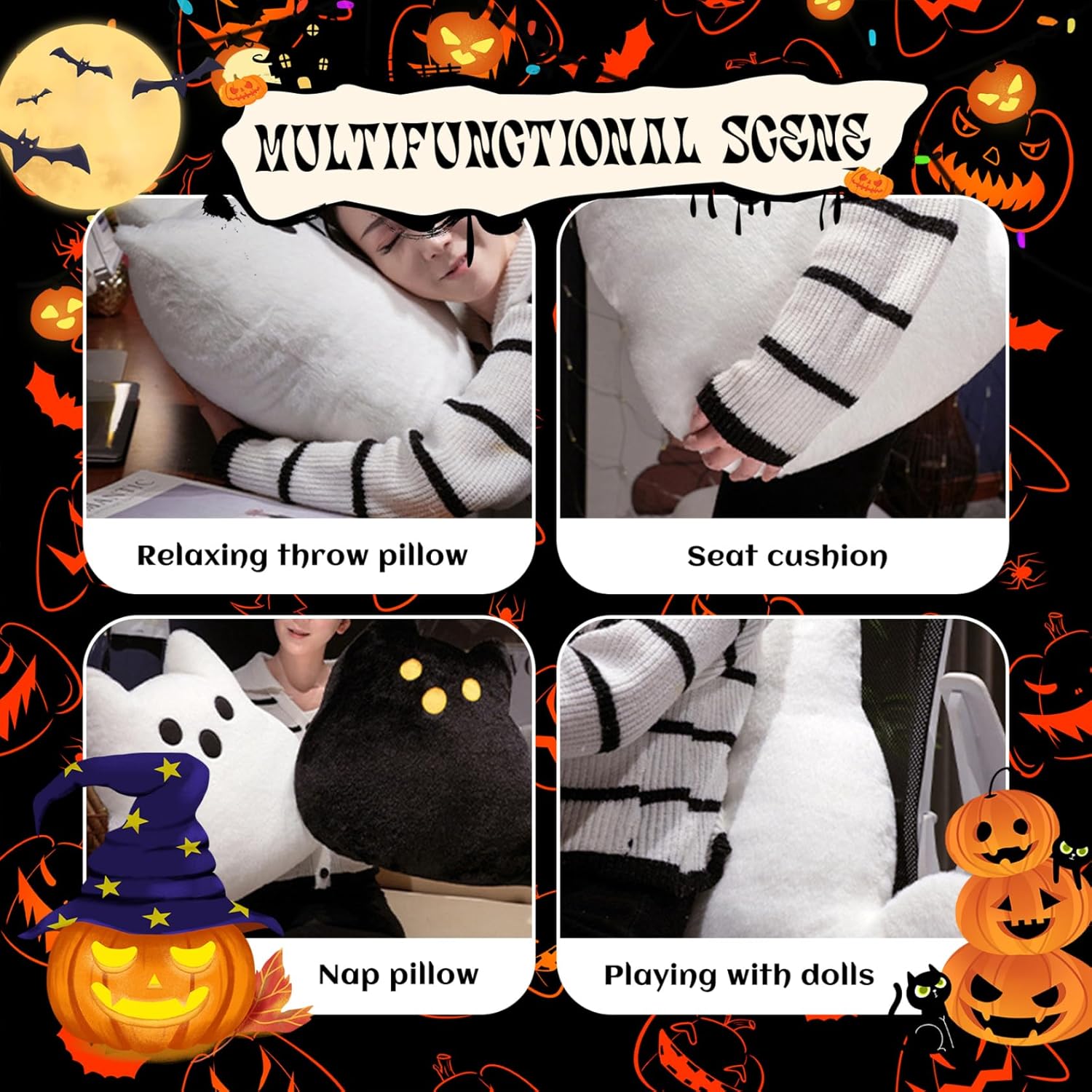 Facile da pulire: realizzato con materiali pregiati, questo cuscino mantiene la sua forma e morbidezza nel tempo ed è facile da pulire, garantendo che rimanga fresco e invitante per tutta la stagione di Halloween Adorabile ciondolo di Halloween: questo cuscino fantasma presenta un simpatico design fantasma a forma di gatto che porta immediatamente lo spirito festoso di Halloween a casa tua, perfetto per creare un'atmosfera divertente e spettrale in ogni stanza Decorazione per interni versatile: progettata come decorazione di Halloween per uso interno, completa facilmente il tuo arredamento stagionale e illumina salotti, camere da letto o aree lounge con un giocoso tema spettrale Morbido peluche bianco: realizzato con tessuto peluche bianco ultra morbido, questo cuscino offre un comfort incredibile e una sensazione accogliente, rendendolo ideale per coccolarsi sul letto, sul divano o sul divano durante le fredde notti autunnali Dimensioni perfette per qualsiasi spazio: le comode dimensioni del cuscino adattano perfettamente a divani, letti e divani senza sovraccaricare lo spazio, rendendolo un'ottima aggiunta a qualsiasi collezione di plaid e cuscini di Halloween