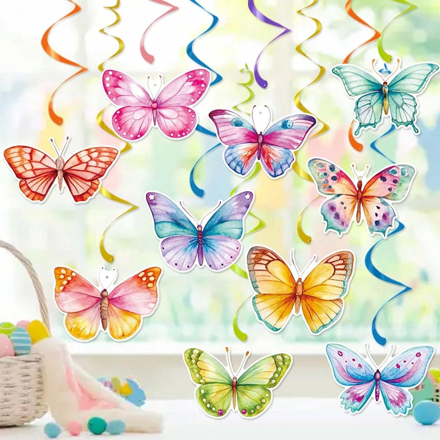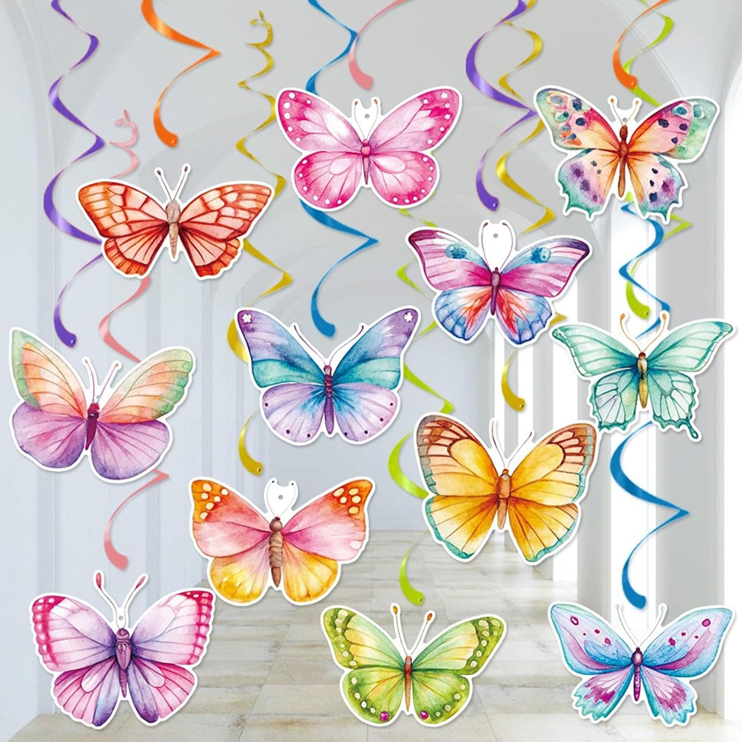 Trasforma qualsiasi soggiorno, festa di compleanno o matrimonio in ambienti romantici con questi ornamenti da appendere a forma di farfalla facili da visualizzare Adatto per organizzatori di eventi, proprietari di case e proprietari di boutique cerca una decorazione accattivante per la casa per asili, matrimoni o espositori al dettaglio Realizzate in carta resistente allo sbiadimento, queste decorazioni da appendere a spirale presentano motivi a vortici che completano vari stili interni I disegni colorati aggiungono un tocco di eleganza alla decorazione della stanza, creando composizioni a vortici per la celebrazione stagionale Elevare qualsiasi spazio con questi ornamenti da soffitto a forma di farfalla, ideali come decorazione leggera da appendere alla parete o incantevole decorazione per feste che aggiungono fascino stravagante a soffitti e finestre