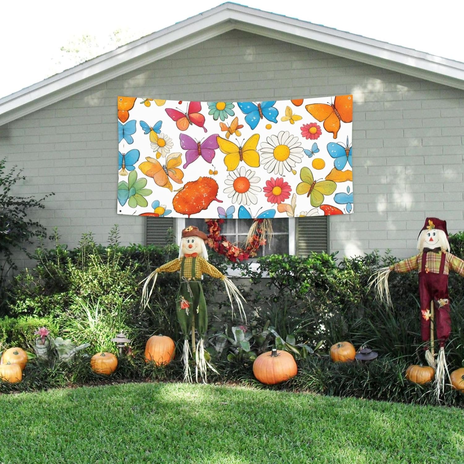 Banner con stampa a margherita realizzato in poliestere, è un tipo di tessuto, riutilizzabile, lavabile, non facile da rompere o sbiadire, ottima qualità. Lo striscione con stampa a farfalla misura 170 x 89 cm, è abbastanza grande per decorare la tua festa, adatto per appendere interni o esterni, aggiungere un'atmosfera felice Può essere utilizzato come decorazione da parete, carta da parati, arazzo, tenda, decorazione per interni, decorazione per la casa, dormitorio, camera da letto, robusta e buona sensazione verticale. Lavare a mano o in lavatrice a bassa temperatura, stirare a bassa temperatura può rimuovere rapidamente pieghe e rughe. Abbastanza robusto da usare, leggero, pieghevole, facile da trasportare, non sbiadisce facilmente. Non esitate se avete domande sui nostri fondali. Basta contattarci in primo luogo, riceverete una risposta entro breve tempo effettuando il vostro acquisto senza alcun rischio.