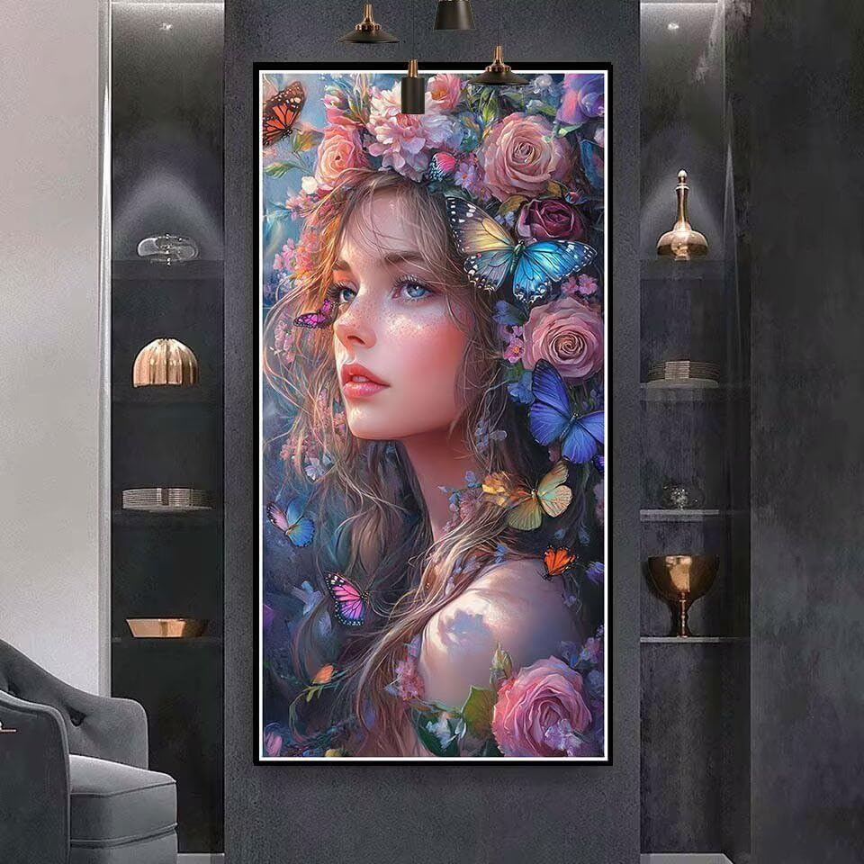 Farfalla Diamond Painting Kit, 5D Diamond Painting Ragazza Motivo 90X180CM Grandi Tela, DIY Diamante Crystal Art Kit Completo, Passatempo per Adulti Ricamo a Punto Croce Artigianale, Home Decor,Y280Z