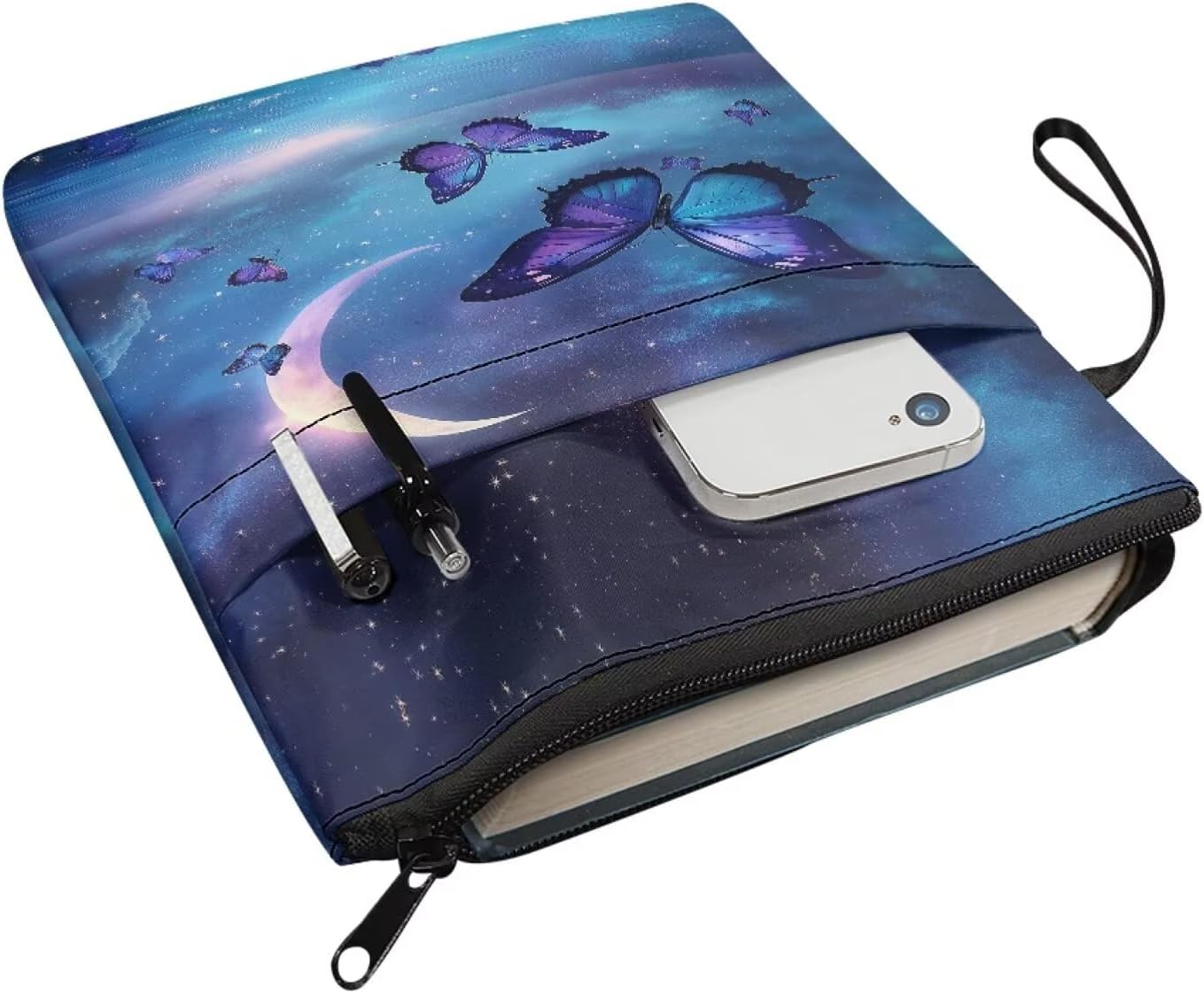 Leggero e perfettamente portatile (22 x 29 cm): progettato per un trasporto senza sforzo. Il suo profilo sottile e pieghevole scivola facilmente in zaini, borse, valigette o bagagli. Porta i tuoi libri protetti ovunque senza aggiungere ingombro Protezione garantita del libro: proteggi i tuoi amati libri, quaderni e libri di testo da sporco, graffi, pieghe e usura quotidiana. Per mantenerli incontaminati come nuovi, sia che si tratti di pendolarismo, viaggi o in borsa Materiale: questa custodia per libri con cerniera per gli amanti dei libri è realizzata in poliestere e cerniera liscia di alta qualità, non cadrà, non si deforma o si restringe facilmente, leggera, durevole, resistente all'usura e può fornire un servizio a lungo termine Comoda tasca frontale: rimani organizzato con la pratica tasca frontale! Dimensioni perfette per penne, matite, segnalibri, foglietti adesivi, piccoli diari, occhiali o persino auricolari, tutto ciò di cui hai bisogno per leggere o studiare a portata di mano Design elegante e regalo ideale: esprimiti con motivi vivaci come stampa mucca, girasole, farfalla, palla, bandiera americana, galassia e animali. Un regalo pratico e premuroso per studenti, viaggiatori, amanti dei libri e professionisti
