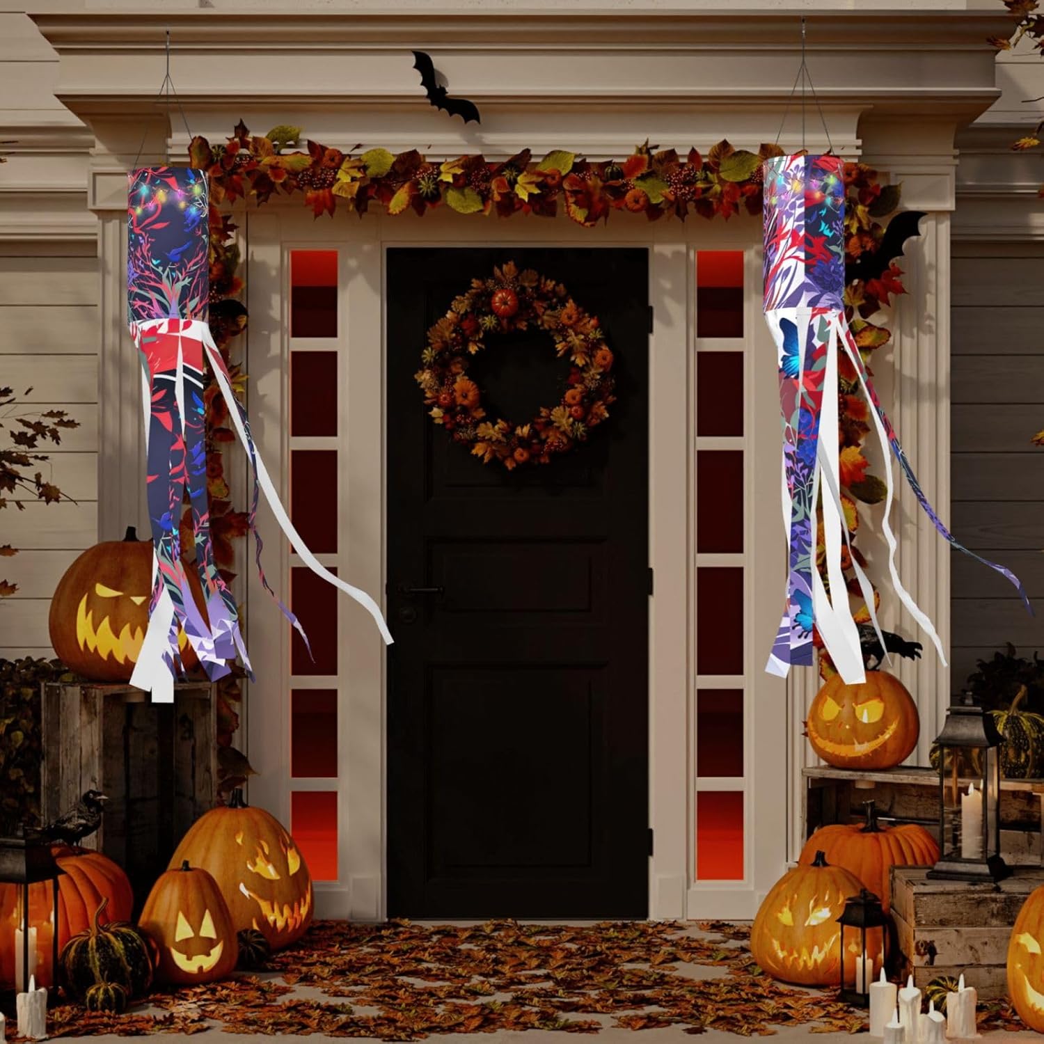 Farfalla viola deliziosa illuminazione esterna festiva: calze a vento da strega di Halloween per esposizione stagionale mozzafiato