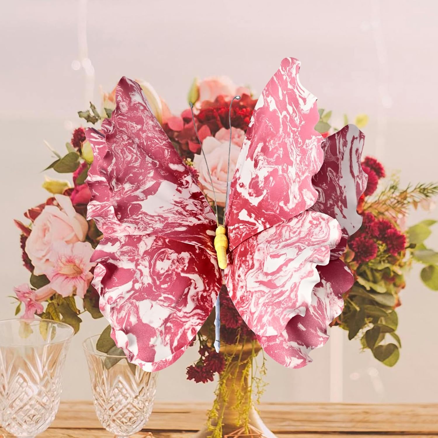 Realizzata in carta portatile e robusta, questa farfalla artificiale presenta un design luminoso, per decorazioni di nozze accattivanti e proprietà fotografiche. L'intricato dettaglio artigianale e il colore resistente allo sbiadimento garantiscono un aspetto realistico, mentre il design portatile da 60 g consente una facile installazione su vari fronti. Trasforma matrimoni, compleanni o feste in giardino con queste farfalle multifunzionali, aggiungendo fascino a sfondi, centrotavola, espositori da parete e progetti fotografici. Ideale per gli organizzatori di eventi e gli appassionati di decorazioni per la casa cercano un elegante accento a tema naturale per celebrazioni o spazi interni/esterni. Ogni confezione include due farfalle premium progettate per resistere alle feste degli eventi, creando momenti visivi senza strumenti o configurazioni complicate.