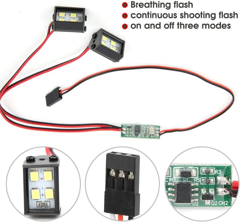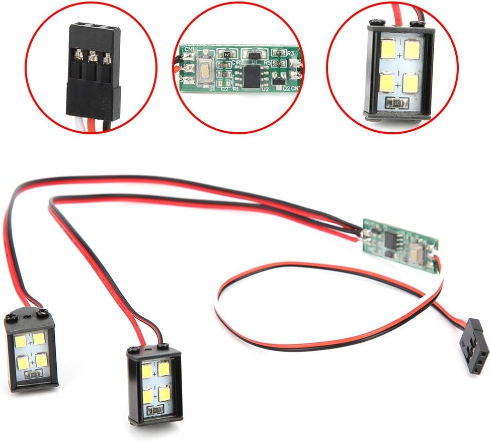 Fari a LED Modello RC Accessori in plastica★★★ Due modalità di controllo: controllo del segnale del telecomando e controllo del manuale. ★★★ Tre modalità di illuminazione: flash del respiro, flash continuo, accensione e spegnimento.Accessori per automodelli ★★★ L'installazione è molto semplice e non richiede strumenti complicati e passaggi noiosi.Modelli di giocattoli ★★★ Perfetta vestibilità per rendere la tua auto rc più fresca e più attraente. ★★★ Fabbricazione professionale, adatta per auto telecomandata TRX4/SCX10 1/10.