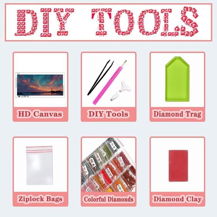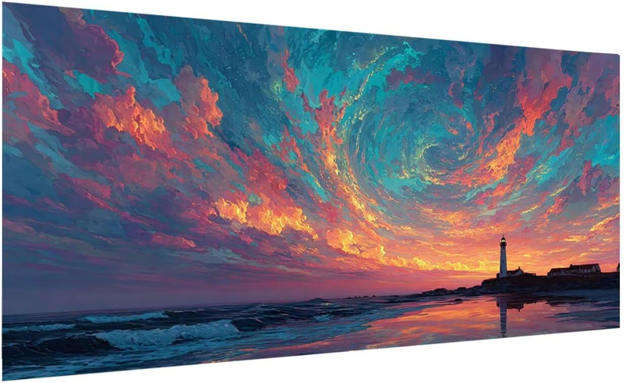 Faro Diamond Painting Kit Completo, Tramonto Diamond Painting Bambina 60x120cm DIY Full Drill Crystal Art , 5D Bambini Per Pittura Diamante Adulti Principianti Per Pittura Diamante Wall Decor A-U206