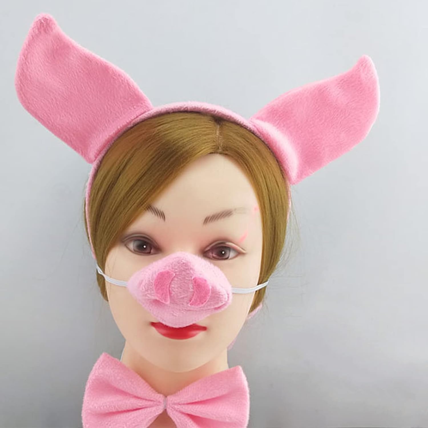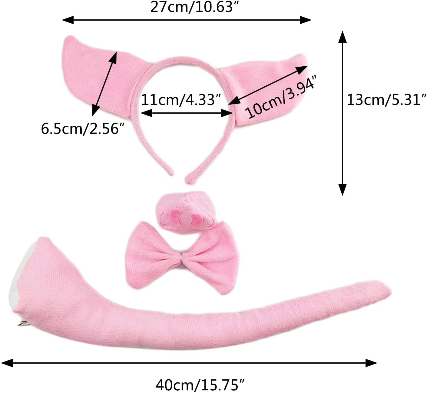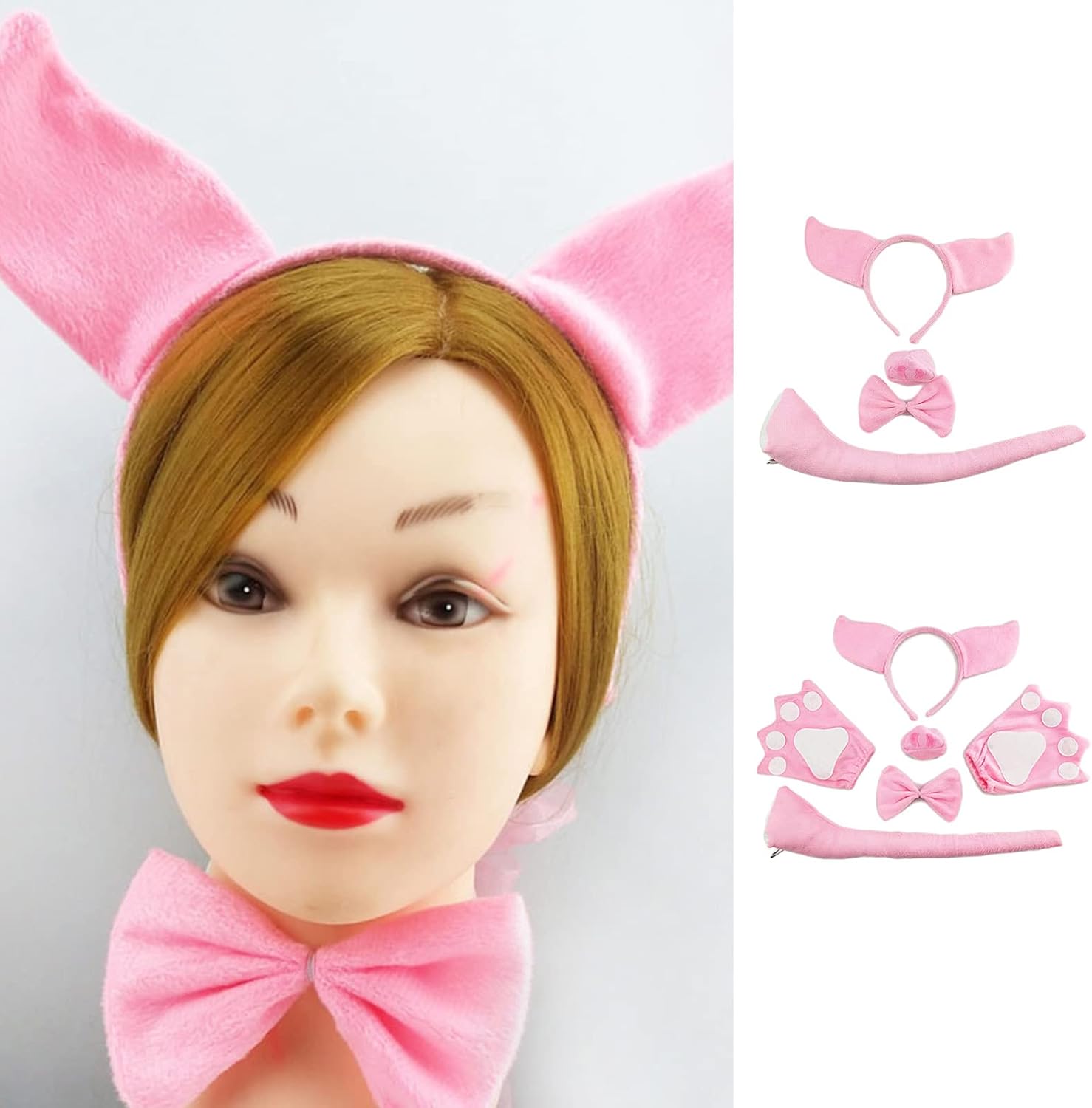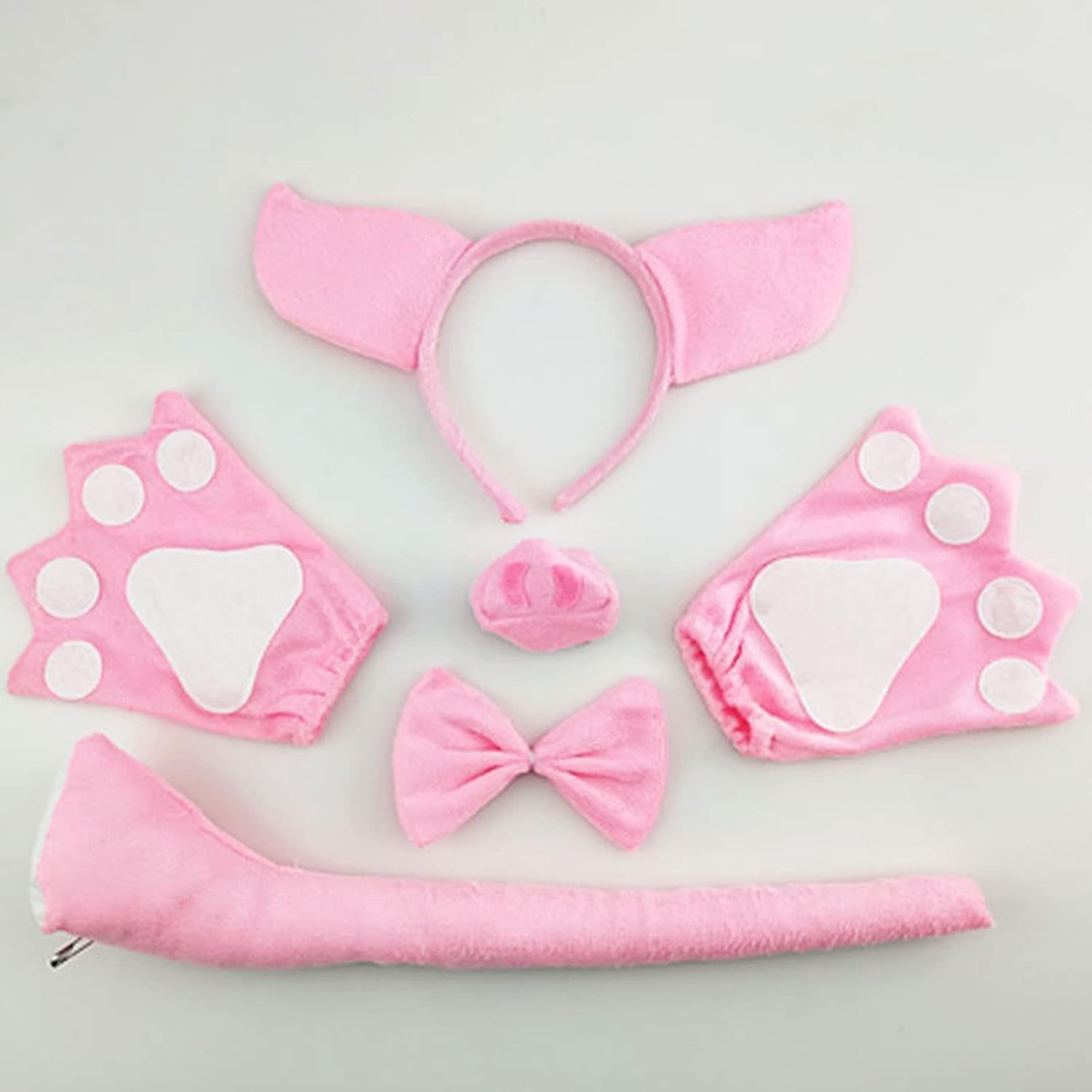Fasce per capelli con animali in peluche orecchie per capelli guanti coda naso papillon cosplay oggetti di scena animali costume di Halloween Caratteristiche: e Costume da maialino dei cartoni animati, poliestere, morbido e resistente, non danneggia il cuoio capelluto o i capelli. Fascia elastica e guanti, sia papillon che naso attaccati con corde elastiche, adatti per la maggior parte delle persone Orecchie, coda, papillon e naso, con guanti a zampa, facile da creare un'atmosfera felice. Ampia applicazione, ideale per varie occasioni, cosplay, compleanni, Natale, Halloween, oggetti di scena fotografici, Ottimo regalo, design a cartoni animati e aspetto delicato per ragazze e bambini. Specifiche tecniche: poliestere. Colore: Diametro della fascia: circa 11 per cm. Lunghezza della coda: circa 40 per cm. La confezione include: 2 Pacchetto (1/2 facoltativo) Il pacchetto 1 include: 1 x fascia + 1 x naso + 1 x papillon + 1 x coda. Il pacchetto 2 include: 1 fascia per capelli, 1 naso, 1 papillon, 1 coda, 1 paio di guanti. Nota: Si prega di considerare un margine di errore di 1-2 cm dovuto alla misurazione manuale. A causa della differenza tra i diversi monitor, l'immagine potrebbe non riflettere esattamente il colore dell'articolo.
