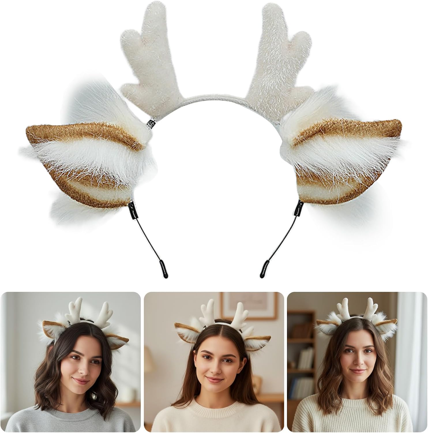 Questo copricapo in tessuto di alta qualità funge anche da decorazione per le vacanze quando viene visualizzato su caminetti o confezioni regalo, incarnando allegro spirito yuletide Adorabile fascia natalizia con orecchie di renna con corna in morbido peluche con filo metallico per un uso sicuro e confortevole durante le celebrazioni festive Ideale per sfilate di Natale, carnevali invernali, eventi cosplay e servizi fotografici stagionali come ornamento per capelli ispirato alle renne Perfetto per bambini, adolescenti e adulti che cercano accessori giocosi per foto delle vacanze, riunioni di famiglia o feste di compleanno a tema Realizzato con pellicce finte e telaio interno flessibile, questo accessorio per capelli leggero mantiene la forma mentre si fonde perfettamente con acconciature naturali