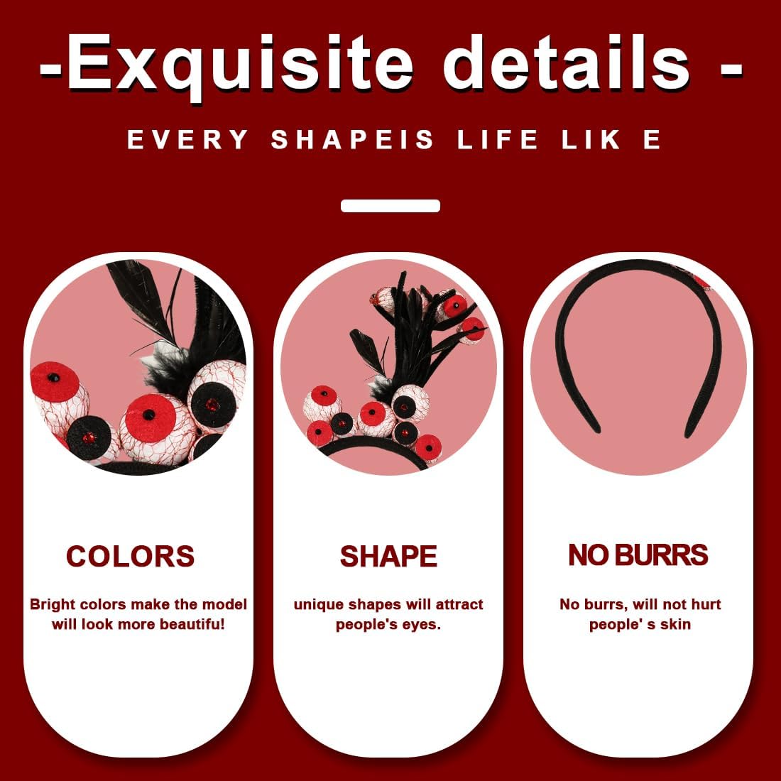 Fascia per capelli Halloween: questo raffinato copricapo di Halloween è il tocco finale perfetto per il tuo look da festa. Realizzato con tessuti di alta qualità e plastica flessibile, è progettato per durare nel tempo e offrire un comfort ottimale. La misura si adatta perfettamente grazie alla sua ampia elasticità. Adatto sia per bambini che per adulti da indossare durante le feste di Halloween. Taglia unica: i nostri copricapi non solo offrono molteplici opzioni di stile, ma sono anche eccezionalmente comodi da indossare. Grazie al suo design flessibile e taglia unica, si adatta comodamente alle diverse forme della testa senza causare fastidiose pressioni. Non perdere l'occasione di creare un look unico: ordina ora! Splendida e accattivante: la nostra fascia per Halloween attirerà sicuramente lo sguardo di tutti, lasciandoli incantati. Questa fascia vanta intricati motivi decorati con abbellimenti. Inoltre, presenta eleganti dettagli in rete che ne esaltano l'atmosfera cupa, con ogni elemento di design che funge da tocco finale per affascinare tutti coloro che la vedono. Accessori di Halloween per donna: il set di cerchietti con occhi di Halloween è perfetto per le feste di Halloween, ma anche per incontri a tema, eventi cosplay, carnevali, balli in maschera e molto altro. L'elegante cerchietto e la collana distintiva daranno vita al tuo personaggio, mettendo in risalto il tuo stile unico. Versatili: i nostri accessori per capelli sono incredibilmente versatili e possono essere indossati con disinvoltura sia nelle agghiaccianti notti di Halloween che in occasione di feste vivaci come carnevali o feste in maschera.