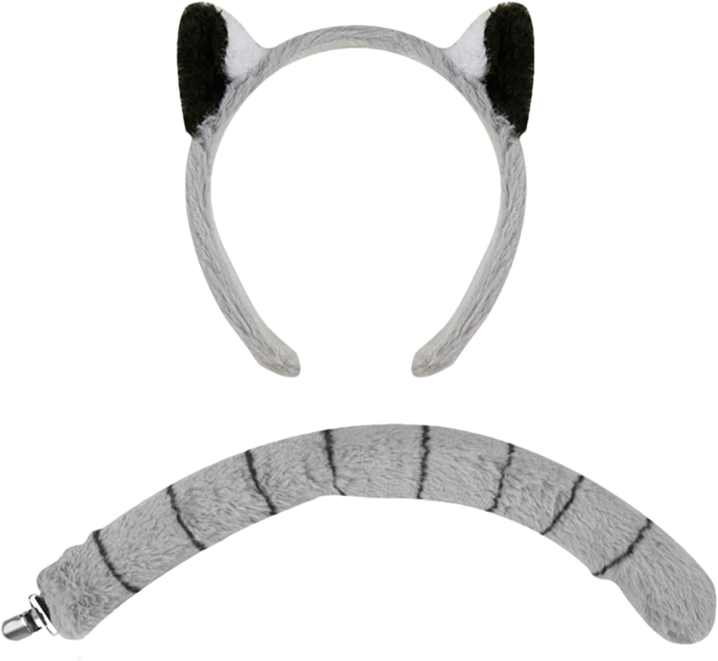 Fasce Per La Testa Animali | Fasce Orecchie Lemure con Coda - Accessori per Halloween Carnevale Costume Ragazzi Teatro Feste Maschere