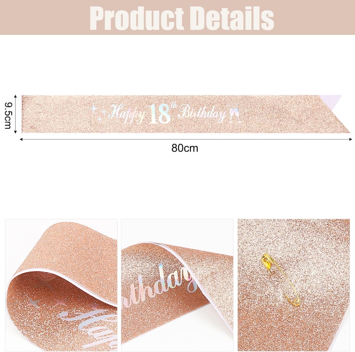 Contenuto della confezione: 1 fascia in oro rosa con scritta "Happy 18th Birthday" e una spilla; ideale come decorazione per il 18° compleanno della ragazza Dimensioni perfette: la fascia per compleanno misura 31,5 x 9,4 cm. Utilizza uno stile aperto per una vestibilità unica. Si adatta a tutti i tipi di corpo per adulti. Materiale: la fascia in raso morbido e liscio di alta qualità la rende estremamente comoda da indossare, può essere conservata a lungo e utilizzata per molte volte. Design unico: l'estremità della fascia non è cucita, viene fornita con una spilla da balia, è possibile regolarla in base alla forma del corpo per evitare che scivoli via. Regalo di compleanno per le donne: indossa una fascia di compleanno per il loro compleanno, rendile più distinte e anche un buon regalo per te stesso, sorella, amica, lascia che sia la principessa della festa di compleanno, crea un'atmosfera più felice nella festa di compleanno.
