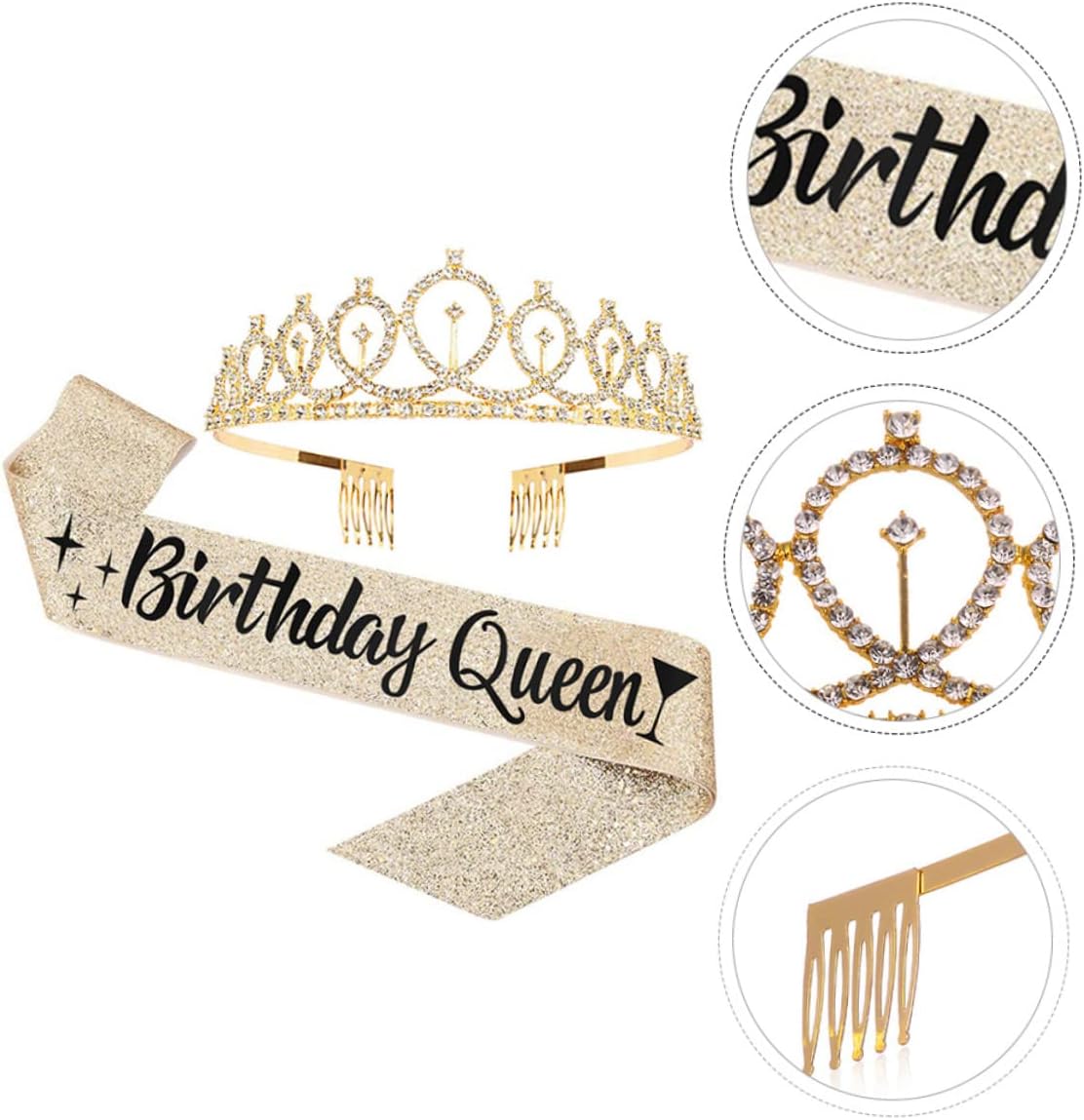 Cintura cerimoniale: progettata con strass sulla e il pettine aiuta a mantenere la tiara in posizione, fascia per feste femminili Femminile con fascia: pregevole fattura e aspetto semplice e ti regaleranno un'esperienza di compleanno diversa e memorabile, tracolla per feste Fascia di compleanno creativa: le lettere stampate sulla tracolla sono abbastanza grandi da essere chiaramente identificabili, di compleanno Forniture per feste di compleanno: un accessorio per feste di compleanno per le tue feste di compleanno o una fantastica cintura decorativa per la tua famiglia e i tuoi amici Compleanno: realizzato in materiale e utilizzo, di compleanno per ragazze