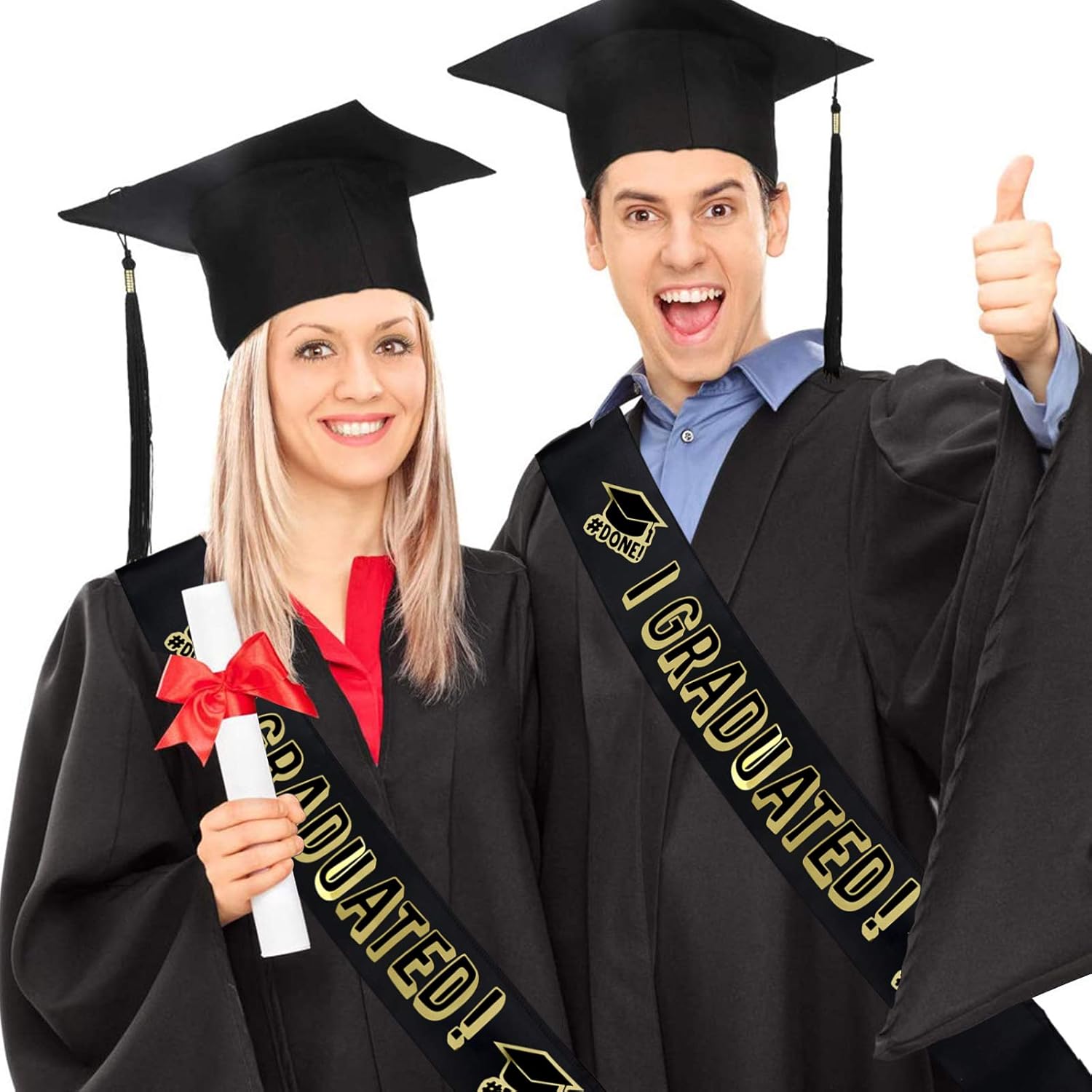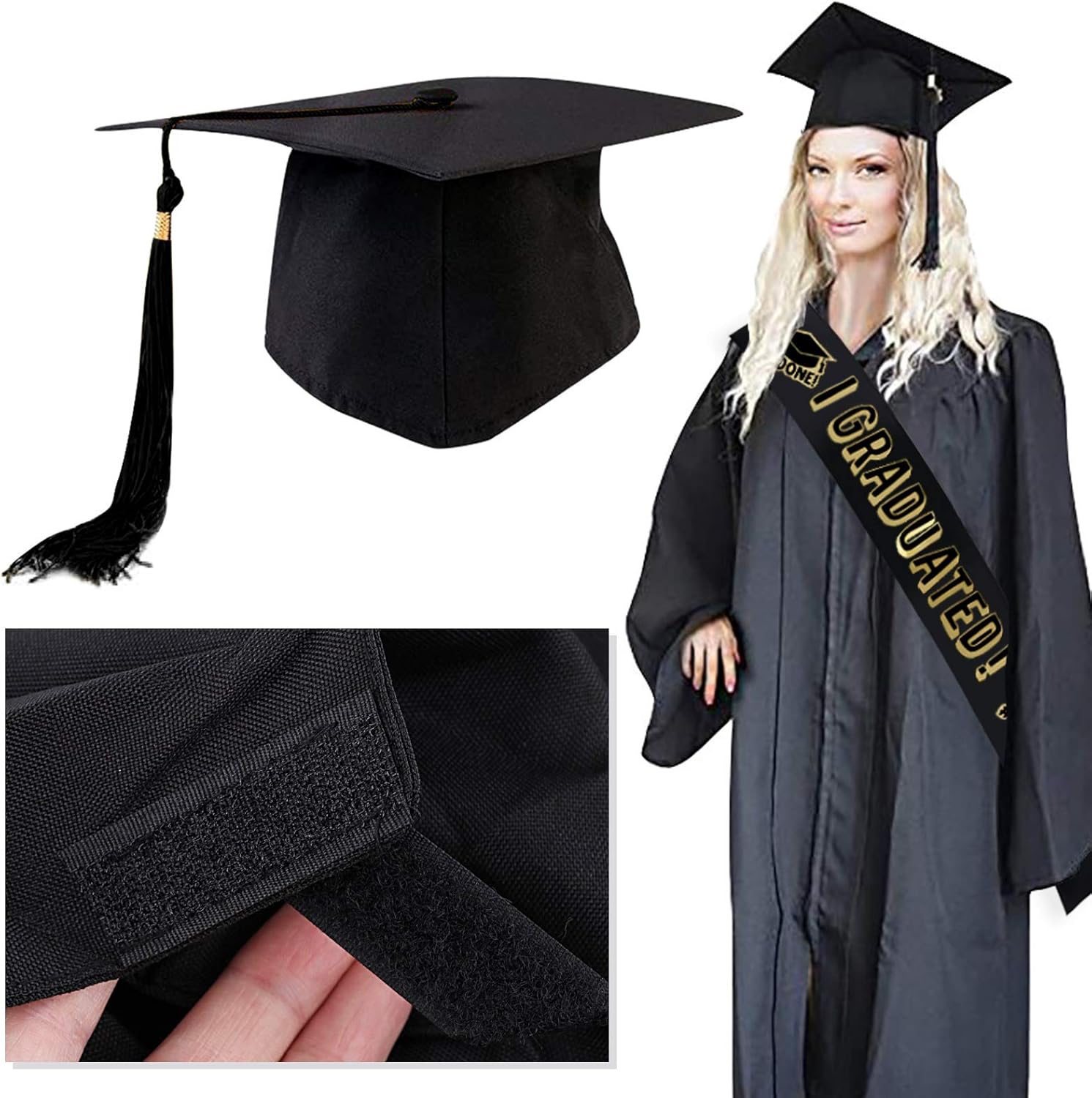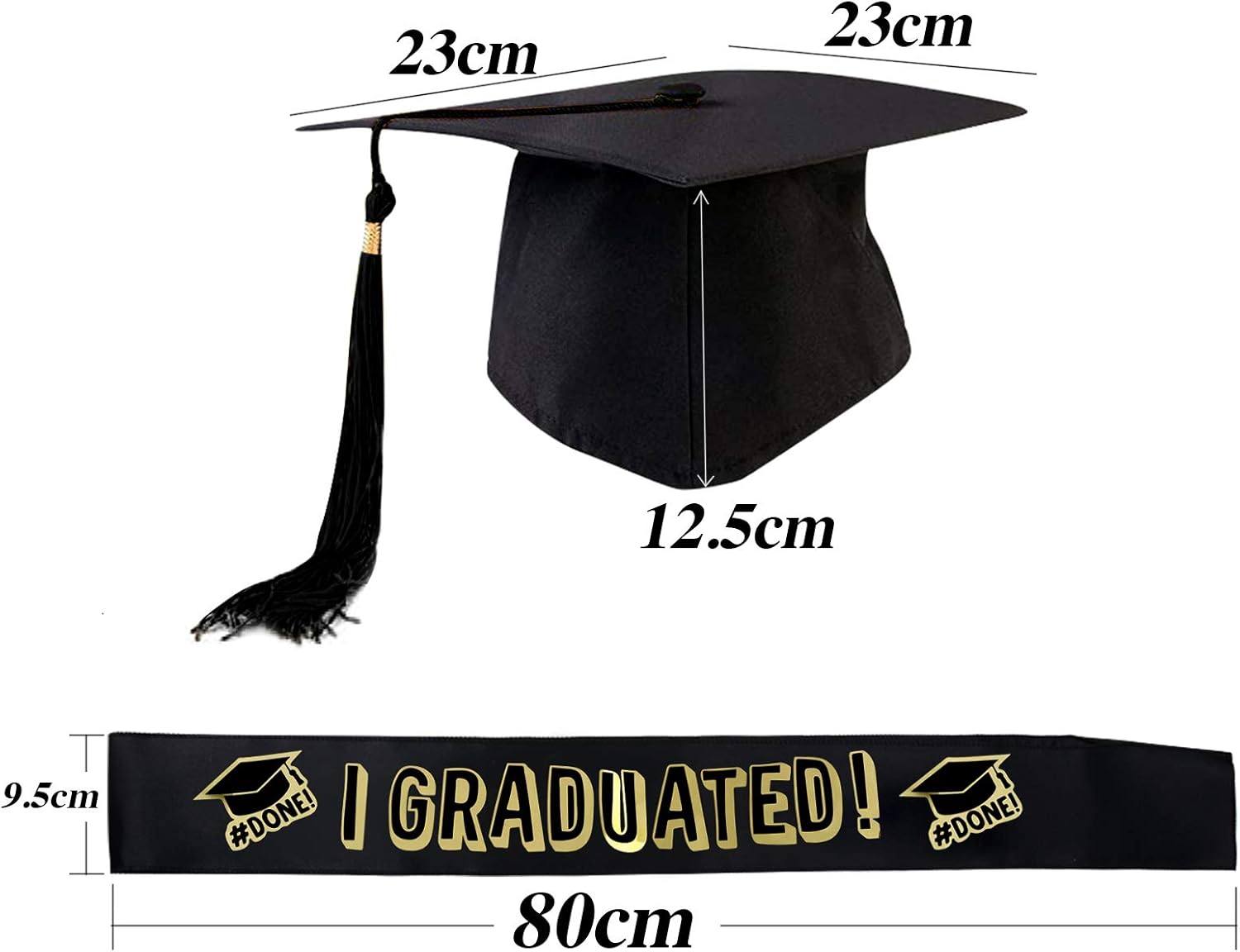 🎓【Il pacchetto include:】1 pz fascia laurea con scritta dorata e 1 pz tocco di laurea. 🎓【Materiale:】La fascia è realizzata in poliestere. 🎓【Dimensione:】La fascia è circa 80 x 9.5 cm ed il tocco di laurea è circa 23 x 23 x 12.5 cm. 🎓【Disegno:】La fascia con sfondo nero e la scritta dorata I GRADUATED ed il tocco nero sono molto eleganti e solenni. Il materiale di fascia e tocco è poliestere, resistente, liscia e comoda da tocco. È davvero un ricordo memorabile e vale la pena tenerlo. 🎓【Ideale:】È un prodotto ideale per festa di laurea, cerimonia di laurea, festa a tema ecc come accessori o materiale scenico fotografico. È anche un bello regalo per figli, figlie, fratelli o altri familiari e amici.
