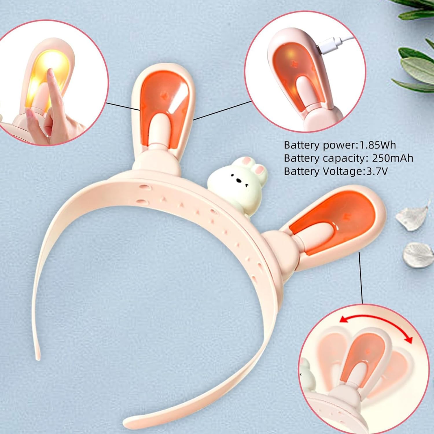 Descrizione prodotto Perfette per qualsiasi celebrazione, le fasce luminose per capelli si distinguono come accessorio unico che migliora esperienze di bellezza e cura personale. Che si tratti di Pasqua, una festa in costume o un vivace festival, queste fasce luminose arricchiscono gli outfit e ricordi indimenticabili per bambini e ragazze in ogni occasione. Specifiche Nome prodotto: clip lampeggianti oscillanti con coniglio Dimensione del prodotto: circa 22x19 cm/8.66x7,48 pollici Dimensioni 'imballaggio: circa 23x4x27.3cm/9.06x1.57x10.75 pollici Materiale: ABS, componenti elettronici Potenza a batteria: 1,85W Capacità a batteria: 250 mAh Tensione a batteria: 3.7V Caratteristiche: dotato di un motore elettrico, le orecchie di coniglio oscillano automaticamente a sinistra e a destra. La luce a LED emette più colori, lampeggiando o cambiando gradualmente, creando un'atmosfera sognante anche in condizioni di scarsa illuminazione. Lista 1 * bagliore nelle fasce scure Nota: A causa e diverse impostazioni di illuminazione e schermo, il colore 'oggetto può essere leggermente diverso dall'immagine. A causa e diverse misurazioni manuali, consentire una differenza di 1-2 cm di dimensioni. Avviso di sicurezza Non applicabile