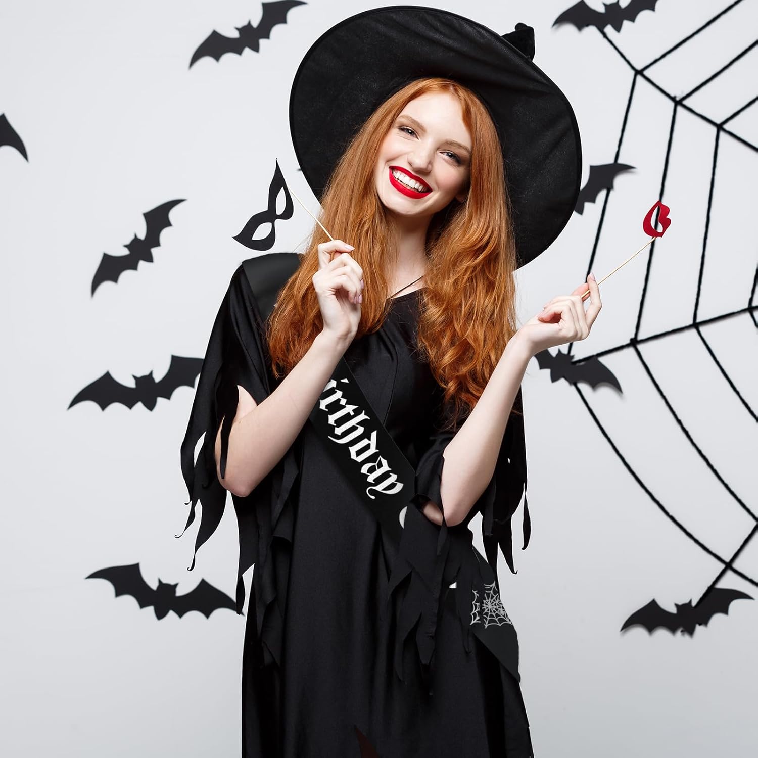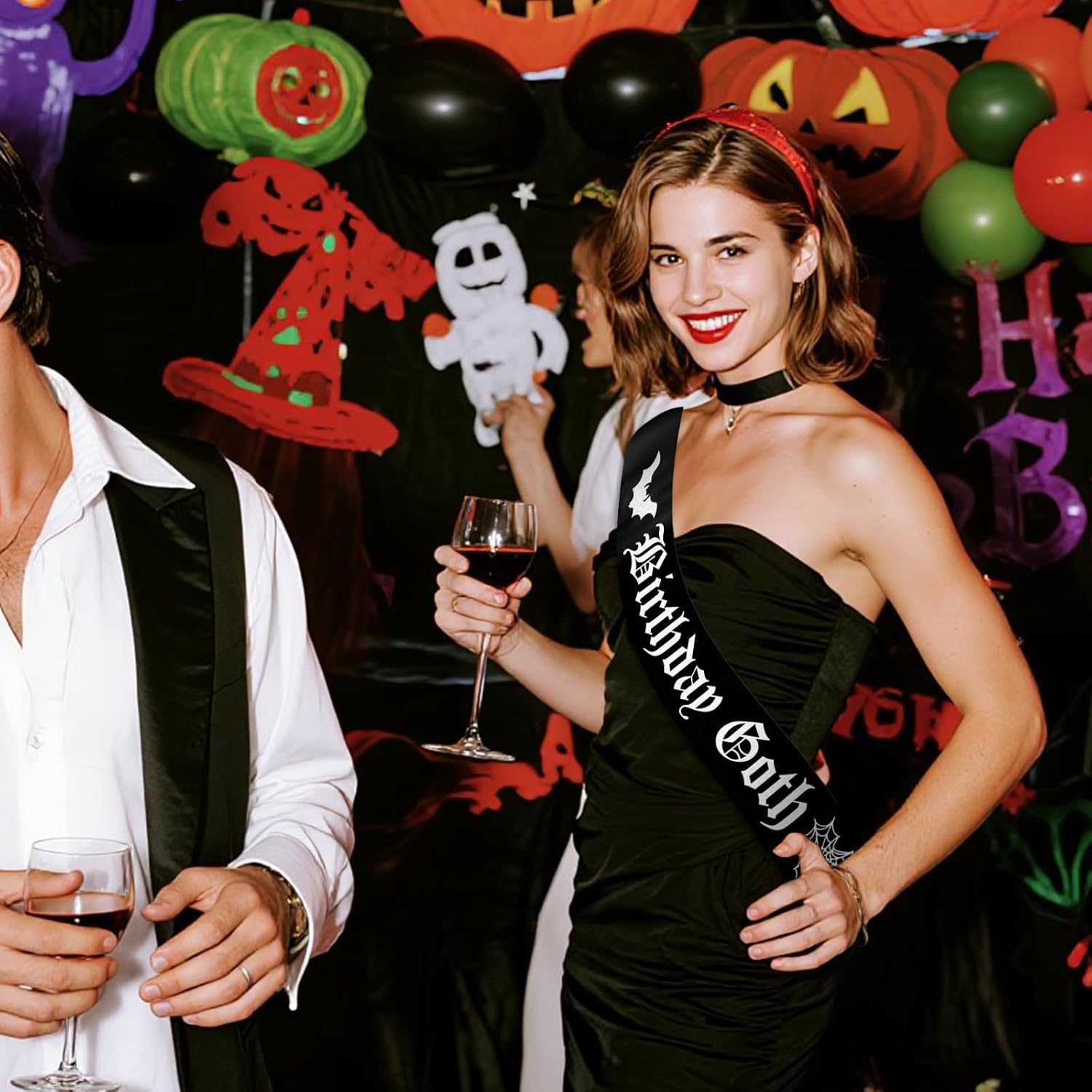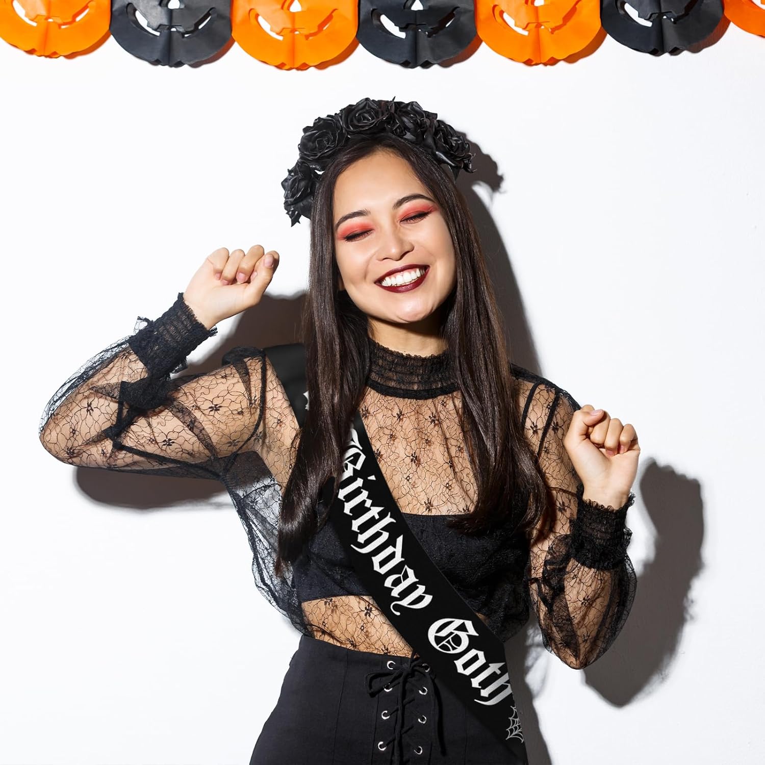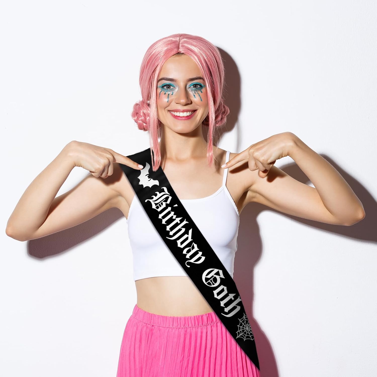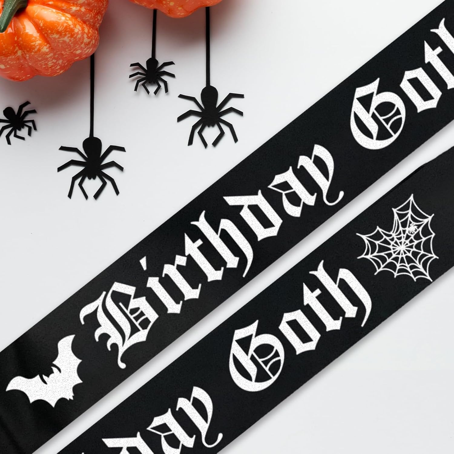 Lavare solo a mano. Fascia per compleanno Goth di Halloween: la nostra fascia per compleanno nera ha il testo bianco placcato in oro "Compleanno Goth" in uno stile di testo bello e divertente. Sarai la star della festa di compleanno a tema con una fascia unica ed è un accessorio ideale per le foto del compleanno! L'accessorio perfetto per il tuo outfit da festa. 【Perfetto per una serata di ghoul】 Goditi un compleanno indimenticabile con questa fascia spettrale. Puoi migliorare la tua dolce festa dei 16, 18esimo compleanno, 21esimo compleanno, sporco 30esimo compleanno o altre celebrazioni di compleanno. Anche un regalo premuroso per una famiglia o un amico amato.,Qualità premium: la fascia di compleanno gotica è realizzata in raso di alta qualità con scritte glitterate. A differenza di altre fasce di scarsa qualità, questa fascia non si strappa né si spiegazza facilmente. Non devi preoccuparti che le lettere si stacchino.,Dimensioni adatte: la fascia per compleanno horror è lunga 31,5 pollici e larga 3,74 pollici. È inclusa una spilla da balia che può essere utilizzata per fissare l'anta. La nostra fascia è adatta alla maggior parte delle persone, puoi usarla con sicurezza 【Servizio post-vendita】 Tieni presente che se la fascia arriva leggermente spiegazzata durante il trasporto, è meglio stirare sul retro della fascia per evitare che la pellicola si sciolga! Auguriamo a te, alla tua famiglia e ai tuoi amici una bella festa